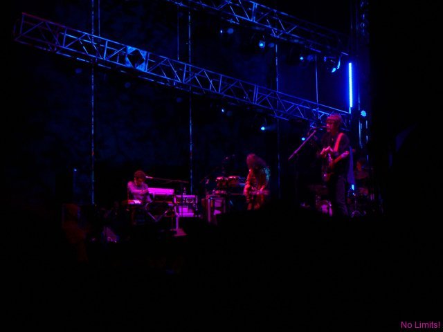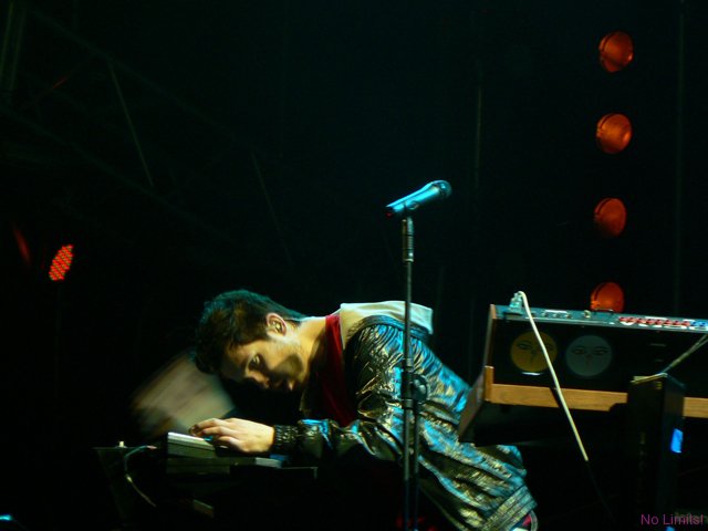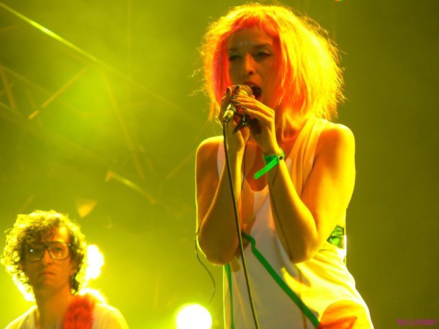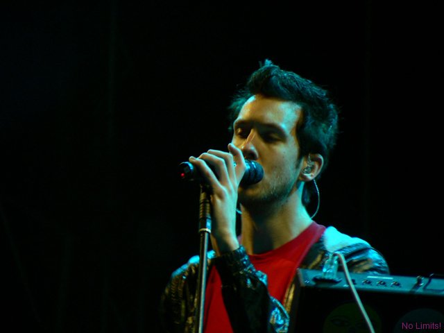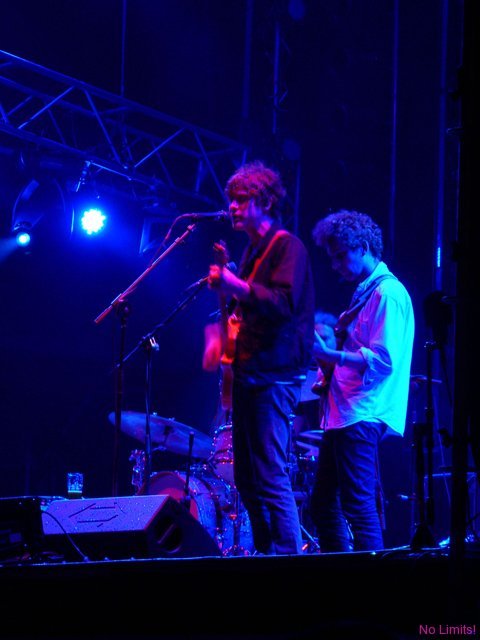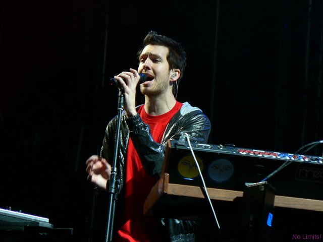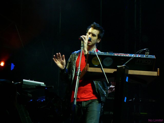 Nie zauważyłam, kiedy zespół wszedł na scenę. Po prostu usłyszałam muzykę i delikatny pisk publiczności. Duetowi towarzyszył perkusista i gitarzysta (być może jeszcze ktoś, ale tym razem stałam jeszcze bardziej z boku sceny, więc nie wszystko widziałam). Wyglądali niepozornie i brzmieli… niestety mizernie. Koncert zaczęli chyba najwolnijszymi i najnudniejszymi utworami, jakie nagrali. Przeważająca większość gitarowych dźwięków, wspomnienie nazwy „psychodelic pop” i wygląd gitarzysty z długimi włosami, lennonkami na nosie i w złotym płaszczu utwierdziły mnie w przekonaniu, że to nie muzyka dla mnie. Jak na mój gust nie było w tym nic porywającego ani nawet ciekawego. Odniosłam wrażenie, że i publiczność nieco się nudzi. Młodzi ludzie chcieli się bawić i przeżywać, więc w akcie desperacji kilka osób próbowało nawet skakać do jednego z nieco szybszych spośród wolnych kawałków, jednak szybko stracili zapał. Po prostu się nie dało, zaś średni dźwięk (przynajmniej w miejscu, w którym stałam) powodował, że trudno było się skupić na koncercie i nie zajmować niczym innym przy okazji. Doznania dźwiękowe poprawiły się wreszcie nieco podczas „Electric feel”. Pomyślałam jednak, że jeśli nie usłyszę „Kids”, nie będę żałować, obawiałam się, że nie są w stanie fajnie wykonać tego utwóru na żywo. Kiedy zbliżała się godzina mojego odjazdu i powiedziałam sobie: „ok, jeszcze jeden utwór i muszę iść”, usłyszałam wreszcie charakterystyczny początek „Kids”. Tak nagle i niepozornie, jak wszystko podczas tego koncertu. Publiczność wreszcie ryknęła a duet zostawił swoje instrumenty i wyszedł śpiewając na skraj sceny. Nawet gitarzysta w złotym płaszczu bardziej wymachiwał swoją gitarą niż na niej grał (i to muzyka Calvina była oszustwem?). Jednak nawet to wyjście bliżej publiczności nie sprawiło, że duet złapał z nią lepszy kontakt. Jak dla mnie publiki mogłoby w ogóle nie być. Panowie grali bardziej dla siebie niż dla nas. I nie byłoby w tym nawet nic złego, gdyby chociaż widać było, że sami czerpią z tego jakąś przyjemność, że sprawia im to radość. Tymczasem miałam wrażenie, że najlepiej na scenie czuje się pan w złotym płaszczu… Nawet mocniejszy elektroniczny moment w „Kids” nie rozruszał muzyków – wokalista wolał w tym momencie zająć się zabezpieczaniem mikrofonu przed deszczem niż zabawą. Szkoda. Ale było, minęło.
