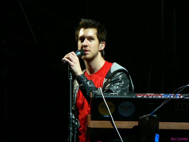 Tuż po występie Plastic pod sceną zaczęło gęstnieć (a ja doznałam szoku słysząc z głośników „Shine on” Apoptygmy Berzerk i widząc młodzież podrygującą w rytm muzyki ex-electro-industrial-futurepopowców…). Nazwisko Calvin Harris zrobiło swoje (chcę wierzyć, że popularność „I’m not alone” w Radiu Eska nie miała z tym nic wspólnego…). Trzeba przyznać, że publiczność doskonale wiedziała, co tu robi. Świetna znajomość tekstów dała się usłyszeć ze wszystkich stron. Zaimponowały mi też „rekwizyty” – czerwone okręgi nawiązujące do klipu „Ready for the weekend”. Szacun 😉 Co do samego Calvina – to kojelny wykonawca, po koncercie którego nie do końca wiedziałam, czego się spodziewać. Myślałam, że będzie stał przy swoich „urządzeniach”, że wokalnie będzie się udzielał skromnie, albo że będzie go skromnie słychać 😉 Tymczasem okazało się, że rady Dizzee’go Rascala (np. „nie odwracać się tyłem do publiczności”) nie poszły w las. Calvin szalał, skakał, zagrzewał publiczność do zabawy i pytał jak jej się podoba koncert. Fajny kontakt. Fajny gość. I śpiewał zdecydowanie więcej niż się spodziewałam, za to mniej było obsługi „urządzeń”. Poza tym na scenie towarzyszyło mu aż dwóch gitarzystów, perkusista i człowiek (którego najmniej widziałam) najprawdopodobnie od „elektroniki”. Wracając już do domu słyszałam za plecami rozmowę: „Oni wszyscy skakali jednocześnie, tak równo – dla mnie to było takie jakieś bezmyślne. Nie wiem czym oni się wszyscy tak zachwycają. Przecież ten gość miał przez cały czas minę jakby mówił: patrzcie jaki jestem zajebisty. Dla mnie ta muzyka to jakieś oszustwo”. Jeśli tak, to ja zdecydowanie dałam się oszukać. Oszukać brakowi komputera na scenie (no chyba, że był w tym rogu sceny, który widziałam najsłabiej), dwóm gitarom, perkusji, wokalowi Calvina i jego świetnemu kontaktowi z publiką. Tak jak do „I created disco” przekonywałam się stopniowo, tak na koncercie wszystko łyknęłam błyskawicznie. Mocne, bardzo taneczne, elektroniczne i zdecydowanie, zdecydowanie bardziej porywające niż na płycie. Zarówno starsze kawałki („Disco heat”, „Merrymaking at my place”, „Colours”, „I created disco”, „Acceptable in the 80’s”, „The Girls”), jak i nowe („Ready for the weekend”, „Flashback”, „You used to hold me”, „I’m not alone”) zabrzmiały doskonale. I choć koncert trwał zaledwie godzinę, ta godzina całkowicie spełniła moje oczekiwania. Ba, znacznie je przewyższyła!
