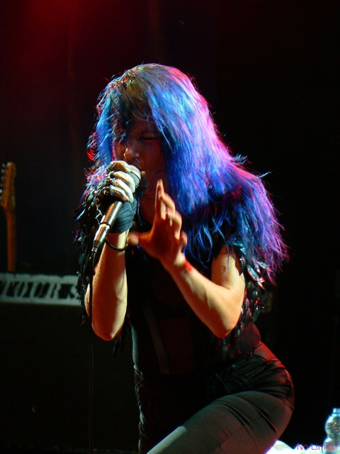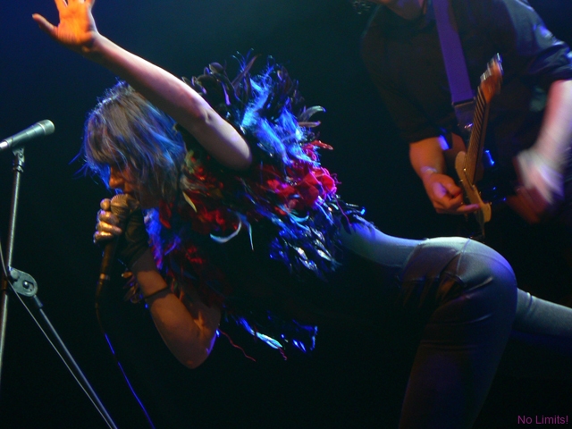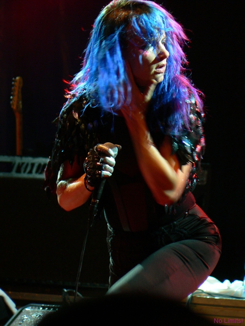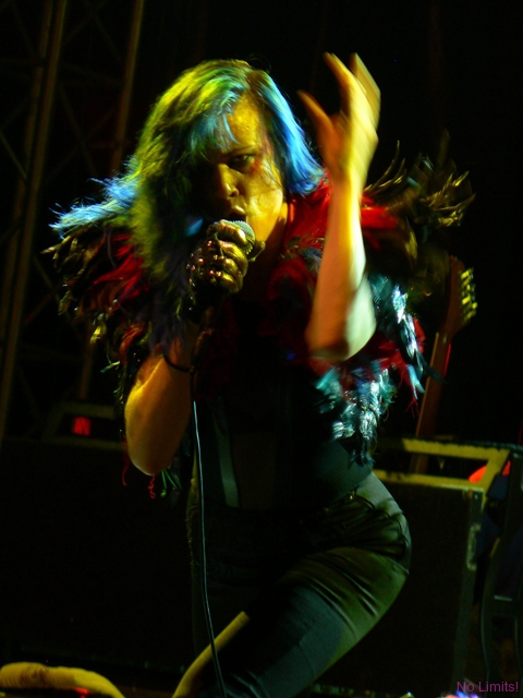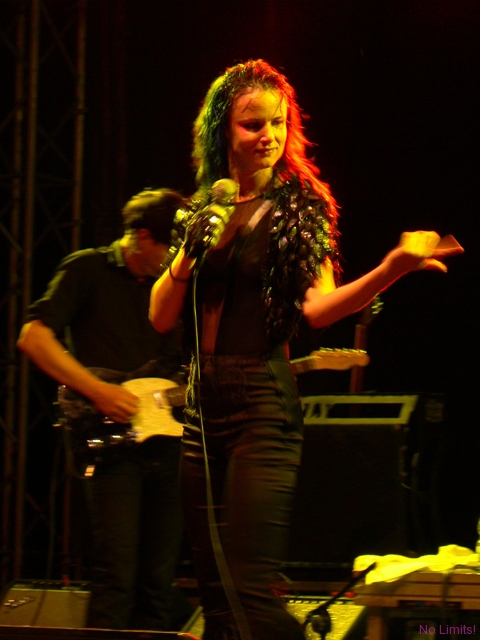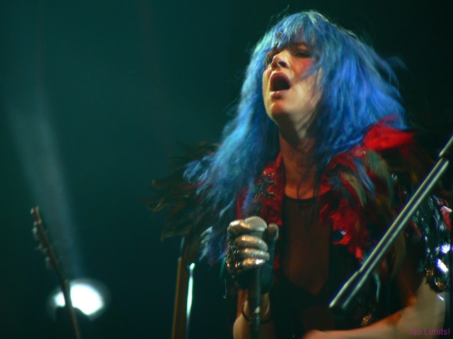 Kobiety starzeją się generalnie na dwa sposoby – albo robi się z nich galaretka, albo susz. Piękności, pragnąc zachować przemijającą urodę, wciąż starają się być ponętne i seksowne, niczym dwudziestolatki. I wiecznie walczą ze swoją galaretowatością. Te nieco brzydsze mają jednak zazwyczaj lepszy układ z czasem. Nie będąc pięknością za młodu, nie muszą starać się nią być w wieku nieco starszym. Mogą być za to po prostu fajne. Juliette Lewis jest właśnie jedną z tych, które nigdy nie prowadziły w rankingach na najbardziej seksowną kobietę świata/ showbiznesu / męskiego magazynu XXX. Jest suszem. Drugą dekadę życia zakończyła już jakiś czas temu, jednak niejedna nastolatka mogłaby jej pozazdrościć figury, energii, temperamentu. Nigdy nie wyglądała jak na hollywoodzkie kanony piękna przystało, nigdy nie zagrała w wielkiej, mega kasej produkcji, nigdy nie nagrała wielkiego przeboju. Konsekwentnie jednak podąża drogą inności – od niebanalnych filmów po niebanalną kreację sceniczną. Muzyka Juliette nigdy do mnie nie przemawiała i mimo koncertu to się wciąż nie zmieniło. Przemawia jednak do mnie sama Juliette. Charyzmatyczna i interesująca. Malutka i drobniutka, ale ostra jak brzytwa. Dlatego warto było zobaczyć ją na scenie i posłuchać jej niesamowitego głosu. Z takim głosem naprawdę można wszystko. Zaskoczyło mnie to, że ekspresja Juliette, jej sposób śpiewania, dźwięki dobiegające ze sceny brzmiały nad zwyczaj oldschoolowo. Nie umiem tego wytłumaczyć, ale czułam się, jakbym została przeniesiona w czasie o jakieś 35 lat (albo i więcej) wstecz. I gdyby miał powstać film o Janis Joplin, bez względu na podobieństwo fizyczne i tym podobne sprawy, Juliette byłaby idealna.