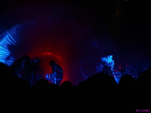 Po The Whip ruszyłam ponownie do pierwszego budynku na Goldfrapp. I tu czekało mnie niemiłe zaskoczenie – koncert już się rozpoczął. Kolejny minus. Już wolę opóźnienia niż nakładanie się występów. Dzięki temu wylądowałam w jakimś setnym rzędzie. Na szczęście udało mi się sukcesywnie przesunąć nieco bliżej, nie mniej jednak stałam naprawdę daleko.