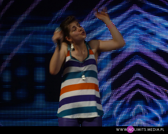 Za to główna gwiazda festiwalu, La Roux, mnie nie zawiodła, choć koncert był nieco inny, niż się spodziewałam. Wszystkim dziewczętom, które spędziły pół dnia próbując doprowadzić grzywkę do pionu, zapewne zrzedła mina, gdy na scenę wbiegła zupełnie zwyczajnie uczesana Elly Jackson. Nie tylko fryzura, ale i strój wokalistki był dość skromny – czarna koszulka plus czarne rurki a do tego złota kamizelka oraz na początku płaszczyk, a na końcu koncertu złota kurtka. Poza tym Elly była o wiele bardziej ruchliwa niż się spodziewałam. Skakała po scenie i tańczyła, a rusza się bardzo fajnie. Oldschoolowo, powiedziałabym. Niby nic takiego, a jednak biła od niej jakaś dojrzałość i subtelna kobiecość. Do tej pory Elly jawiła mi się jako nastolatka (choć wiem, że nastolatką nie jest), teraz natomiast ujrzałam kobietę. Obawiałam się, że będzie na scenie wyobcowana, przeżywająca swoje utwory tak, jakby obok nie było nikogo. Ona jednak dzieliła się swoimi emocjami z publicznością, mówiła do niej, zachęcała do zabawy i dziękowała za bardzo ciepłe przyjęcie, wyznając, że obawiała się trochę tego występu, ale teraz na pewno chce wrócić przy okazji promocji nowej płyty. Elly zagrała chyba wszystkie utwory z debiutanckiej płyty plus „Saviour”, znane mi lepiej jako „Finally”, nagrane w duecie ze Skreamem! na jego album „Outside the box” oraz na bis genialny cover Rolling Stone’sów „Under my Thumb”, który był najmocniejszym momentem całego występu. Nie zabrakło oczywiście singlowych „I’m not your toy”, który zagrany dość wcześnie rozruszał publiczność, „Quicksand”, „In for the kill” oraz wieńczącego show, rozpoczynającego się wydłużonym intro „Bulletproof”. Wokalnie Elly też moim zdaniem dawała radę, czy śpiewając nisko, czy wchodząc w swoje charakterystyczne wysokie rejestry. Najbardziej popowy koncert podczas całego festiwalu, choć bardzo delikatny i grzeczny w porównaniu z większością pozostałych i najbliższy studyjnemu brzmieniu znanemu z albumu, jak najbardziej można zaliczyć do udanych.