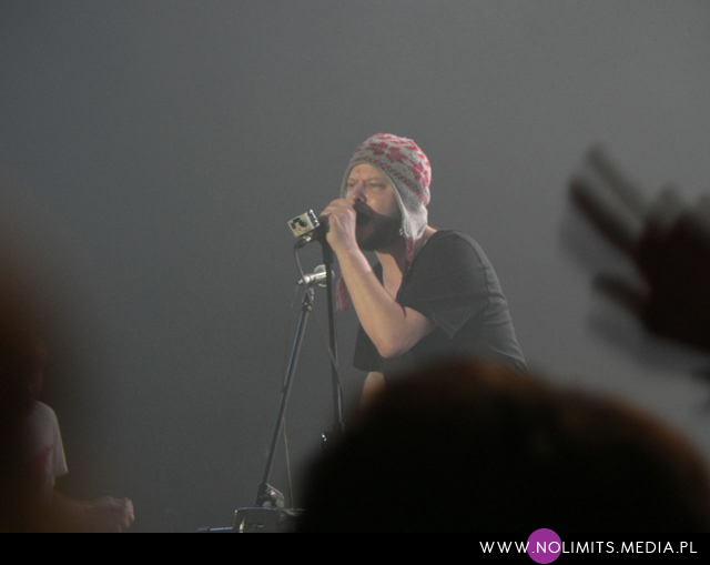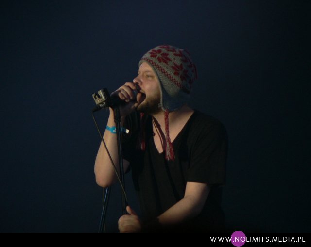 Największym chyba jednak zaskoczeniem był dla mnie koncert Hercules and the Love Affair. Muzyka nie cichła ani na chwilę a trójka barwnych wokalistów pod wodzą Andy’ego Butlera ani na moment nie zastygała w bezruchu. Pani w tunice z napisem „On Off” – pochodząca z Wenezueli Aerea Negrot, prezentowała szeroki wachlarz umiejętności wokalnych, od niskich, niemal męskich aż po wysokie, operowe rejestry, skacząc przy tym, wierzgając nogami i biegając po całej scenie. Jej ekspresja, a zwłaszcza mimika twarzy nasuwała mi skojarzenia z Grace Jones. Mała kobietka z czupryną krótkich, kręconych włosów, o piskliwym głosiku i nieco androgynicznej urodzie – Kim Ann Foxman, wyglądała jak żywcem wyjęta z lat 80tych, prezentując na sobie pasiasto-groszkową, męską koszulę i zabójczo kolorowe getry. Wreszcie był też pan w turbanie na głowie – Shaun Wright, który przez cały występ dawał pokaz najprawdziwszego, gejowskiego i pachnącego Nowym Jorkiem vogue’a. Ten koncert pozwolił nam poczuć klimat nieustających nowojorskich imprez. Za sprawą piosenek utrzymanych w stylu disco, przenosił nas w czasie do lat 70tych, by za chwilę, bardziej house’owymi dźwiękami wstrzelić nas w lata 80te. Na płytach nie rusza mnie to w ogóle, na żywo zaś tak powala energią, że nie sposób ustać w miejscu. Moim zdaniem najbardziej klimatyczny występ festiwalu. I być może nawet najlepszy.