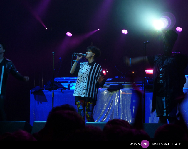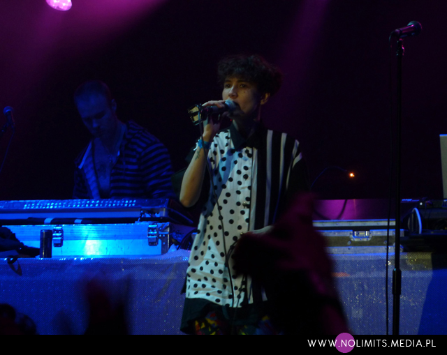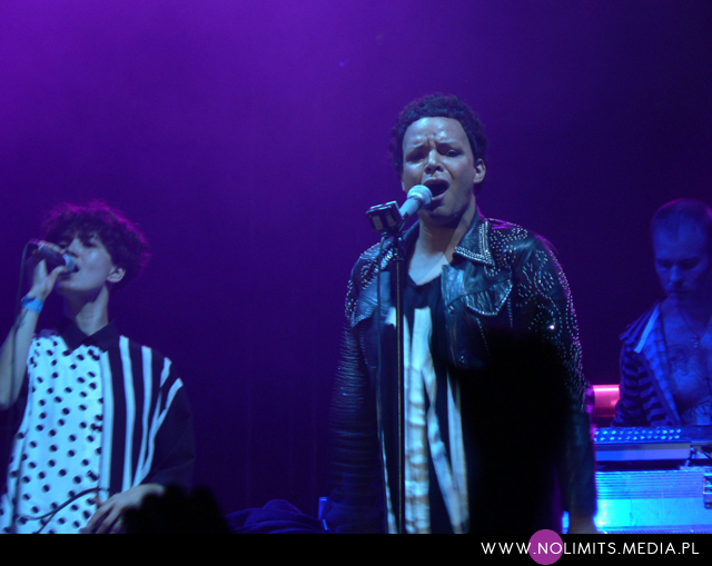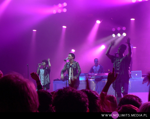 Największym chyba jednak zaskoczeniem był dla mnie koncert Hercules and the Love Affair. Muzyka nie cichła ani na chwilę a trójka barwnych wokalistów pod wodzą Andy’ego Butlera ani na moment nie zastygała w bezruchu. Pani w tunice z napisem „On Off” – pochodząca z Wenezueli Aerea Negrot, prezentowała szeroki wachlarz umiejętności wokalnych, od niskich, niemal męskich aż po wysokie, operowe rejestry, skacząc przy tym, wierzgając nogami i biegając po całej scenie. Jej ekspresja, a zwłaszcza mimika twarzy nasuwała mi skojarzenia z Grace Jones. Mała kobietka z czupryną krótkich, kręconych włosów, o piskliwym głosiku i nieco androgynicznej urodzie – Kim Ann Foxman, wyglądała jak żywcem wyjęta z lat 80tych, prezentując na sobie pasiasto-groszkową, męską koszulę i zabójczo kolorowe getry. Wreszcie był też pan w turbanie na głowie – Shaun Wright, który przez cały występ dawał pokaz najprawdziwszego, gejowskiego i pachnącego Nowym Jorkiem vogue’a. Ten koncert pozwolił nam poczuć klimat nieustających nowojorskich imprez. Za sprawą piosenek utrzymanych w stylu disco, przenosił nas w czasie do lat 70tych, by za chwilę, bardziej house’owymi dźwiękami wstrzelić nas w lata 80te. Na płytach nie rusza mnie to w ogóle, na żywo zaś tak powala energią, że nie sposób ustać w miejscu. Moim zdaniem najbardziej klimatyczny występ festiwalu. I być może nawet najlepszy.