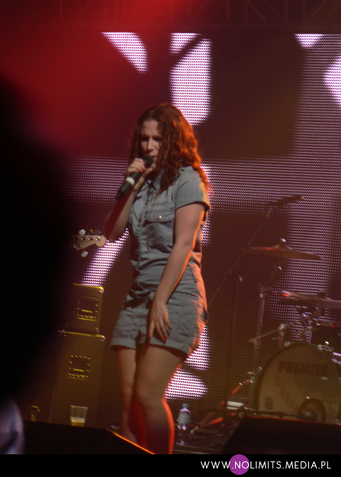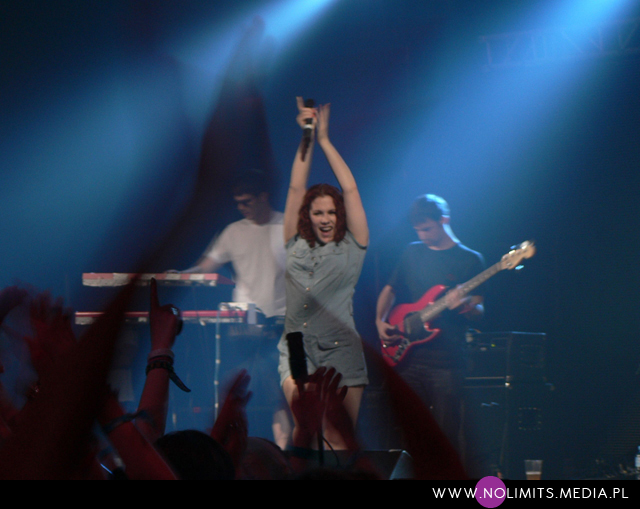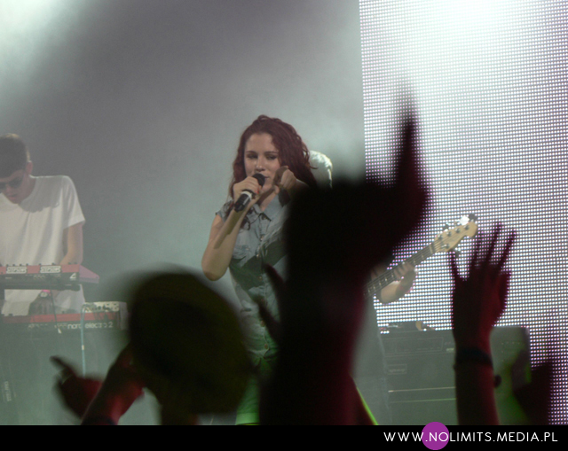 Za to główna gwiazda festiwalu, La Roux, mnie nie zawiodła, choć koncert był nieco inny, niż się spodziewałam. Wszystkim dziewczętom, które spędziły pół dnia próbując doprowadzić grzywkę do pionu, zapewne zrzedła mina, gdy na scenę wbiegła zupełnie zwyczajnie uczesana Elly Jackson. Nie tylko fryzura, ale i strój wokalistki był dość skromny – czarna koszulka plus czarne rurki a do tego złota kamizelka oraz na początku płaszczyk, a na końcu koncertu złota kurtka. Poza tym Elly była o wiele bardziej ruchliwa niż się spodziewałam. Skakała po scenie i tańczyła, a rusza się bardzo fajnie. Oldschoolowo, powiedziałabym. Niby nic takiego, a jednak biła od niej jakaś dojrzałość i subtelna kobiecość. Do tej pory Elly jawiła mi się jako nastolatka (choć wiem, że nastolatką nie jest), teraz natomiast ujrzałam kobietę. Obawiałam się, że będzie na scenie wyobcowana, przeżywająca swoje utwory tak, jakby obok nie było nikogo. Ona jednak dzieliła się swoimi emocjami z publicznością, mówiła do niej, zachęcała do zabawy i dziękowała za bardzo ciepłe przyjęcie, wyznając, że obawiała się trochę tego występu, ale teraz na pewno chce wrócić przy okazji promocji nowej płyty. Elly zagrała chyba wszystkie utwory z debiutanckiej płyty plus „Saviour”, znane mi lepiej jako „Finally”, nagrane w duecie ze Skreamem! na jego album „Outside the box” oraz na bis genialny cover Rolling Stone’sów „Under my Thumb”, który był najmocniejszym momentem całego występu. Nie zabrakło oczywiście singlowych „I’m not your toy”, który zagrany dość wcześnie rozruszał publiczność, „Quicksand”, „In for the kill” oraz wieńczącego show, rozpoczynającego się wydłużonym intro „Bulletproof”. Wokalnie Elly też moim zdaniem dawała radę, czy śpiewając nisko, czy wchodząc w swoje charakterystyczne wysokie rejestry. Najbardziej popowy koncert podczas całego festiwalu, choć bardzo delikatny i grzeczny w porównaniu z większością pozostałych i najbliższy studyjnemu brzmieniu znanemu z albumu, jak najbardziej można zaliczyć do udanych.