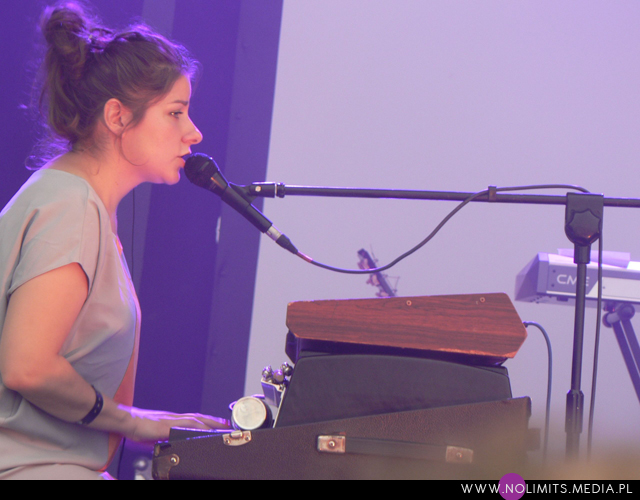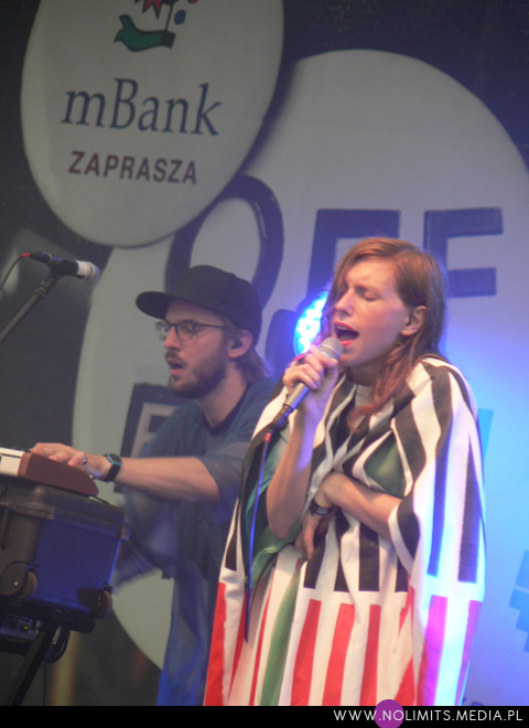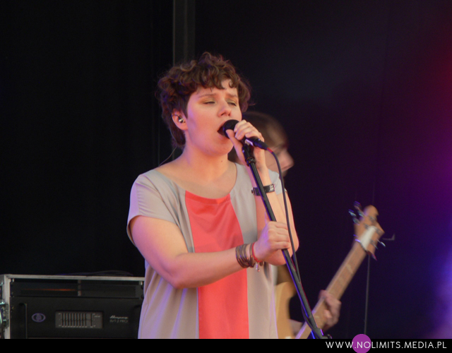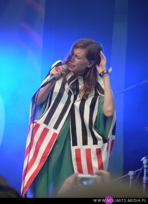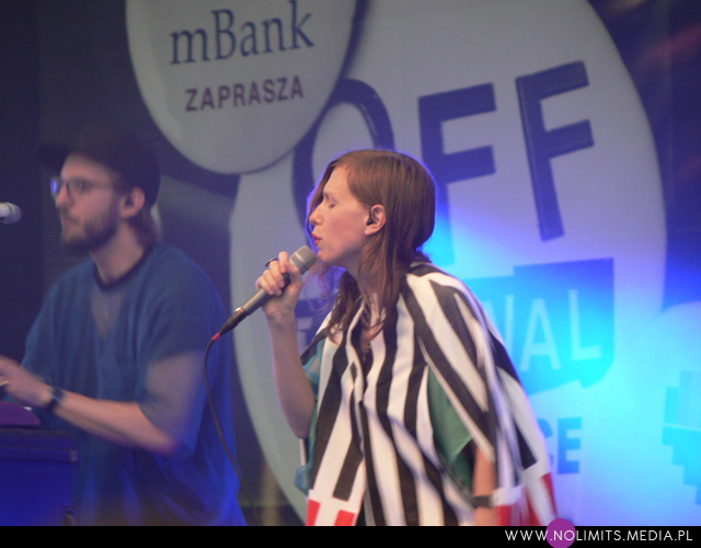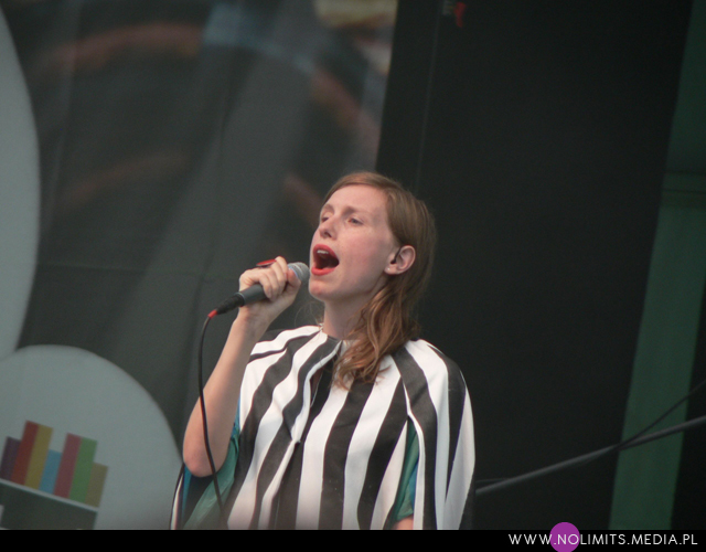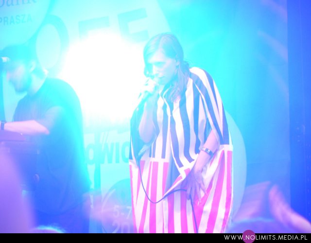 A muzyka? Muzyka była gdzieś w tle. Pierwszym koncertem, na który trafiłam celowo i z rozmysłem był koncert Glasser. Na twórczość Cameron Mesirow natknęłam się kilka miesięcy temu, razem z Austrą (notabene ta też by świetnie do OFFa pasowała) i wówczas niespecjalnie przypadła mi do gustu. Wiedziałam jednak, że to taka muzyka, która musi trafić na odpowiedni moment. Dlatego koncertu wysłuchałam prawie w całości (trochę się spóźniłam na początek). Dziwne melodie, wydające się dość trudne, a z drugiej strony znajdujące sobie jakieś ukryte miejsce w pamięci, eksperymentalne aranżacje, wielogłosy – to twórczość Glasser. W odbiorze przeszkadzał może tylko nadmiar dziennego światła. Wydaje mi się też, że taka muzyka potrzebuje na żywo bardziej rozbudowanego instrumentarium niż tylko kilka klawiszy (? w sumie nie wiem co to było za pudełeczko) – chociażby po to, żeby stwarzać pozory.