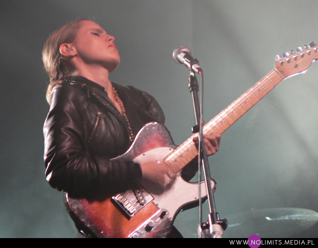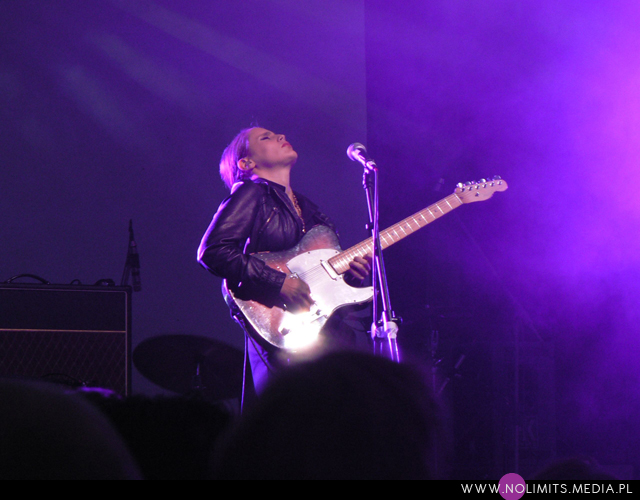 Ostatnim koncertem, który chciałam obejrzeć, był występ Anny Calvi (choć płyta jakoś specjalnie nie przypadła mi do gustu). Ta blondwłosa Brytyjka to ciekawe zjawisko do słuchania i oglądania. Jest niewątpliwie ładna, ale przy tym zimna i ostra. Taka kobieta nikomu nie schlebia, nikomu nie próbuje się przypodobać – włosy gładko uczesane do tyłu, czarna skórzana kurtka, czarne spodnie, dość wysoko zawieszona gitara, na której grając bardziej przypominała mężczyznę niż kobietę. Wszystko to sprawiało wrażenie pewnego minimalizmu i surowości. Do tego jej duży, mocny głos, nieco operowy, nieco dramatyczny i mroczny, idealnie pasujący do wizerunku i nastroju. Kolejny ciekawy koncert, choć niekoniecznie w moim stylu.