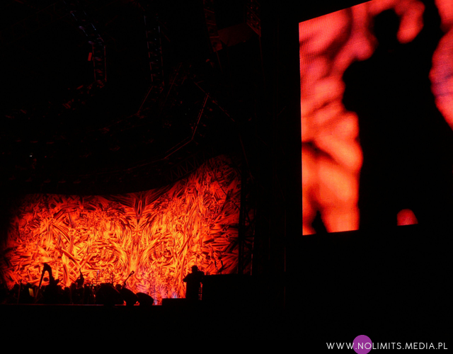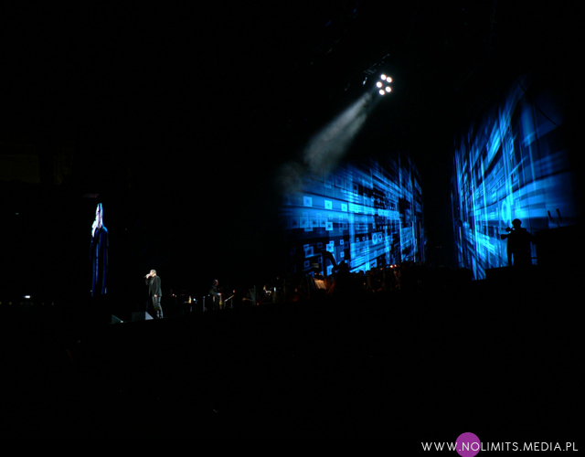 Ale od początku. O godzinie 17ej pod stadionem utworzył się już ogromny korek a o miejsce parkingowe, zwłaszcza to darmowe, nie było łatwo. Pomimo tego samo wejście na teren obiektu odbyło się sprawnie i szybko – żadnego stania w kolejkach i czekania. Za bramkami stoiska z jedzeniem i piciem (super! tego się nie spodziewałam), a nieco dalej oficjalny sklepik, niestety z rzeczami dotyczącymi tylko bieżącej trasy. Na stadionie byłam tylko raz (Legia :]) i nie myślałam, że wokół płyty i trybun na takim obiekcie może być zamknięta część takiego samego typu, jak w hali, choć teraz wydaje mi się to takie oczywiste, zwłaszcza, że to nowiutki stadion. W części zamkniętej co 5 kroków natrafiałam na toalety (kolejne super!, choć to w nowych obiektach raczej standard). Dodatkowo i tu było mnóstwo stoisk z jedzeniem (żeby jednak nie było tak różowo – wszędzie podawano to samo) oraz kilka sklepików. Po spacerku, obejmującym obejście połowy budynku postanowiłam w końcu sprawdzić, gdzie znajduje się moje miejsce. Pierwsze wrażenie, gdy zobaczyłam murawę – wow, całkiem nieźle. Potem przywykłam. Do mojego siedzonka szłam i szłam, myśląc z każdym krokiem – będzie dobrze, będę blisko. A kiedy doszłam, okazało się, że ktoś najwyraźniej się pomylił. Okazało się, że miejsca zostały ponumerowane odwrotnie niż było to pokazane na mapkach w internecie, skutkiem czego zamiast siedzieć najbliżej środka sceny, jak to było możliwe w moim bloku (sektory są na trybunach a na płycie bloki ;-)), siedziałam z samego boku. Zamieszanie z miejscami trwało zresztą przez większą część koncertu. Wiele osób się zamieniało, szukano także wolnych miejsc (bo były takowe), ciągle trwały jakieś roszady. W dodatku nie obyło się bez spóźnialskich. Ostatecznie w czasie pierwszej części koncertu siedziałam o jeden rząd bliżej niż powinnam, podczas drugiej wróciłam do swojego rzędu (jakimś cudem pojawili się nagle prawowici właściciele miejsc…), choć nie dokładnie na miejsce obok (moje miejsce służyło komuś za stolik), a pod koniec wylądowałam pod sceną. Spóźnienia (na obie części koncertu!), wycieczki, pogaduchy, wszechobecne żarcie (głównie nachos) i Cola – to niestety psuło atmosferę bądź co bądź eleganckiego i nastrojowego, przynajmniej w zamierzeniu, koncertu.