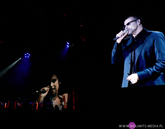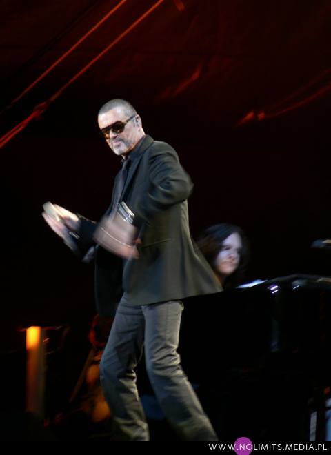 Po „Feeling good”, podczas którego na telebimie królowała zjawiskowa Dita Von Teese, George się pożegnał i razem z orkiestrą zszedł ze sceny. Ochrona natomiast zrobiła wówczas coś dziwnego – panowie stanęli ciaśniej wzdłuż barierek (choć podczas całego koncertu pod samą sceną stało może ze trzech ochroniarzy), jakby obawiając się, żeby przypadkiem nikt nie próbował podejść za blisko, choć dookoła nikogo nie było. A skoro już wykonali taki ruch, zabezpieczając się z góry, czemu mieliby to robić na próżno? Tak właśnie wylądowałam pod sceną. A po chwili wyszedł ponownie George wraz ze swoim chórkiem i kilkoma muzykami. Miała nastać ta najbardziej wyczekiwana część, podczas której, zgodnie z jego zapewnieniem z początku koncertu, mieliśmy wreszcie mieć szansę potańczyć i pośpiewać. I stało się: „Amazing” (szczerze nie znoszę tego utworu, ale przetrwałam), „I’m your man” z repertuaru Wham! oraz ten jeden utwór, dla którego tam właściwie byłam: „Freedom’90”. I chociaż bardzo się cieszę z obecności tej trójki, muszę obiektywnie przyznać, że nijak się ona miała do reszty koncertu. Niestety utwory te zostały zagrane tak, jak są grane zazwyczaj (wystarczy chociażby sięgnąć po nagranie „Freedom” z koncertu unplugged). Zero zaskoczenia, zero nowości. A orkiestra w tym czasie odpoczywała. Przykro mi, ale już chyba wolałabym, żeby zrobiono z nich nawet ballady, ale zaaranżowane na orkiestrę, niż żeby brzmiały tak, jak zostało to zaprezentowane. W tym miejscu zabrakło mi niestety spójności i pomysłu. Na ukołysanie George zaśpiewał jeszcze „I remember you” i w takt ostatniego, instrumentalnego „Free” zniknął w ciemnościach.