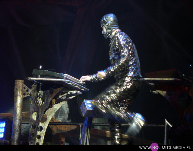 Kilka zdań wcześniej użyłam słowa „legendarny”, teraz muszę je powtórzyć, bo mam poczucie, że uczestniczyłam w czymś właśnie legendarnym. Lata największej świetności Vivy, drugiej najważniejszej stacji muzycznej chyba nie tylko w moim życiu, ale i w życiu wielu osób z mojego pokolenia, to właśnie Rammstein. Zwłaszcza „Du hast” i „Engel”. To taka moja młodość. Fajne czasy. I teraz to wszystko zobaczyłam – było dokładnie tak, jak w relacjach w Bravo i Popcornie (tzn tak mi się wydaje, że tam czytałam o ich koncertach, bo gdzież by indziej?). Dokładnie. Zwłaszcza „miotacze” ognia na twarzach Richarda, Paula i Tilla przypomniały mi o czasach, gdy takie obrazki oglądałam jedynie na zdjęciach w gazetkach muzycznych. I gdy uważałam taką muzykę za bardzo „heavy”. Tymczasem aż taka ciężka i ostra to ona nie jest. Poza tym zawsze twierdziłam, że Rammstein ma wiele bardzo melodyjnych piosenek. Publiczność okazała się z kolei niewiarygodnie spokojna. Trochę się obawiałam po szaleństwach i pogo, jakie miały miejsce na before party, ale okazało się, że było o wiele, wiele spokojniej niż chociażby na warszawskim Ladytron czy też na pierwszym z brzegu IAMX. Zero przepychania, zero deptania, mało tego – dookoła mnie było naprawdę luźno i gdybym tylko chciała, mogłabym stać o wiele bliżej. Wybrałam jednak widok na całą scenę.