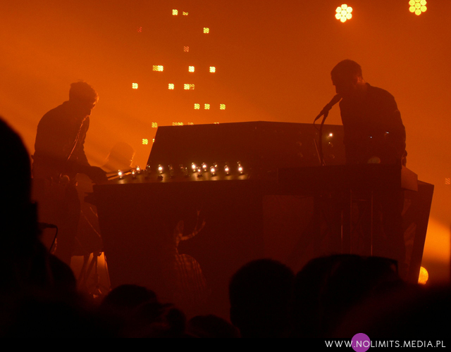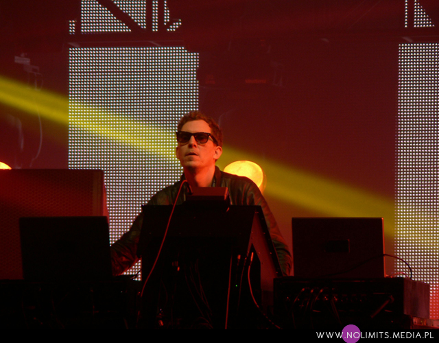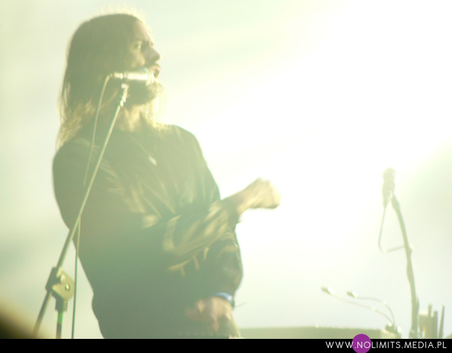 Bo w wersji koncertowej rzecz miewa się zgoła inaczej. Na żywo muzyka tria to energetyczna bomba a każdy utwór nadaje się do skakania, nawet uwielbiana przeze mnie i postrzegana niemal balladowo „Silvia”. Przez niemal cały koncert parkiet chodził na wszystkie strony – lewo, prawo, góra, dół. Prawie każdy utwór zagrany był w dłuższej wersji, która kończyła się elektronicznym popisem duetu Karlsson/Winnberg. Jedynie „Black & Blue” zagrany został w kuriozalnie krótkiej formie, mocno kontrastującej z resztą setu. Poza tym utwierdziłam się w przekonaniu, że lubię nie tylko Andrew Wyatta (wiadomo, wokalistę każdy lubi ;-)), ale i Christiana Karlssona – uwielbiam patrzeć jak rusza się ten facet. A Andrew Wyatt trochę zbyt często krył się za klawiszami ustawionymi gdzieś z tyłu sceny – dlatego też moja „Sylvia” jest chyba najnudniejszym filmikiem, jaki nakręciłam. Za to kiedy wychodził przed publiczność zdarzały mu się takie momenty tańca, że miałam wrażenie zaraz zobaczyć szpagat 😉 Szczęśliwe pierwsze rzędy miały szansę uścisnąć mu dłoń, gdy dwukrotnie schodził do fosy. Ja jednak dość szybko wycofałam się na bok – cóż, lubię mieć choć odrobinę przestrzeni. Spełniło się także moje marzenie o usłyszeniu „Black Tin Box”, które w ciągu ostatnich tygodni wyrosło na mojego faworyta z ostatniej płyty. Utwór ten jest grany zamiennie z „Vase”, więc nie obyło się bez trzymania kciuków. Tylko szkoda trochę, że partii Lykke Li nie zaśpiewała ona sama – nie śmiałabym nawet marzyć o pojawieniu się jej na scenie, ale mogłaby chociaż zabrzmieć z playbacku. No ale cóż. Żałuję też, że nie grają „Plastic jungle”. W stosunku do ostatnich setlist nie było także „God help this divorace”, choć w tym przypadku nie będę narzekać. Wydawało mi się, że miejsca tego utworu nie zajął żaden inny a więc set był krótszy o jedną piosenkę. Zresztą w ogóle, podobnie jak w przypadku Niki & The Dove, którzy nawiasem mówiąc zupełnie zmienili kolejność granych utworów, miałam odczucie, że koncert był jakiś podejrzanie krótki. Ale to pewnie tylko efekt ogólnego wrażenia „festiwalu na pół gwizdka”.
