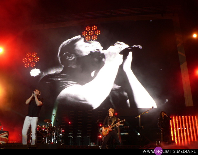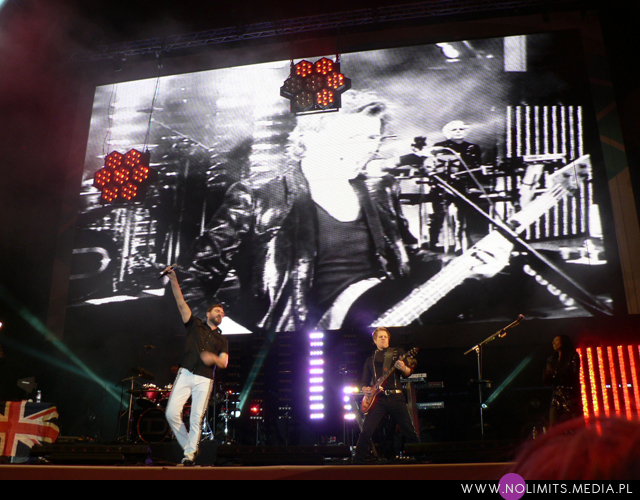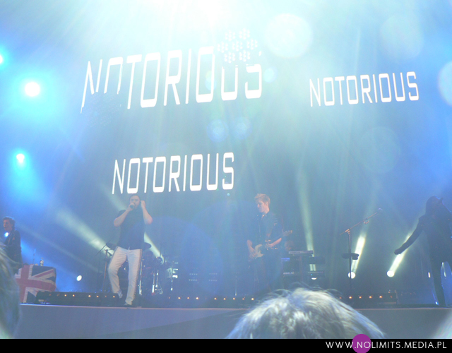 Wydaje mi się, że ten koncert pod względem technicznym był lepszy od poprzedniego. Pewnie wynika to z faktu, że panowie cały czas są w trasie promującej ostatni krążek. W dodatku wyglądało to jak część trasy, dzięki telebimowi i wizualizacjom, które były moim zdaniem bardziej integralną częścią koncertu, niż te z 2006 roku, o których istnieniu przypomniały mi dopiero zdjęcia. Wideoklip do „Girl panic!” na tak dużym ekranie naprawdę robił wrażenie. I okładka albumu „Rio” wyświetlona przed ostatnim numerem (niestety nie zdążyłam uwiecznić jej na zdjęciu). Rozgwieżdżone niebo na „Planet Earth”, palmy podczas „Ordinary world” oraz wielkie napisy „No” i „Notorious” – w czasie wiadomo którego utworu ;-).
