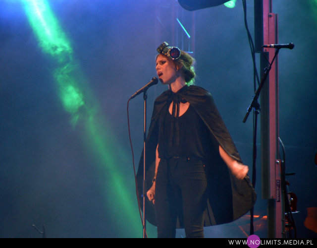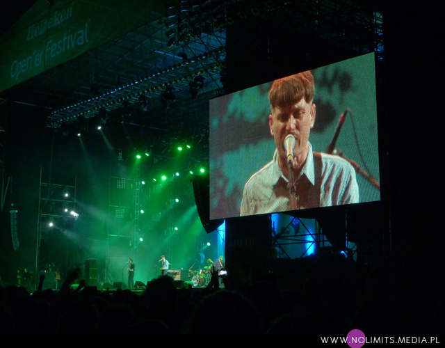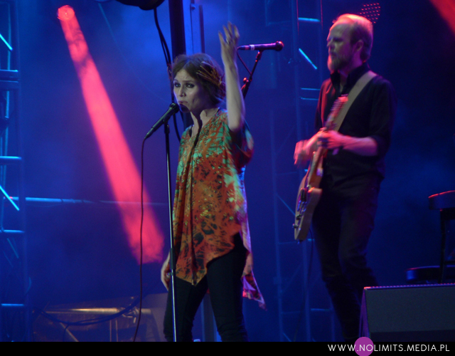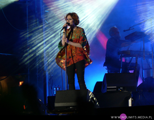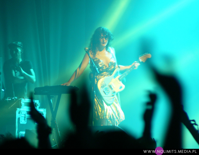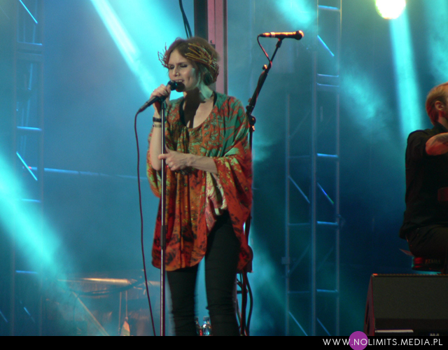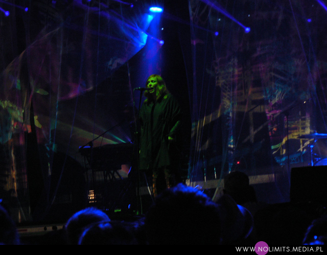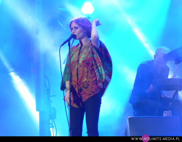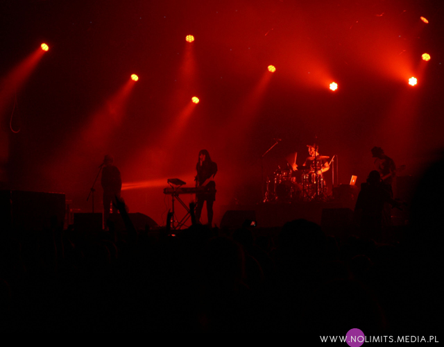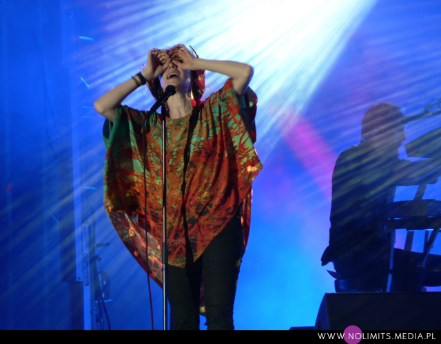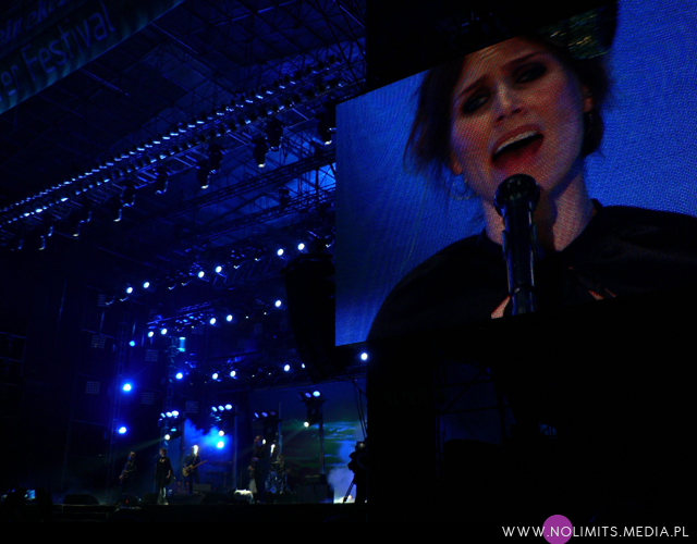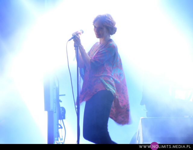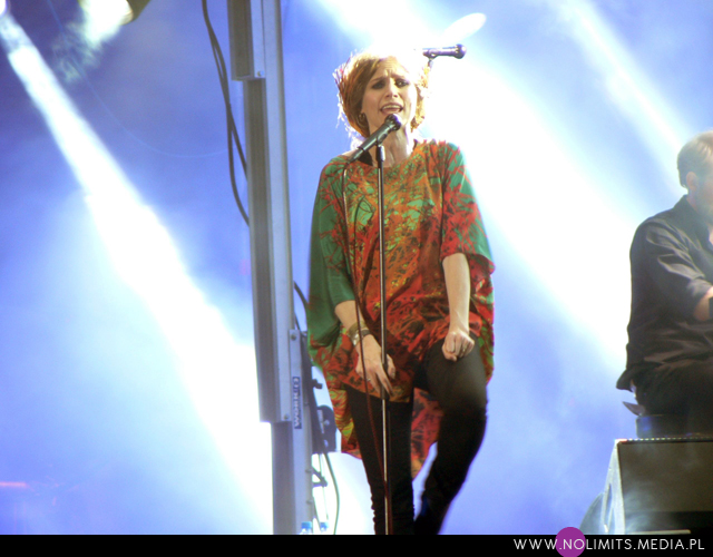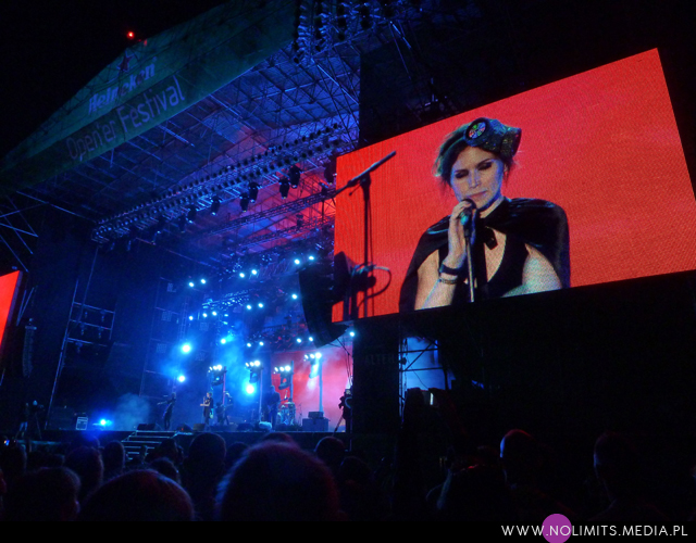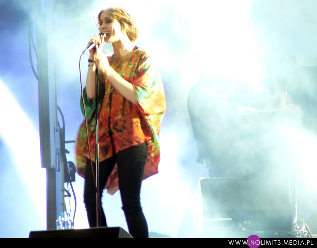 Popatrzywszy trochę na Bloc Party, ruszyłam następnie na Nosowską. Chyba nigdy na żadnym festiwalu nie chciałam zobaczyć tylu polskich wykonawców, co teraz. Bo z Polakami to jest tak, że zawsze można ich zobaczyć przy innej okazji. Tym jednak razem postanowiłam pozaliczać kilka nazwisk, w tym także, a może przede wszystkim, patronkę wszystkich alternatywnych polskich wokalistek – Kasię Nosowską. Ostatecznie jej w swoim życiu słuchałam najwięcej (tzn dwóch pierwszych płyt i tylko solo). Na koncercie było widać, że to ona jest królową. Było najbardziej nastrojowo i klimatycznie. Wizualizacje wyświetlane na ekranach z cienkich płacht materiału, porozwieszanych w różnej odległości od siebie, tworząc w ten sposób wrażenie głębi, dawały przepiękny efekt. No i oczywiście ten głos – kolejna legenda. O prezencji scenicznej Kasi naczytałam się kiedyś w wieku nastoletnim, ale wydaje mi się, że na przestrzeni lat jej gestykulacja nieco się rozwinęła. Było trochę machania głową ( i włosami) i kilka ruchów, przypominających nawet taniec. Sama zaś Kasia była uroczo śmieszna. Przywitała się niczym nieco zawstydzona i podekscytowana mała dziewczynka i powiedziała, że w związku z tym, iż jest to jej pierwszy koncert na Open’erze, trzęsą jej się ręce, kolana i nawet zadek 😉 Natomiast po każdym nastrojowym utworze, wyśpiewanym z emocjami w głosie, bardzo, bardzo dziękowała w ten sam pocieszny sposób.