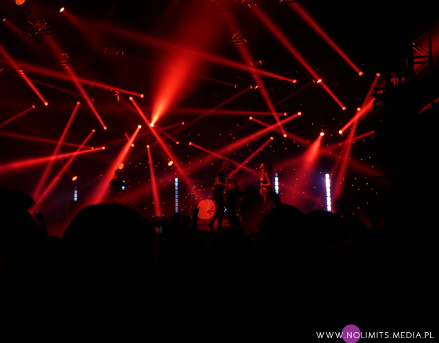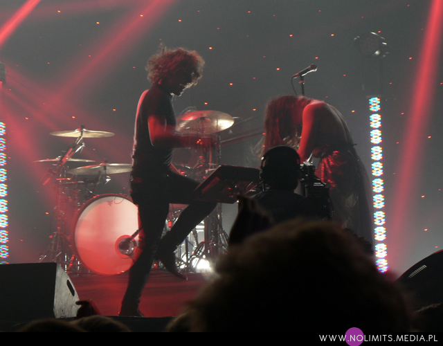 Po drugie – wokalnie wcale nie prezentuje się tak mizernie i słodko, jak na płytach (pamiętam opowieść, że gdy nagrywali z Tomem Jonesem „Burning down the house”, żadnych partii wokalnych nie mogli wykonywać razem, gdyż Tom całkowicie zagłuszał Ninę). Mało tego, na przestrzeni lat jej głos stał się nieco chropowaty, zupełnie jak u Steffena z De/Vision. Między piosenkami okazało się jednak, że to była po prostu jakaś niedyspozycja wokalna, czyli zwykła chrypka. Tak czy siak, chociaż „Lovefool” (bo przecież nie mogło go zabraknąć) zabrzmiało w tej wersji nieco dziwacznie, ogólnie z takim głosem bardzo było Ninie do twarzy.