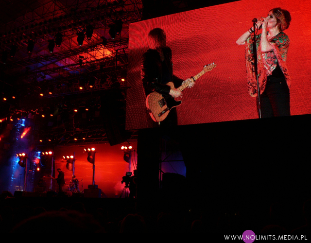 Po M83 przyszedł czas na posiłek i The Cardigans, którzy pojawili się na festiwalu jako niespodzianka, w ostatniej niemal chwili. „Gran Turismo”, czyli płyty, którą przyjechali zagrać do Gdyni, nigdy nie wysłuchałam, ale oczywiście doskonale znam singlowe „My favourite game” oraz „Erase/Rewind”. Niestety podczas tego pierwszego jadłam (a brzmiało dobrze!), drugiego natomiast w ogóle nie słyszałam. Gdy podeszłam pod scenę (a udało mi się dotrzeć całkiem blisko) zbliżali się już do końca. Zauważyłam jednak dwie rzeczy. Po pierwsze Nina wyglądała bardzo ładnie. Kilka lat temu stwierdziłam, że się zestarzała, teraz natomiast miałam wrażenie, że cofnęła się trochę w czasie. Szczuplutka, zgrabna, ze swoimi charakterystycznymi dołeczkami w policzkach i uroczym uśmiechem. I… srebrnym zębem! Przyglądałam się telebimowi, bo nie mogłam uwierzyć, ale w jej ustach naprawdę błyskał srebrny ząb!