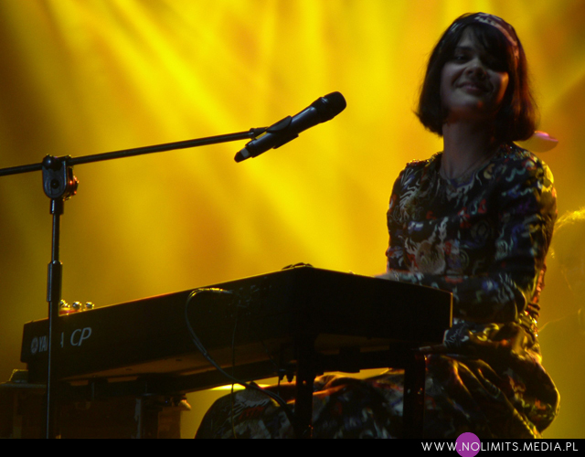 Drugi koncert, który chciałam zobaczyć tego dnia to The xx. Podobnie jak Bat for Lashes spóźnieni o 2 lata. Okazało się, ku mojemu zdziwieniu, że był to chyba najbardziej zapełniony występ podczas całego festiwalu. Trudno było się kulturalnie przepchnąć, więc stałam dość daleko. Koncert był taki, jak się spodziewałam. Absolutnie nastrojowy, surowy w brzmieniu, ocieplony tylko delikatnym, prześlicznym wokalem Romy Madley Croft. Było ascetycznie i minimalistycznie zarówno w warstwie dźwiękowej, jak i wizualnej. Tylko biel i czerń. I ogromny znak X zwisający nad głowami wykonawców. Pojedyncze „dziękuję” rzucane w stronę publiczności. Krótkie utwory, ze zdarzającymi się płynnymi przejściami. Przede wszystkim znany materiał, ale także, jak w przypadku Bloc Party, Franza Ferdinanda i Natashy Khan, kilka premier – zdecydowanie bardziej elektronicznych i klubowych od debiutanckiego materiału. Albo raczej okraszonych elektroniką, żeby nie przesadzać. Zdarzyło się także kilka momentów, gdzie zaskoczyli mnie swoją energią. Zrobiło się mocniej i głośniej, czasami wręcz bitowo – słychać to np w końcówce „Night time”. To było bardzo, bardzo ciekawe urozmaicenie tego chyba najspokojniejszego koncertu całego festiwalu. Warto czekać na nową płytę. Nie było jednak tak pięknie, jak być powinno. Nie z winy zespołu, ale z winy ludzi. Podczas żadnego innego koncertu nie stałam w otoczeniu tylu pijanych i naćpanych osobników, którzy mieli większą ochotę poskakać niż kontemplować. A to był moim zdaniem koncert do posłuchania, wyciszenia, pomyślenia. Niestety, nie dało się. Wielka, wielka szkoda.