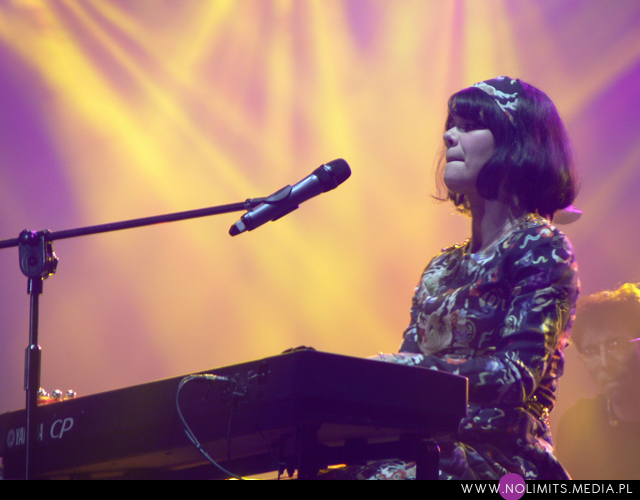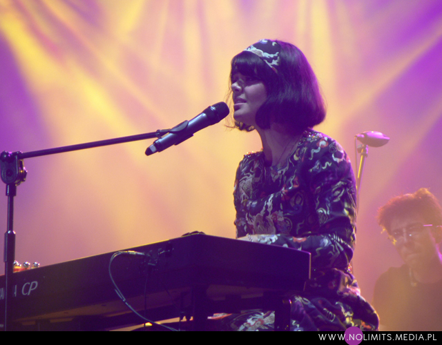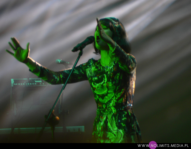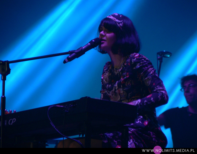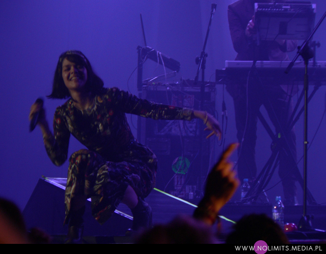 Koncert wyglądał nieco inaczej, niż sobie kiedyś wyobrażałam. Wydawało mi się, że będzie nastrojowo, mistycznie i indie-folkowo, że będą zwierzęta (w jakiejś graficznej ruchomej bądź nieruchomej postaci), w tym koniecznie dziki koń, że światła będą przygaszone, że będzie trochę Indian, i trochę Bliskiego Wschodu. Tymczasem nie było żadnych pierdół. Żadnych dekoracji (jedynym innym elementem było coś na kształt miniaturowego podestu), żadnych zwierząt. Tylko charyzma Natashy. Nie miałam pojęcia, że ona na koncertach jest taka żywa! (chociaż oglądałam coś ostatnio na You Tubie). Podskakiwała, gestykulowała, przysiadała, wznosiła ręce do nieba i prawie cały czas się uśmiechała. Ma fantastyczną świadomość własnego ciała. Strasznie była fajna. Wokalnie zaś zrobiła na mnie prawdziwe wrażenie w wysokich partiach „Glass” oraz „Sleep alone” – brzmiała przepięknie, zupełnie bez wysiłku przechodziła z niskich w wysokie rejestry. Same zaś utwory zabrzmiały mocniej niż w wersji studyjnej. Tam, gdzie na płycie pojawiał się jakikolwiek cień rytmu, do którego można było potupać nogą, na koncercie stawał się prawdziwym bitem. Dało się przy tym naprawdę tańczyć! Oprócz utworów z dwóch dotychczasowych płyt Natasha zaprezentowała aż 4 (!) nowe kawałki – wszystkie na swój sposób żywe i energetyczne. Oj, nowa płyta będzie fajna. Bardzo fajna. Już nie mogę się doczekać!