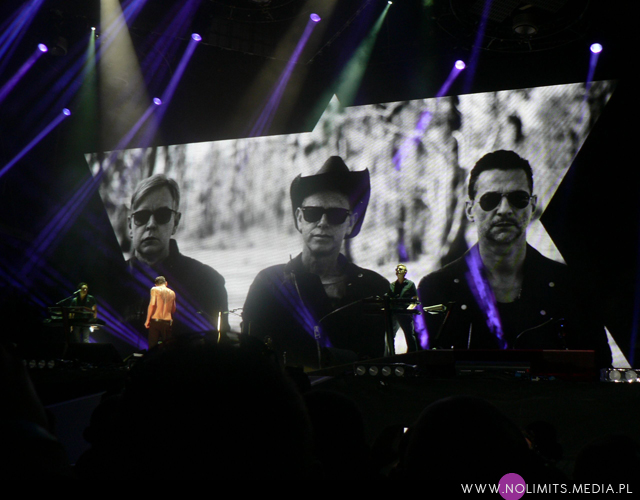 Światło zgasło nagle, rozległ się ryk publiczności i zaczęło się. Pierwsze dźwięki „Welcome to my world” przypominają nieco „Painkillera”, granego w 1998 roku (miłe skojarzenie). Rozdawane przed koncertem i drukowane wcześniej przez fanów kartki A4 z napisem „Welcome to Poland” całkowicie zasłoniły mi widok. Wejście Christiana Eignera, Petera Gordeno, Andy’ego Fletchera, Martina Gore’a i Dave’a Gahana mogłam więc oglądać tylko na wyświetlaczu mojego aparatu. Gdy zabrakło już sił do trzymania kartek w górze zrobiło się naprawdę ekstremalnie spokojnie. Bardzo dawno nie stałam wśród tak spokojnych i kulturalnych ludzi, którzy nie przepychali się, nie wymachiwali rękoma na wszystkie strony, nie skakali na boki, depcząc przy tym wszystkich wokoło, nie dźgali pieszczochami, bransoletkami czy zegarkami, nie rozlewali piwa i nie smrodzili dymem z papierosów czy innego zielska, a którzy po prostu bawili się w obrębie swoich kilku centymetrów, nie przeszkadzając innym. Z jednej strony mogło to wyglądać trochę niemrawo, z drugiej – o takim towarzystwie zawsze marzę.