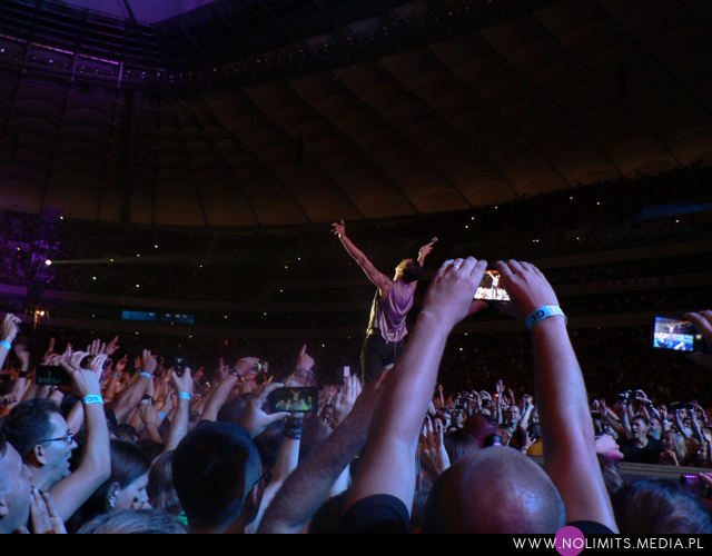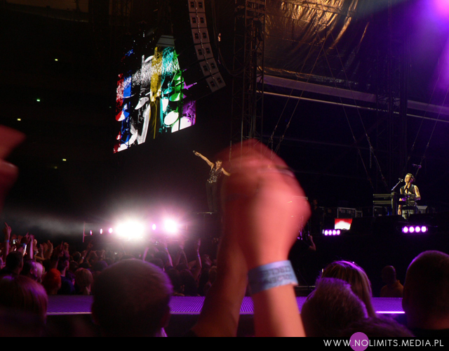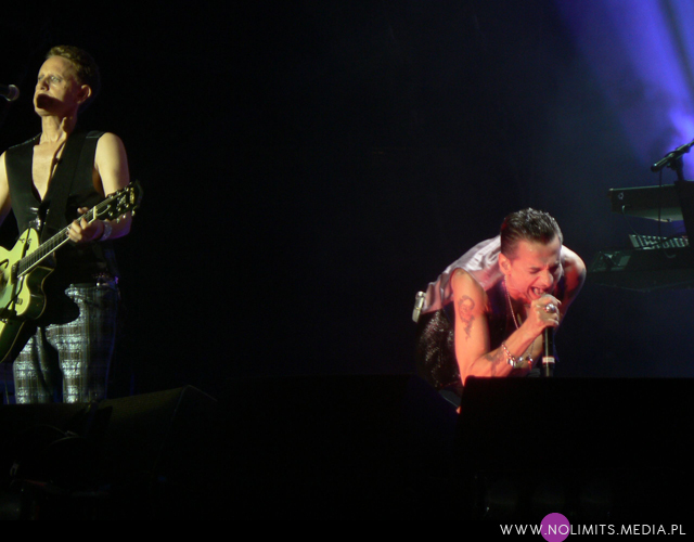 Poza tym warto odnotować, że Gahan jest w fantastycznej formie. Widziałam to już na koncercie z Londynu, oglądanym na YouTubie. Rusza się zdecydowanie spokojniej, więcej jest w jego tańcu piruetów i ocierania się o mikrofon w stylu Devotionala, mniej natomiast skoków, oklasków, kręcenia się ze statywem i okrzyków w stylu „Yeah, that’s right!” czy „Oh yeah!”. Nawet machania rękoma podczas Nevera było jak na lekarstwo. Gahan albo już się zmęczył, albo po prostu nie ma ochoty już się przemęczać i najzwyczajniej zaczął o siebie dbać. I może właśnie dzięki temu brzmi teraz lepiej. Nie beczy, a znów śpiewa. A jednocześnie wciąż fantastycznie się go ogląda, nawet jeśli się oszczędza. Widać było, że panowie dobrze się bawią i są zadowoleni z publiczności. Ale ostatecznie to Polska – jakże mogłoby być inaczej? Wydaje mi się, że doskonale wiedzą, iż na polskich fanach nigdy się nie zawiodą.