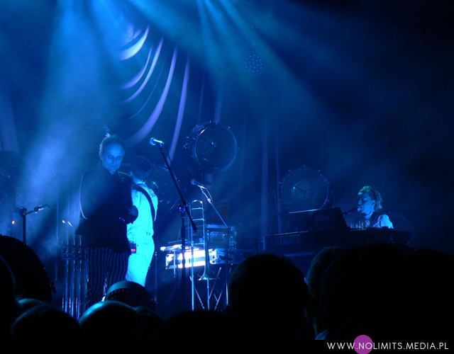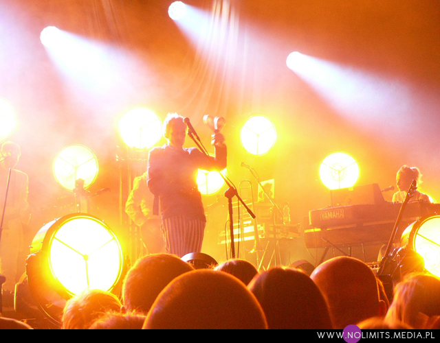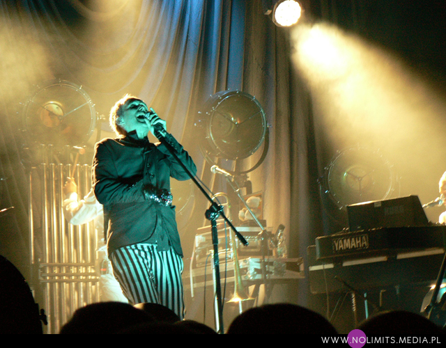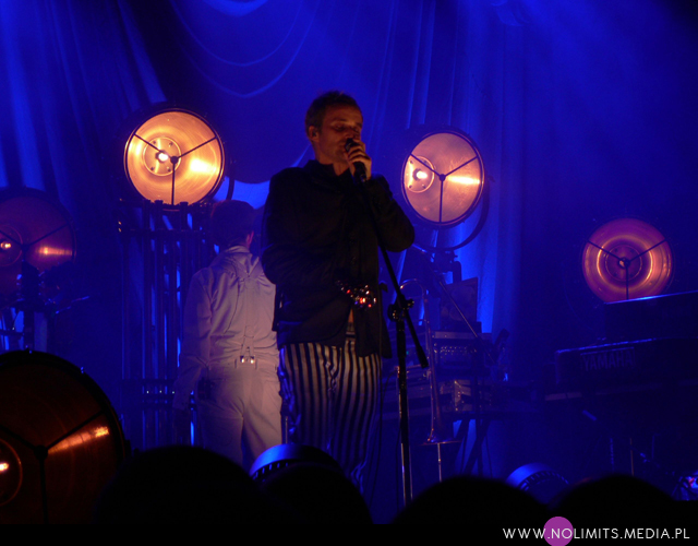 Żaden szanujący się artysta nigdy nie zagra swoich utworów na żywo w identycznych aranżacjach, jak zostały nagrane na płycie, tak więc i tu publiczność otrzymała wersje dłuższe, bardziej rozbudowane, takie, którymi można się było delektować. Gdy oglądam sobie Rojka koncertowego na YouTube, mam wrażenie, że albo nastąpiły w ostatnim czasie istotne zmiany w aranżacjach, albo ja mam słabą pamięć. W każdym razie w Łodzi było inaczej niż na wcześniejszych koncertach. Może to dlatego, że przez kontuzję wokalisty zespół faktycznie został zmuszony do przearanżowania części utworów, ale zrozumiałam, że chodziło przede wszystkim o gitarę. W każdym razie ja byłam nawet zadowolona. Nie, żebym życzyła Rojkowi źle, ale nigdy nie widziałam go dłużej bez gitary i ciekawie oglądało się go teraz takiego obnażonego. Swoją drogą z ręką na czarnym temblaku, który stapiał się niemal idealnie z koszulą (w oczy rzucała się tylko rękawiczka wyszywana kolorowymi cekinami), wyglądał trochę jak w kaftanie bezpieczeństwa, co dawało interesujący efekt. W każdym razie zapamiętałam, że „Kokon”, mimo, iż chyba jeszcze bardziej elektroniczny niż w wersji studyjnej, live wydał mi się cieplejszy i bardziej przystępny. Fantastyczny, monumentalny wstęp, zagrany na dzwonach rurowych (czy czymś podobnym z wyglądu), zyskała „Lekkość”.