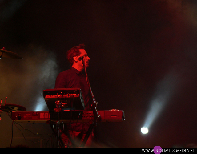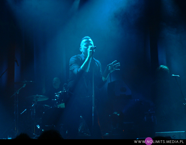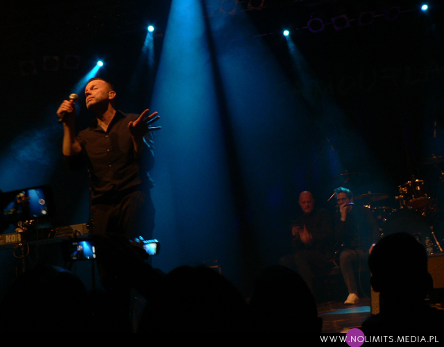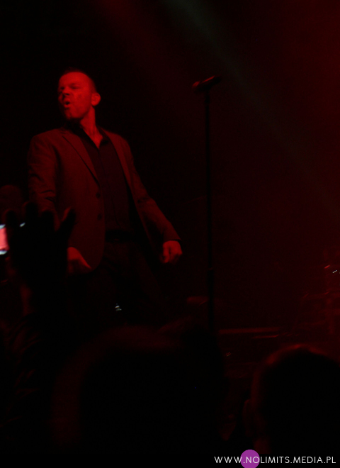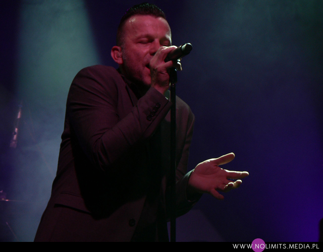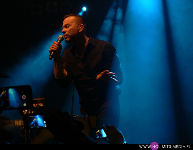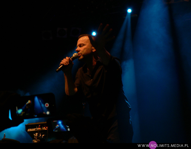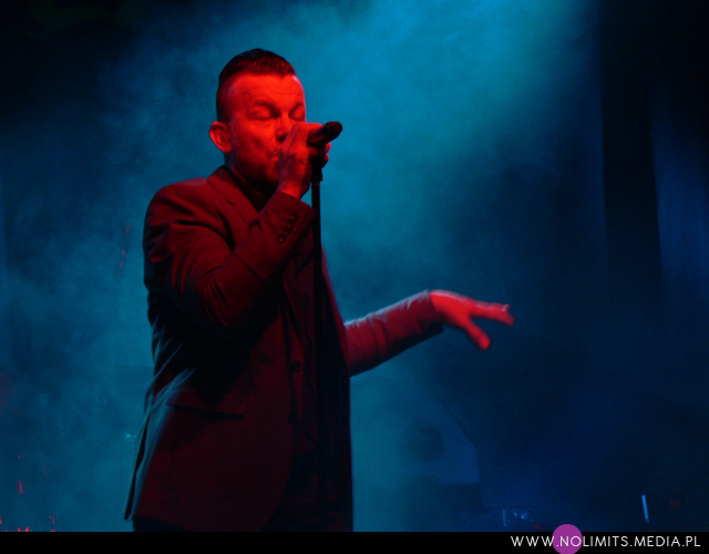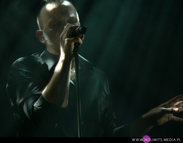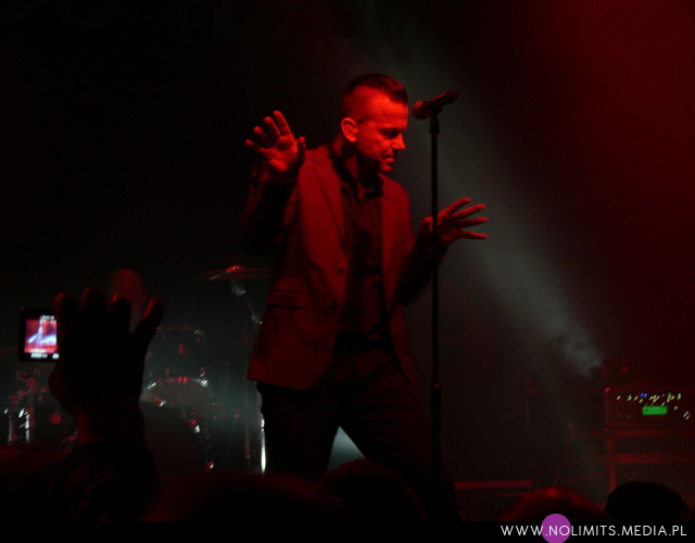Co do prezencji scenicznej mogę powiedzieć tylko jedno – fantastycznie! Uwielbiam wykonawców, którzy się ruszają (nawet jeśli trudno im przez to zrobić zdjęcie) – tańczą, wymachują rękoma i robią miny – i taki też jest Marcus. W Krakowie trochę trudno mi było przełknąć fakt, że oprócz bardzo mocnych inspiracji muzyką Depeche Mode, które słychać u Camouflage, dodatkowo Marcus ewidentnie naśladuje ruchy Dave’a Gahana. Trochę tego było już dla mnie za dużo, a szczyt przesady objawił się jako machanie rękami podczas „Me and you”, co wówczas w ogóle nie pasowało mi do utwory. Ale tak, jak wspomniałam wcześniej, oswajałam się z tym 9 lat aż się oswoiłam. Może już się napatrzyłam albo stałam się bardziej wyrozumiała, ale tym razem widziałam na scenie Marcusa Meyna, a nie faceta, który robi davedancing. Pokusiłabym się nawet o stwierdzenie, że repertuar scenicznych póz Dave’a jest zdecydowanie bardziej ubogi. Z drugiej strony Marcus jest trochę młodszy i chyba trochę mniej zniszczony przez życie, więc może sobie pozwolić na większą ekspresję. I na skakanie. Dużo skakania. I robi to wszystko bardzo lekko, z dużą gracją. Po prostu podobał mi się i tyle.