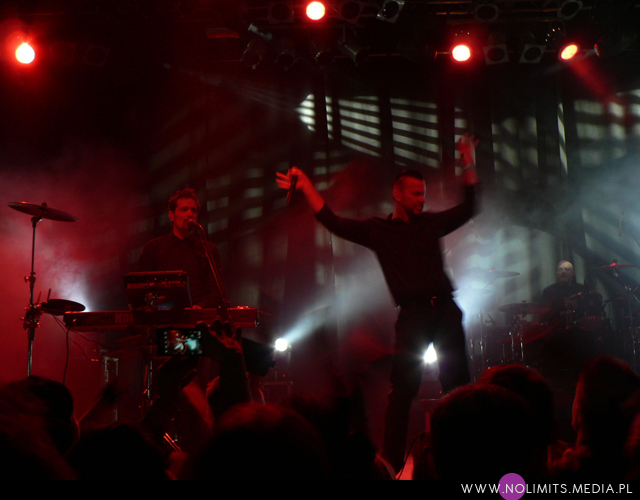 To był mój trzeci raz z Camouflage. Za pierwszym razem koncertu nie było, bo zaczęło lać (Bolków). Za drugim razem – w Krakowie obeszło się już bez podobnych niespodzianek. Było nawet spotkanie z zespołem i darmowe single. I aż mi się wierzyć nie chce, że na mój trzeci raz musiałam czekać aż 9 lat. Sądząc po gorącym przyjęciu zespołu przez publiczność, to było długie 9 lat. Tym razem jednak nie ekscytowałam się tak, jak w Krakowie – może dlatego, że w gruncie rzeczy całkiem dobrze pamiętałam tamten występ i wiedziałam czego się spodziewać. Zresztą wiadomo, że pierwszy raz wzbudza zawsze najwięcej emocji. Setlisty wyuczyłam się prawie na pamięć a ruchy sceniczne Marcusa pozostały bez zmian. I o ile w Krakowie nie do końca mi one pasowały, o tyle do czasu Warszawy zdążyłam się już pogodzić z faktami i je nawet polubić. Jednym słowem – nie było żadnego zaskoczenia. Był za to porządny, przyzwoity koncert. Dobrze brzmiący, dobrze zagrany i dobrze zaśpiewany. Podobnie jak w Krakowie, królowały utwory pochodzące z ostatniego krążka grupy (wówczas promowali „Relocated”, teraz „Greyscale”). Na szczęście nie zabrakło fragmentów „Sensora” (szkoda tylko, że nie grają „I can’t feel you”) i oczywiście kilku klasyków z lat 80tych i 90tych. Łącznikiem między szybszymi „Misery”, „Suspicious love” czy „Shine” były utwory, które ja określam mianem czystego synthpopem – „Laughing”, „Passing by”, „I’ll follow behind”, „If…”, „You turn”, „End of words”. To one tworzyły ramy koncertu, swoistą myśl przewodnią. Chyba nawet nie uświadamiałam sobie wcześniej jak bardzo się ze sobą łączą.