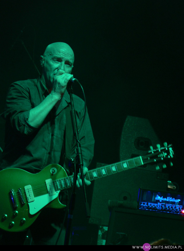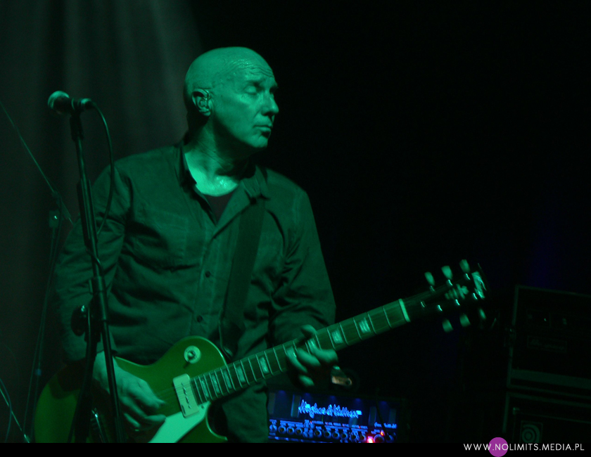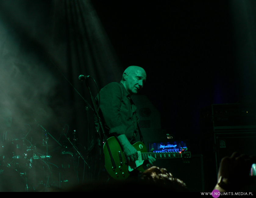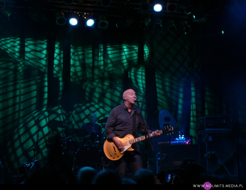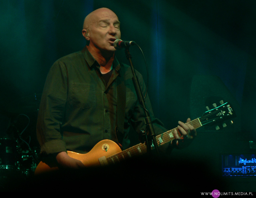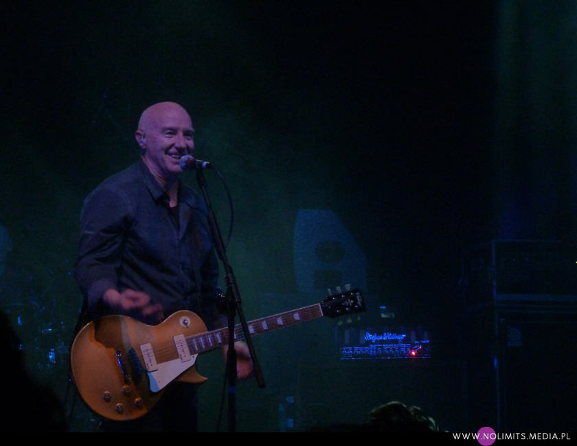 Przez te trzy dni pilnie studiowałam setlisty Midge’a (bo o poznawaniu całej dyskografii w tak krótkim czasie nie było mowy) i zdołałam się ich nauczyć na tyle, by rozpoznać po tytule prawie wszystkie utwory, które ostatecznie zabrzmiały w Progresji. I by kilka z nich naprawdę polubić. Moim faworytem jeśli chodzi o utwory Ultravox, których nie znałam wcześniej, jest „Live” z ostatniej płyty. W wersji na żywo, o dziwo, zabrzmiał jednak mniej dynamicznie niż w wersji studyjnej. Z utworów solowych Midge’a polubiłam zwłaszcza „Call of the wild”, w którym strasznie podoba mi się sposób w jaki śpiewa. Wokal Midge’a, choć nadgryziony już nieco zębem czasu, nadal jest zacny. Może i nie wyciąga tak pięknie wysokich tonów jak w czasach Live Aid, ale i tak daje radę. Jego wersja „Fade to grey” (notabene też utworu jego autorstwa) pod względem wokalnym odpowiada mi znacznie bardziej niż oryginał Steve’a Strange’a (jak on cudownie śpiewa słowa „By your side”). A skoro już mowa o tym utworze – bardzo, ale to bardzo pozytywnie zaskoczyła mnie aranżacja koncertowa – początek brzmiał jak najprawdziwsze Visage (ta elektronika!), a końcówka to już klasyczne niemal Ultravox. Przy okazji zapoznawania się z twórczością Ure’a doszłam też do wniosku, że jednak jego dokonania zespołowe bardziej do mnie trafiają, dlatego też najlepiej bawiłam się przy utworach Ultravox. Midge zagrał właściwie wszystkie, które znałam wcześniej – było i „The Voice” (akustycznie), i bardzo fajne, dynamiczne „Love’s Great Adventure”, i wyśpiewany przez publiczność „Hymn”. Tylko „Lamentu” zabrakło. Punktem kulminacyjnym była oczywiście monumentalna i przepiękna „Vienna”, a wisienką na torcie „Dancing with tears in my eyes” z ponad dwuminutowym gitarowym intro. I w tym utworze było już wszystko tak, jak należy – i zabrzmiał mocno (choć na filmiku tak tego nie słychać), i został doskonale zaśpiewany. Tak, jakby Midge przez cały koncert zbierał siły, by na końcu dać z siebie wszystko przy „Viennie” i „Dancing…”. I opłaciło się się – „Dancing with tears in my eyes” to było idealne zakończenie koncertu.