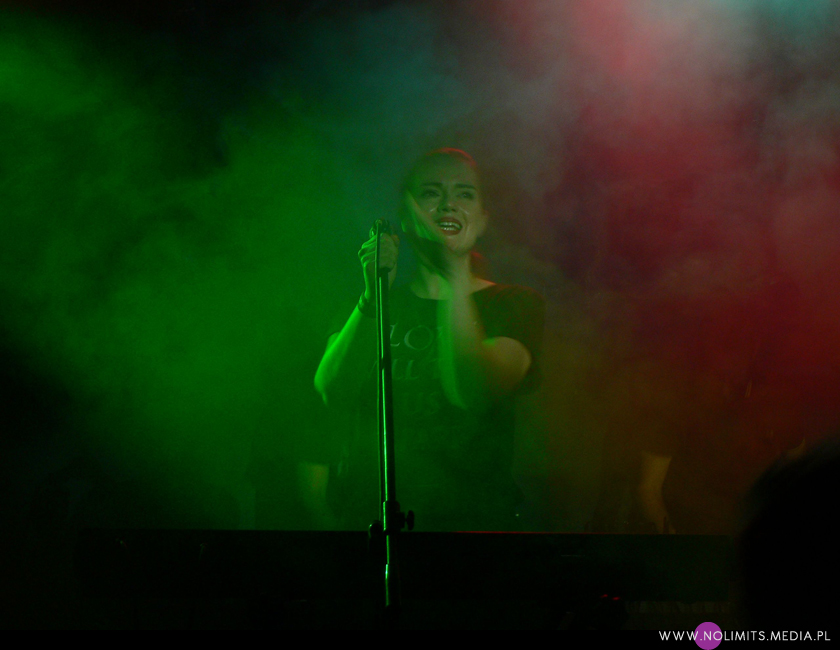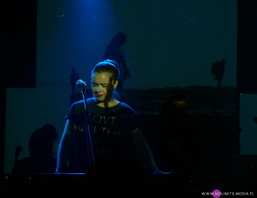 Na szczęście występ Marsheaux odbył się bez podobnych komplikacji. Greczynki pojawiły się na scenie w towarzystwie dwóch muzyków, którzy wyglądali jakby odwalali całą czarną robotę (ale przynajmniej dobrze się przy tym bawili). Panie natomiast ładnie się prezentowały za syntezatorami, na których od czasu do czasu pobrzdękiwały. Chociaż może nie wszystko byłam w stanie dostrzec, bo Sophie i Marianthi nawet w szpilkach są malutkie. Czy zaprezentowały całe „A Broken Frame”, na co można było mieć nadzieję po koncertowych zapowiedziach? Otóż nie, chociaż zagrały prawie wszystkie utwory. Zabrakło „The Meaning of Love”, „A Photograph of You” i „Shouldn’t have done that”. Od typowego koncertu jednej płyty różniło go także to, że „A Broken Frame” zostało zagrane w innej kolejności i było mocno przeplatane autorskimi utworami dziewczyn. A więc zrobił się z tego po prostu zwykły koncert, aczkolwiek koncert miły. Ze swojej twórczości Marsheaux zaprezentowały najbardziej nośne kawałki, takie jak „Summer”, „Exit”, „Come on now” czy „Breakthrough” (szkoda tylko, że nie zagrały „Hanging on”, od którego zaczęła się moja przygoda z nimi). Na żywo nawet super słodkie i wesołe „Dream of a disco” wypadło bardzo przyzwoicie. Było głośno i było elektronicznie, a pokaźna dawka utworów Depeche Mode dała dodatkowo publiczności możliwość pośpiewania. Na scenie prym wiodła Marianthi, która tańczyła za klawiszami, wymachiwała rękoma i bardzo wczuwała się w muzykę. Sophie natomiast była oazą spokoju. Mam wrażenie, że nawet światło częściej padało na tę pierwszą, choć jeśli chodzi o ilość wyśpiewanego tekstu, to chyba proporcje rozkładały się po równo. Nie mam natomiast pojęcia czy dziewczyny śpiewały na żywo. Nie byłam w stanie tego wyłapać przy takim delikatnym, niemal szeptanym śpiewie. Na zakończenie właściwego setu Marsheaux zagrały instrumentalny „Nothing to Fear” – jeden z najmocniejszych, o ile nie najmocniejszy punkt płyty. Potem zostały wywołane na bis by ponownie zaserwować „The sun and the rainfall” – owszem, utwór uwielbiany przez wielu, ale mimo wszystko moim zdaniem mogły się pokusić o coś innego (chociażby o „The meaning of love” ;-)). Tak czy inaczej „A Broken Frame” zostało zaprezentowane godnie.