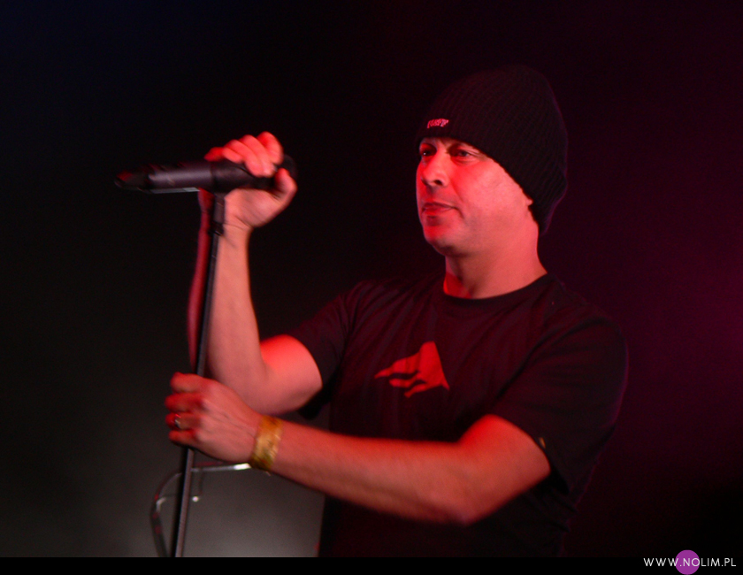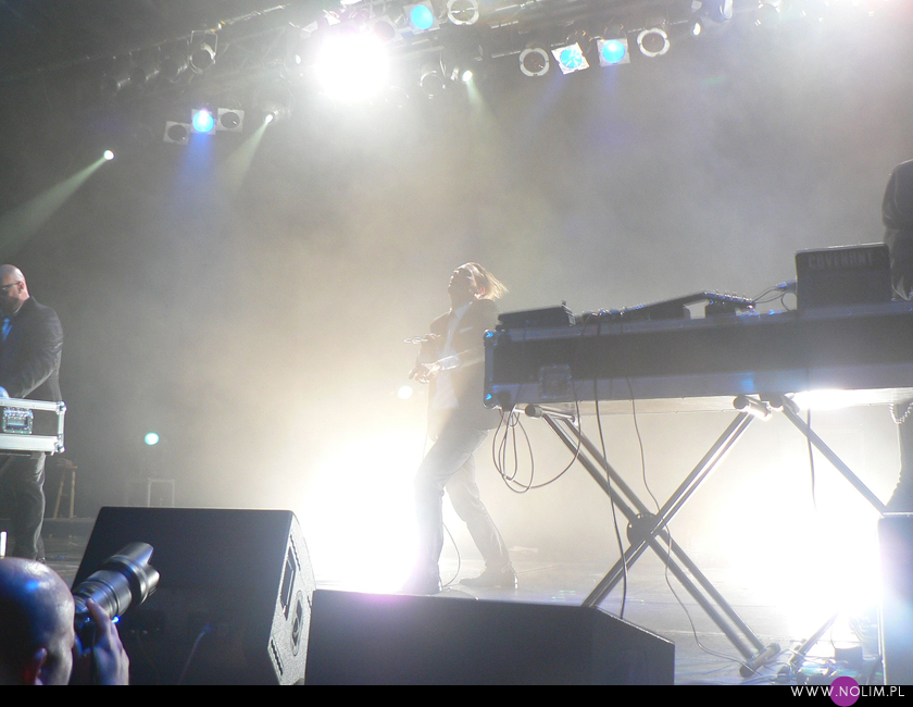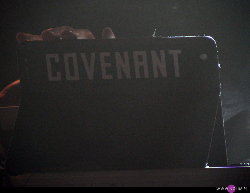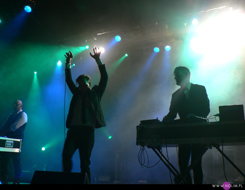 Poza tym nie wiem czy już jestem głucha czy stałam w kiepskim miejscu, ale miałam wrażenie, że nie słyszę wszystkich dźwięków wystarczająco czysto. Było dużo basów, ale zdecydowanie za mało wysokich tonów, przez co dźwięk sprawiał wrażenie przymulonego. I o ile na Meshu żywa gitara i perkusja jakoś ratowały sytuację, o tyle na Covenancie miałam wrażenie, że muzyka leci po prostu z jakichś słabej jakości empetrójek. Dosłownie. Momentami Danielowi Myerowi udawało się podkręcić coś tak, że słychać było więcej góry, ale niestety to były tylko krótkie chwile. A może to już taki „urok” Covenanta? Przecież gdy grali w Łodzi to i wtedy nie byłam zachwycona dźwiękiem. Ale wtedy zwalałam wszystko na ich alkoholową niedyspozycję. Tym razem byli (a przynajmniej wydawali się być) trzeźwi, a mimo to dźwięk pozostawiał wiele do życzenia. A szkoda, bo przy takim zestawie utworów było się czym popisać. Z setu wyleciały starocie w stylu „I am” i „Go Film”, było za to mnóstwo hitów – „Bullet” (z długaśnym intro), „Brave new world” (niestety chyba najbardziej płasko brzmiąca piosenka ze wszystkich), „20 Hz”, „Ritual noise”, „Like tears in rain” i oczywiście „Call the ships to port” oraz „We stand alone”. Z nowych utworów pojawiły się te najbardziej nośne – „The Kingdom come”, „Ignorance & Bliss”, „”Prime movers”, „Last dance”. Z uwagi na gościnny występ Daniela Myera nie zabrakło także „Lightbringera” (to jedna z lepiej brzmiących piosenek na koncercie). Na koniec panowie zaserwowali prawdziwą bombę, po której myślałam, że odpadnie mi ręka, bo trwała 17 minut! Madley, rozpoczynający się od „Happy man”, przechodzący w „Dead stars”, następnie w „The Men” i „Tension”. Ufff, dużo tego. Żałuję tylko, że pominęli „Leaving Babylon”.