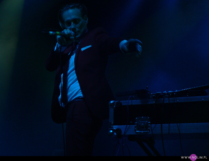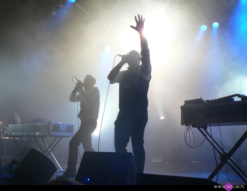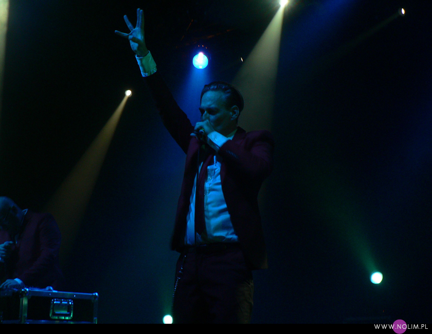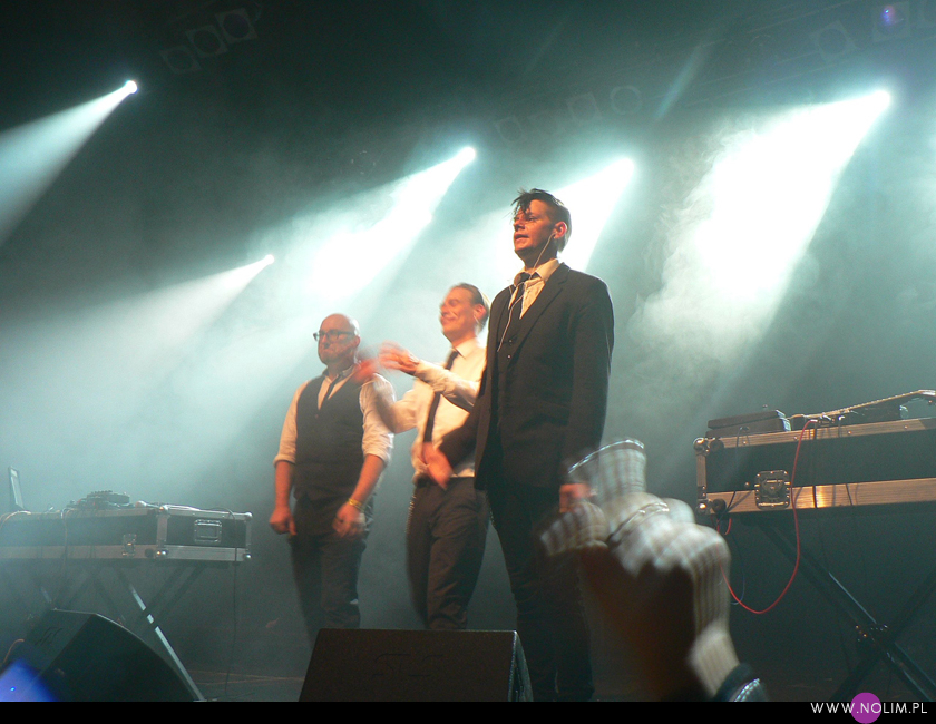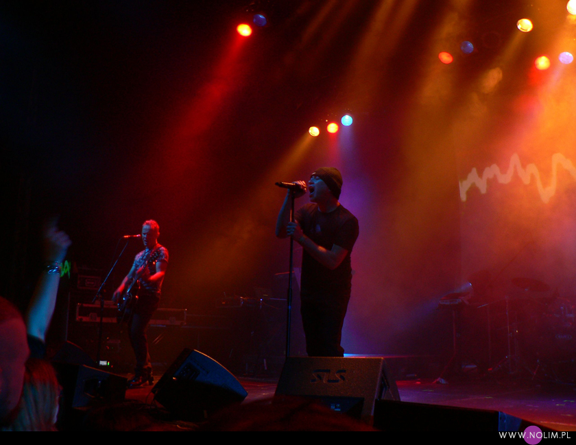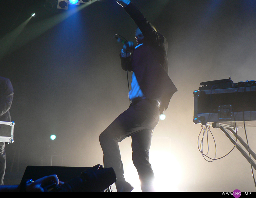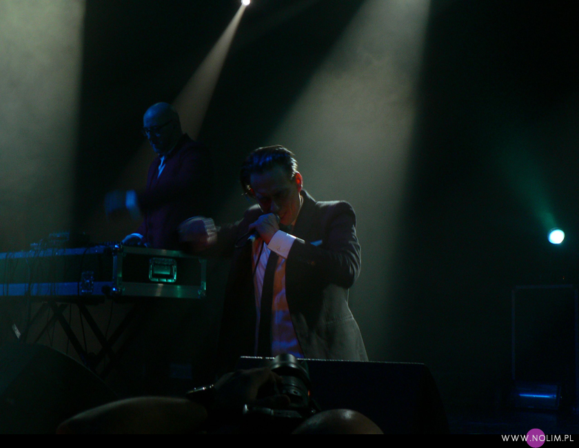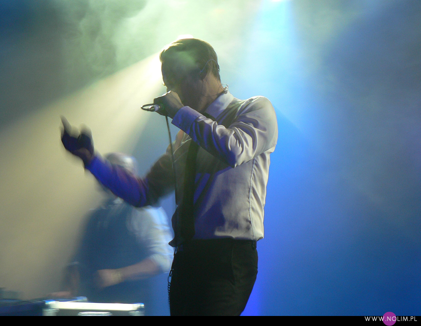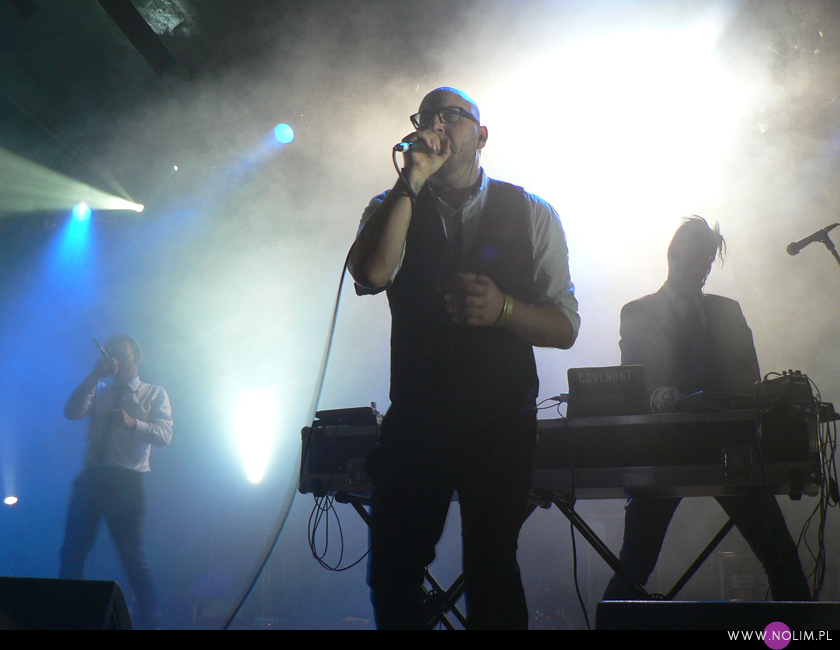 Mesha widziałam 2 razy i o ile za pierwszym razem byłam bardzo nakręcona, o tyle już po drugim koncercie wyrobiłam sobie o nich zdanie. Mesh to dla mnie jedna z największych gwiazd światka dark-synth-electro. Absolutny top, który powalił mnie od pierwszego przesłuchania. Ale tak jak lubię Mesha na płytach, tak koncertowo w ogóle do mnie nie przemawia. Nie wiem, nie umiem tego wytłumaczyć, ale po prostu się nudzę. Mark Hockings nie wydaje mi się specjalnie charyzmatycznym frontmanem, jakoś specjalnie dobrze się na niego nie patrzy. Po prostu chodzi sobie po scenie i tyle. I niestety coraz bardziej zaczyna przypominać z postury Ronana Harrisa. Na plus jest jednak to, że chyba stał się bardziej otwarty i częściej przemawia do publiczności (a może po prostu zawodzi mnie pamięć). Jeśli chodzi o set to było kilka niespodzianek. Wydaje mi się, że królowały nowe utwory (to znaczy z dwóch ostatnich płyt), z którymi nie czuję się specjalnie związana, ale wśród nich zabłysł klasyk „You didn’t want me” i totalne, absolutne zaskoczenie, którego nigdy nie spodziewałabym się usłyszeć na żywo – „I don’t think they know”. Za to ogromne brawa. Było też „People like me (with this gun)”, o które sama prosiłam (ale czemu zapomniałam o „I fall over”?). Niestety zabrakło „It scares me” (choć przynajmniej raz na żywo już to słyszałam) i „When the city breaths”, które ostatnio całkiem mi się spodobało. O, i „Friends like these”. Była za to absolutna premiera w postaci „Last one standing” – bez zachwytu, ale jest ok. Ale taki już jest ostatnio dla mnie Mesh – bez zachwytu…