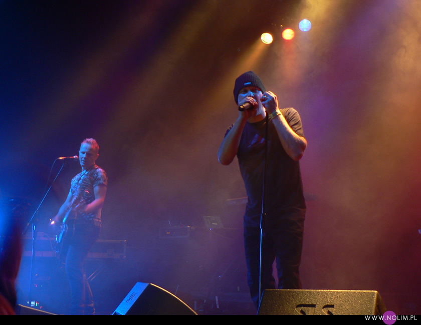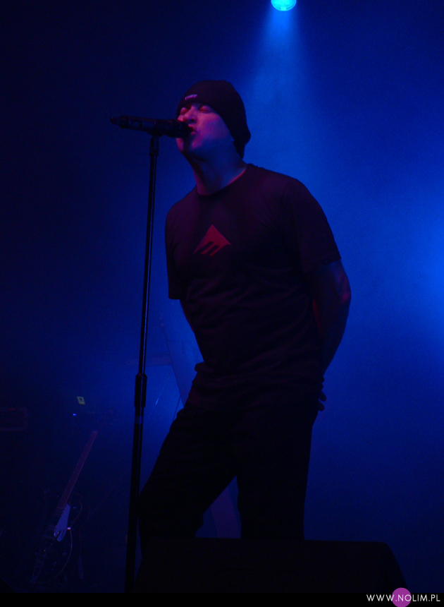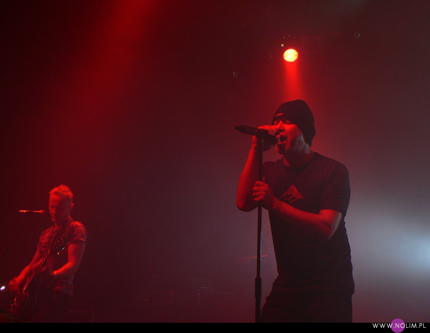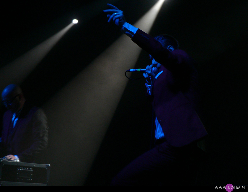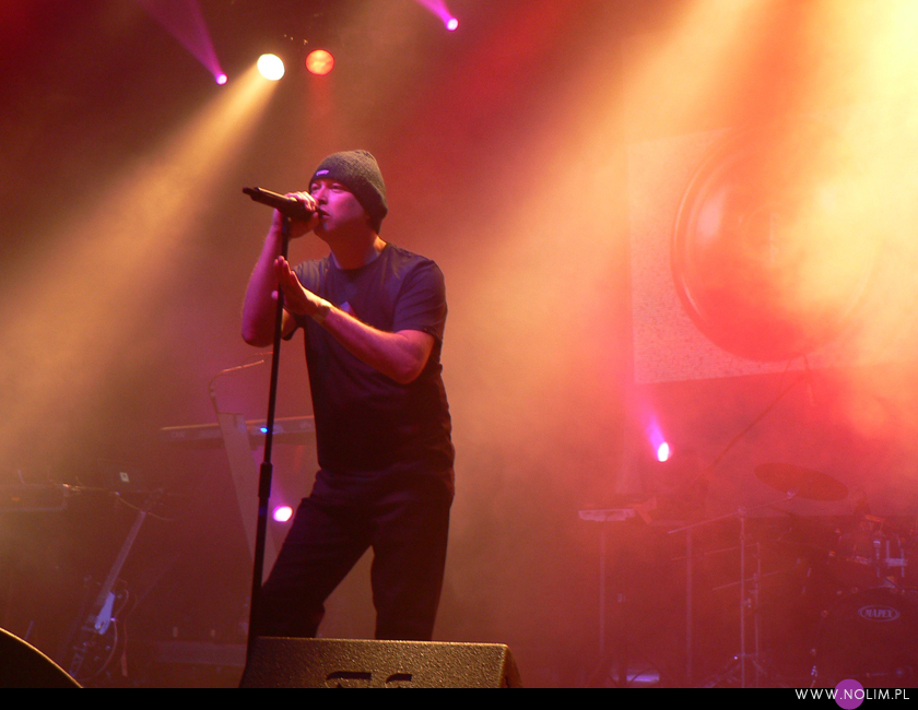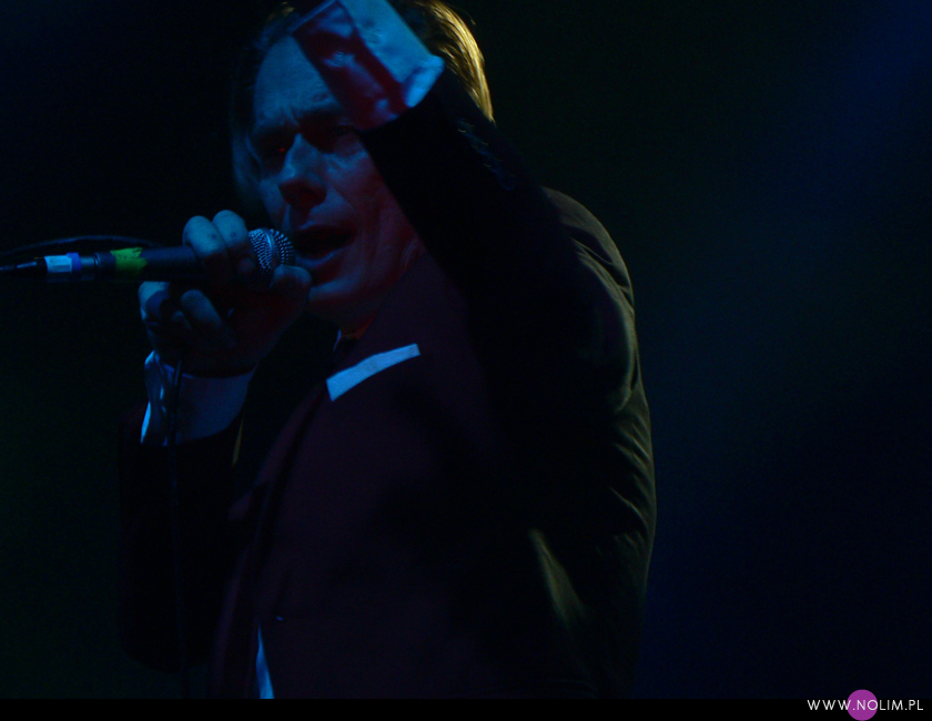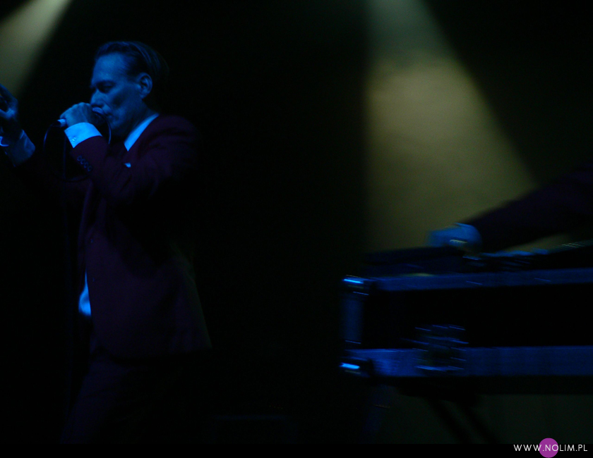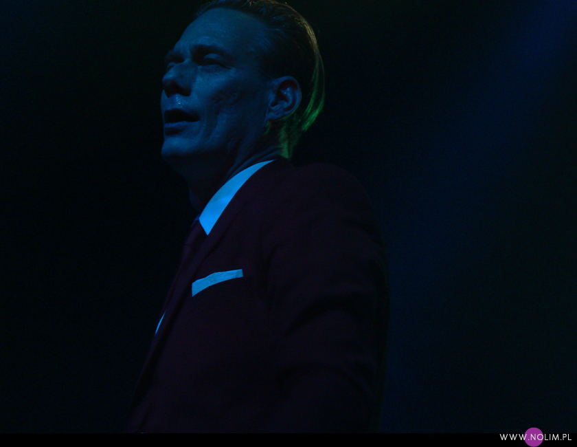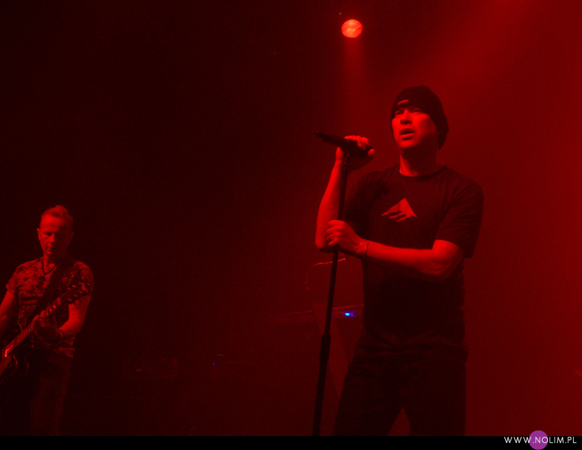 Mesha widziałam 2 razy i o ile za pierwszym razem byłam bardzo nakręcona, o tyle już po drugim koncercie wyrobiłam sobie o nich zdanie. Mesh to dla mnie jedna z największych gwiazd światka dark-synth-electro. Absolutny top, który powalił mnie od pierwszego przesłuchania. Ale tak jak lubię Mesha na płytach, tak koncertowo w ogóle do mnie nie przemawia. Nie wiem, nie umiem tego wytłumaczyć, ale po prostu się nudzę. Mark Hockings nie wydaje mi się specjalnie charyzmatycznym frontmanem, jakoś specjalnie dobrze się na niego nie patrzy. Po prostu chodzi sobie po scenie i tyle. I niestety coraz bardziej zaczyna przypominać z postury Ronana Harrisa. Na plus jest jednak to, że chyba stał się bardziej otwarty i częściej przemawia do publiczności (a może po prostu zawodzi mnie pamięć). Jeśli chodzi o set to było kilka niespodzianek. Wydaje mi się, że królowały nowe utwory (to znaczy z dwóch ostatnich płyt), z którymi nie czuję się specjalnie związana, ale wśród nich zabłysł klasyk „You didn’t want me” i totalne, absolutne zaskoczenie, którego nigdy nie spodziewałabym się usłyszeć na żywo – „I don’t think they know”. Za to ogromne brawa. Było też „People like me (with this gun)”, o które sama prosiłam (ale czemu zapomniałam o „I fall over”?). Niestety zabrakło „It scares me” (choć przynajmniej raz na żywo już to słyszałam) i „When the city breaths”, które ostatnio całkiem mi się spodobało. O, i „Friends like these”. Była za to absolutna premiera w postaci „Last one standing” – bez zachwytu, ale jest ok. Ale taki już jest ostatnio dla mnie Mesh – bez zachwytu…