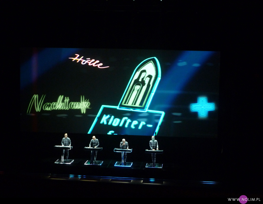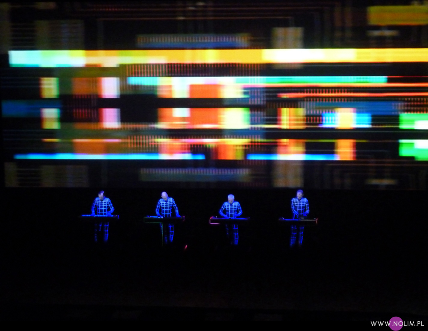 Na początku wszystkiego był Kraftwerk. Tego zespołu fanom muzyki elektronicznej nie trzeba przedstawiać. Ich wkład w rozwój muzyki opartej na brzmieniu syntezatorów jest nie do przecenienia. Kraftwerk pojawia się za każdym razem gdy mowa o synth-popie, electro, techno, new wave, industrialu, house, drum and bass, a nawet hip-hopie. Jest w każdej encyklopedii, w każdym opracowaniu naukowym, w każdym programie telewizyjnym traktującym o współczesnej muzyce. I chociaż przez lata ich mało piosenkowe dokonania jakoś specjalnie do mnie nie trafiały, to po zeszłorocznym koncercie Karla Bartosa podczas festiwalu Soundedit (do którego to przygotowywałam się słuchając nie tylko jego płyt solowych, ale i nagrań macierzystej kapeli) nabrałam ochoty na koncert ojców chrzestnych elektroniki. Tak się szczęśliwie złożyło, że długo nie musiałam czekać – już pół roku później do sprzedaży trafiły bilety na występ w Krakowie. Koncert odbył się w kameralnej i przepięknej (w całości wyłożonej drewnem) sali ICE Kraków Congress Centre. Mimo wcześniejszego straszenia zakazem wnoszenia toreb i plecaków (nie wiem czy to polskie zamiłowanie do zakazów czy też efekt niedawnych ataków terrorystycznych w Paryżu), na miejscu było przyjemnie, kulturalnie a przybyli na koncert traktowani byli po ludzku, a nie jak potencjalne zagrożenie.