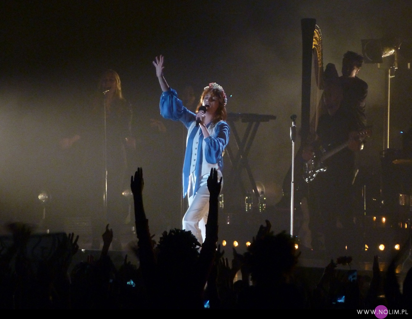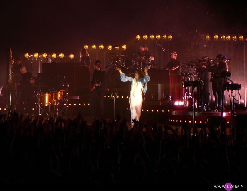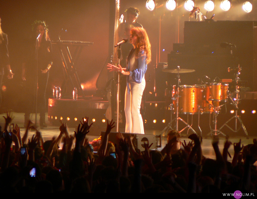 Florence + the Machine występowała w Polsce kilkukrotnie – i na Open’erze, i w warszawskiej Stodole, dopiero jednak Łódź przyciągnęła mnie na jej koncert (chyba z wiadomych względów). Pamiętam, że kiedy ta ognistowłosa Brytyjka pojawiła się na scenie muzycznej, zwróciła moją uwagę, choć później nie zasłuchiwałam się jakoś specjalnie w „Lungs”. Jednak jej drugi album, „Ceremonials” bardzo mi się podobał. Najnowsza płyta, „How big, how blue, how beautiful” na razie niezbyt do mnie trafiła i wydała mi się najsłabsza w całym dorobku artystki, aczkolwiek słuchałam jej w całości tylko kilka razy. Wiem też, że i recenzenci muzyczni raczej nie pieją z zachwytu. Muszę jednak przyznać, że set koncertowy ułożony był bardzo dobrze. Całość brzmiała spójnie, a jednocześnie różnorodnie. Utwory z nowej płyty bardzo zgrabnie wkomponowały się pomiędzy starsze piosenki i w takim towarzystwie zabrzmiały na tyle dobrze, że chyba dam jej jeszcze jedną szansę. Na koncercie królowały utwory mocne i dynamiczne, podczas których Florence mogła się wykrzyczeć, wyskakać i wybiegać, a na żywo jest prawdziwym wulkanem energii. Podczas „Rabbit heart (raise it up)” zbiegła ze sceny i ruszyła w kierunku sektorów. Nigdy nie widziałam, żeby wykonawca wypuścił się w publiczność aż tak daleko. Florence dobiegła aż do sektora P, za granicę golden circle (na oko pokonała 1/4 płyty). Niestety nie planowałam nagrywać tej piosenki (och, jak teraz tego żałuję), więc udało mi się uchwycić tylko fragment.