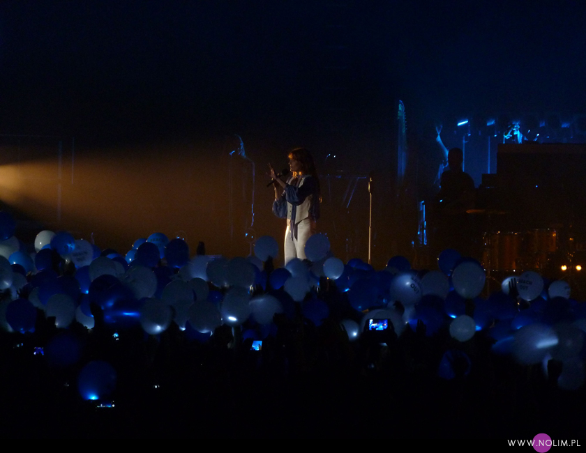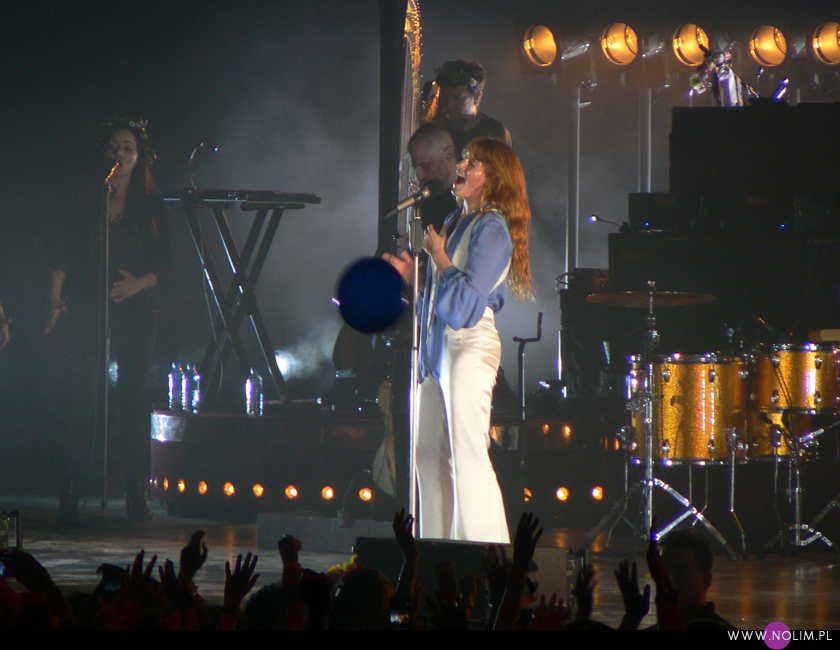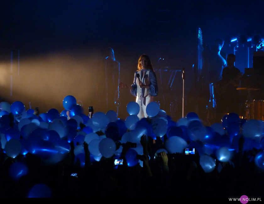 Warto jeszcze wspomnieć o bardzo ładnej akcji na koncercie. O ile nie jestem zwolenniczką różnego rodzaju fanowskich zrywów (ponieważ uważam, że biało-czerwona flaga na U2 jest nie do pobicia), o tyle naprawdę doceniam to, co przygotowali fani Florence, bo efekt był po prostu przepiękny. Podczas tytułowego utworu z ostatniej płyty wypuścili w powietrze setki białych i niebieskich balonów z malutkim światełkiem w środku. Nie wiem jak to było skonstruowane, ale wyglądało fantastycznie. Na wokalistce akcja też zrobiła wrażenie. „You’re so well organised” powiedziała z niekłamanym podziwem. Wiele razy dziękowała polskim fanom za wsparcie i powtarzała: „You’re the best”, dwa razy zeskoczyła do fosy i śpiewała przybijając piątki i wymieniając się z fanami na wianki. Bardzo dobrze oglądało się takie żywiołowe show. Nic dziwnego, że Florence tym razem wystąpiła w większym miejscu niż Stodoła – jej muzyka jest stworzona do dużych przestrzeni. Choć myślę, że pewnie najlepiej i tak brzmi pod gołym niebem.