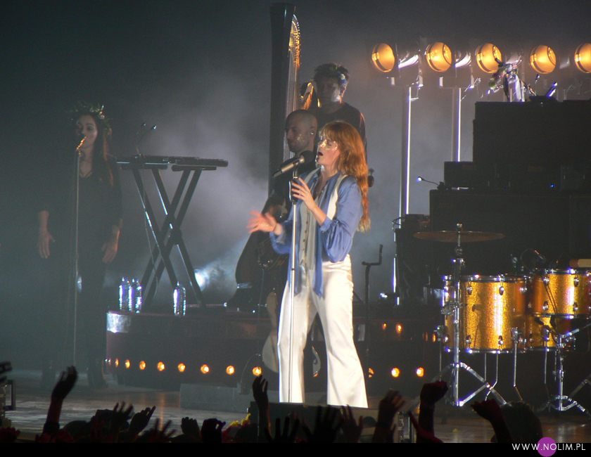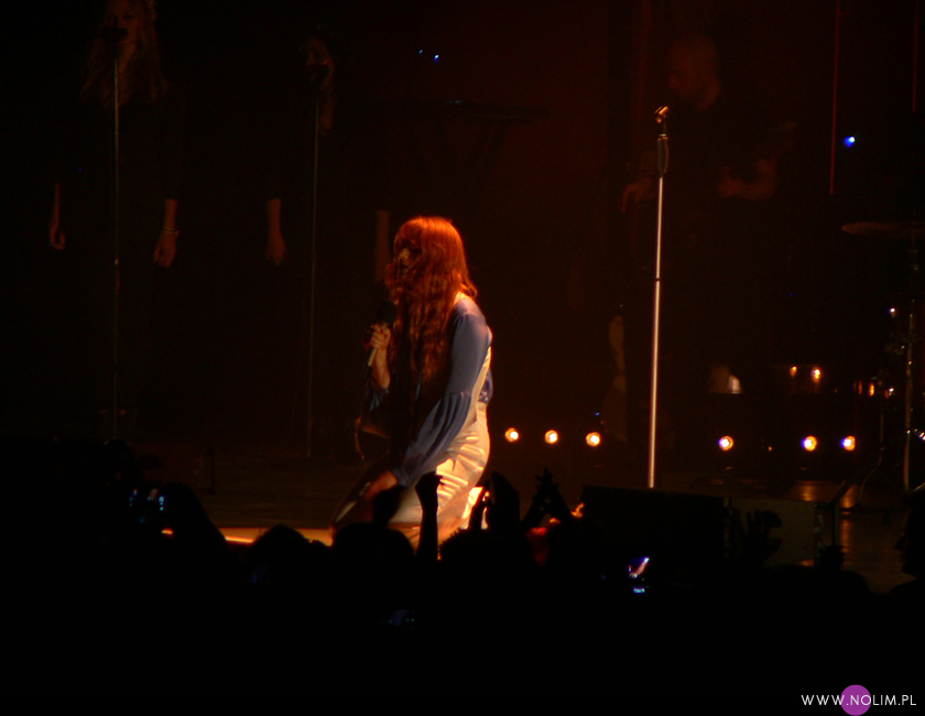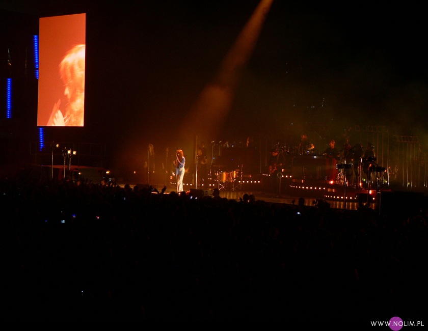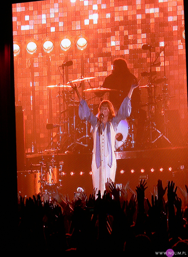 Z kolei podczas „Dog days are over”, kiedy publiczność zaczęła podrzucać do góry i wymachiwać różnymi częściami garderoby, Florence najpierw zdjęła kamizelkę a następnie bluzkę, zostając w samej bieliźnie. Takiego striptizu też jeszcze nie widziałam na żadnym koncercie. Charyzmy na pewno nie można jej odmówić. Gdy przed „Third eye” (które zamierzałam nakręcić) poprosiła o odłożenie komórek, wszystkie wyświetlacze zgasły. Gdy kazała publiczności wstać na „Rabbit heart” wszyscy z sektorów podnieśli się jak jeden mąż (pomyślałam wtedy, że szkoda, iż Peter Gabriel nie prosił o to samo przed „Sledgehammerem”).