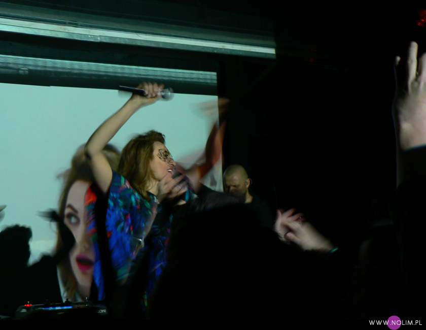 Koncert rozpoczął się od tak mocnych dźwięków, że publika aż podskoczyła. Po kilkuminutowym, zabójczo elektronicznym intro, zabrzmiały pierwsze dźwięki „Zostaw wiadomość” i na scenie pojawiła się odziana w srebrną kurteczkę Reni. Doskonały początek koncertu – piosenka otwierająca płytę to idealne powitanie, takie: „hej, miałam przez ostatnie kilka lat tysiące spraw na głowie, ale teraz przypomniałam sobie o swoich pasjach i czas, żeby przypomnieć o nich także wam”. I tak to właśnie wyglądało – Reni zaprezentowała owoce swojej kilkumiesięcznej pracy. Zagrała wszystkie kawałki z „BANG!” i prawda jest taka, że każdy jeden w wersji koncertowej prezentuje się znakomicie. Było nowocześnie, świeżo i bardzo elektronicznie. Czasem klubowo, czasem awangardowo, nie zabrakło jednak przebojowych momentów w postaci bardzo ejtisowego „Zombi świat” i zamykającego podstawowy set „Na skróty tęczą” (które live brzmi chyba nawet lepiej niż na płycie). Do tego idealnie pasujących do muzyki wizualizacji (rzeczy z gatunku takie proste, a jednak tak trudno na nie wpaść) i szalonych stylizacji. Oprócz wspomnianego srebrnego płaszczyka, podczas wykonania „Po kolana w mule” i „Y&Y” Reni zamieniła się w frędzlowatego Yeti (nie mam pojęcia jak inaczej można określić to coś – zdjęć nie mam, ale od czego jest internet), a na „Bejbi siter” przywdziała błękitny turban, okrągłe okulary i narzutę w kwiaty. Jednak najdziwniej – i to wcale nie za sprawą kreacji – zrobiło się podczas „Biletu wstępu”. Dziwnie, bo i sam utwór jest chyba najbardziej niezwykły w całej karierze Reni. Byłam szalenie ciekawa jak wykonuje się na żywo piosenkę, z taką ilością tekstu, który w dodatku w żaden sposób się nie rymuje i nie posiada żadnego rytmu. Da się to w ogóle zapamiętać? Odpowiedź okazała się diabelnie prosta – wspomaga się kartką. Genialny patent. Prawie jak Peter Heppner, tylko w bardziej wdzięcznej wersji, bo z kartką w ręce można się przecież przechadzać kołysać się i tańczyć. Po zaprezentowaniu wszystkich 11 nowych kawałków, na deser Reni zaserwowała „Jakby przez sen (nigdy ciebie nie zapomnę)” i chóralnie odśpiewane (przynajmniej na początku) „Kiedyś cię znajdę” w specjalnie przygotowanym remiksie. A potem zeszła ze sceny, by chwilę później pojawić się w sklepiku i niezmordowanie rozdawać autografy i pozować do zdjęć. Gdy przyszła moja kolej powiedziałam jej, że warto było czekać. Bo, kurczę, warto było. Świetny materiał, doskonale zaprezentowany na żywo i fantastycznie zaśpiewany – Reni jest w rewelacyjnej formie wokalnej. I nie tylko wokalnej – w każdej! Bo i fajnie się ruszała i naprawdę wyglądała o niebo lepiej niż 18 lat temu. Bardzo to wszystko było udane.