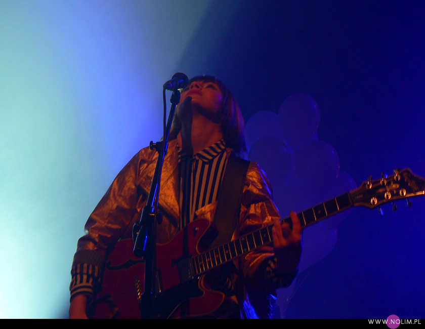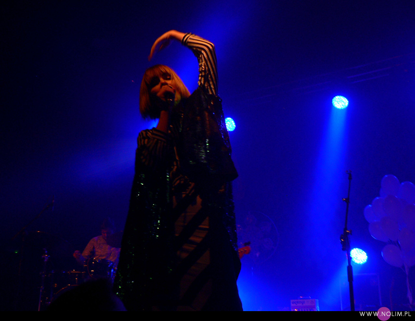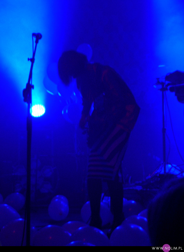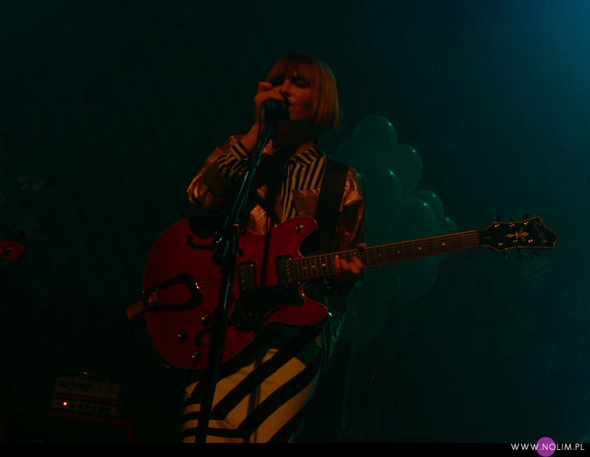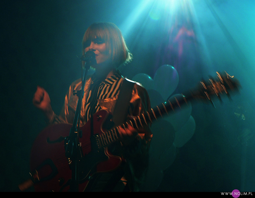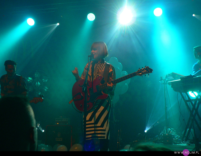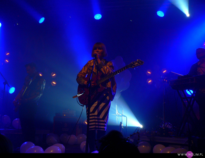 Pierwszy raz widziałam Julię Marcell na Open’erze 2009. Chociaż „widziałam” to za dużo powiedziane. Raczej tylko słyszałam, bo namiot był tak zapakowany, że dla mnie nie starczyło już miejsca. Odpuściłam wtedy mając jednak postanowienie, że wybiorę się kiedyś na jakiś jej klubowy koncert. Ta chwila nadeszła dopiero teraz, po 6 latach i dużą rolę odegrał tu jej najnowszy album „Proxy”. Przez ten czas właściwie nie słuchałam jej muzyki, zresztą na płytach aż tak mnie ona nie rusza. Jednak „Proxy” do mnie przemówiło. Na koncercie od razu poczułam to, co wtedy na Open’erze. Na żywo to wszystko zyskuje nową jakość, nagle staje się bardzo spójne i zrozumiałe. Pulsujący, zmysłowy bas, perkusja, klawisze i hipnotyzująca Julia. Tak jak nigdy nie przepadałam za kobietami z gitarą, tak Julii z gitarą jest bardzo do twarzy (jakaś tam Anna Calvi może się schować). Do tego świetne motywy wizualne, nawiązujące do nowej płyty: Pałac Kultury, żółte inicjały JM stylizowane na logo McDonald’s i balony. Wszystko wyglądało i brzmiało doskonale i było o wiele bardziej porywające niż na płytach. Każdy utwór brzmiał jak potencjalny hit. Nie łatwy, nie przewidywalny, ale trafiający prosto w punkt. Lubię taką nieszablonowość. Kiedyś bałam się trochę jej koncertów, ale na żywo jakimś cudem wszystko staje się bardziej przystępne. Julia to już prawdziwa gwiazda i kurczę, powinna podbijać Europę, bo naprawdę jest świetna w tym, co robi.