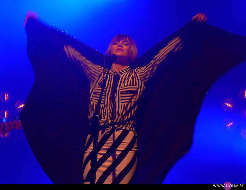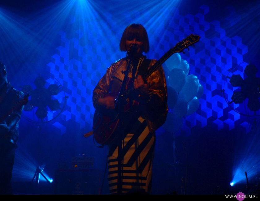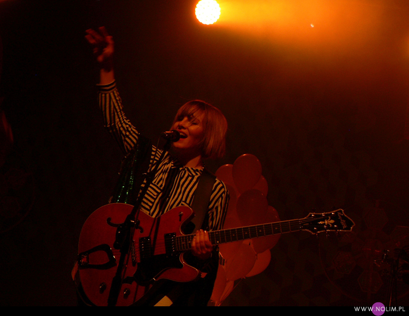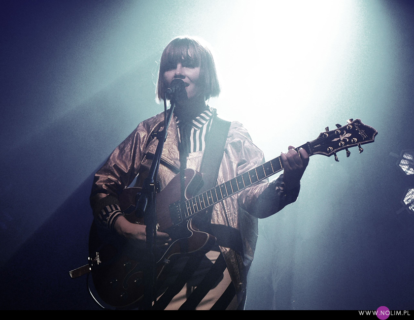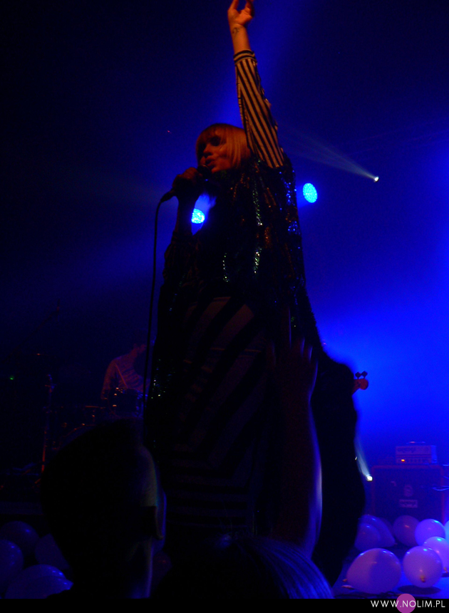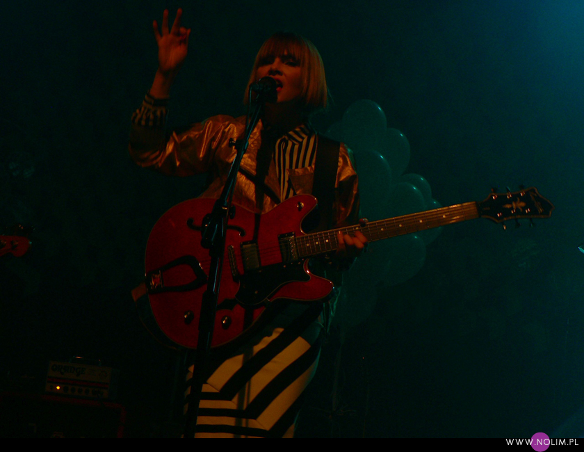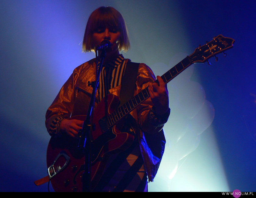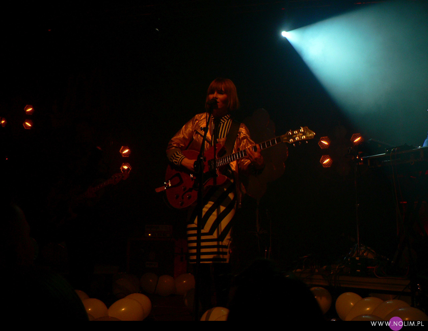 Pierwszy raz widziałam Julię Marcell na Open’erze 2009. Chociaż „widziałam” to za dużo powiedziane. Raczej tylko słyszałam, bo namiot był tak zapakowany, że dla mnie nie starczyło już miejsca. Odpuściłam wtedy mając jednak postanowienie, że wybiorę się kiedyś na jakiś jej klubowy koncert. Ta chwila nadeszła dopiero teraz, po 6 latach i dużą rolę odegrał tu jej najnowszy album „Proxy”. Przez ten czas właściwie nie słuchałam jej muzyki, zresztą na płytach aż tak mnie ona nie rusza. Jednak „Proxy” do mnie przemówiło. Na koncercie od razu poczułam to, co wtedy na Open’erze. Na żywo to wszystko zyskuje nową jakość, nagle staje się bardzo spójne i zrozumiałe. Pulsujący, zmysłowy bas, perkusja, klawisze i hipnotyzująca Julia. Tak jak nigdy nie przepadałam za kobietami z gitarą, tak Julii z gitarą jest bardzo do twarzy (jakaś tam Anna Calvi może się schować). Do tego świetne motywy wizualne, nawiązujące do nowej płyty: Pałac Kultury, żółte inicjały JM stylizowane na logo McDonald’s i balony. Wszystko wyglądało i brzmiało doskonale i było o wiele bardziej porywające niż na płytach. Każdy utwór brzmiał jak potencjalny hit. Nie łatwy, nie przewidywalny, ale trafiający prosto w punkt. Lubię taką nieszablonowość. Kiedyś bałam się trochę jej koncertów, ale na żywo jakimś cudem wszystko staje się bardziej przystępne. Julia to już prawdziwa gwiazda i kurczę, powinna podbijać Europę, bo naprawdę jest świetna w tym, co robi.