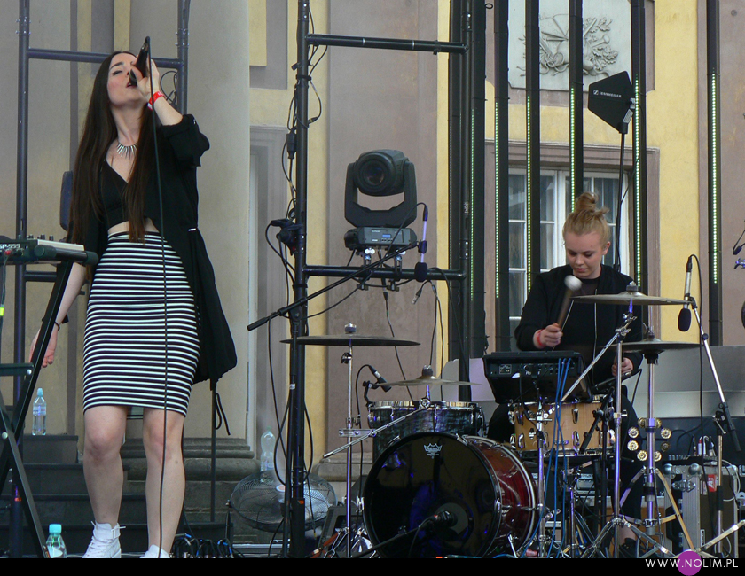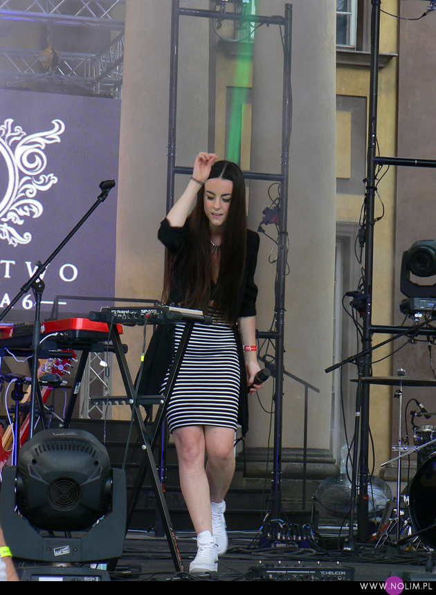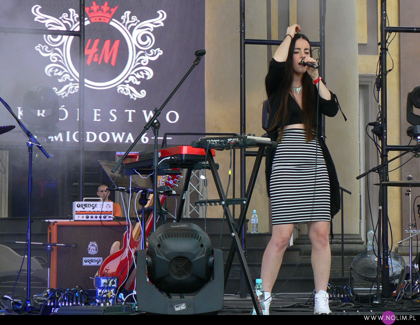 Ostatnia odsłona Królestwa H&M była tą, od której wszystko się zaczęło i na którą najbardziej czekałam. I wcale nie chodziło o główną gwiazdę wieczoru – Julię Marcell. Widziałam ją kilka miesięcy temu w łódzkiej Wytwórni i choć było bardzo przyjemnie, to nie ona tym razem przyciągnęła mnie do Pałacu Branickich. Tym razem to był support. Dziewczyna, o której w mediach jest coraz głośniej, coraz więcej się o niej pisze, daje coraz więcej koncertów a jej singiel hula w Chilli Zet. Co niestety nie przełożyło się na frekwencję, która była żenująco niska. O Agi Brine, bo taki przyjęła pseudonim, po raz pierwszy usłyszałam lata temu, a teraz zupełnie przez przypadek dowiedziałam się, że tamta dziewczyna to ona. Ot co, facebook i znajomi znajomych. Skoro więc znam ludzi, którzy ją znają, zaczęłam ją obserwować i jej kibicować. No i zdecydowanie jest warta tego, by trzymać za nią kciuki. Ma piękny głos – na żywo robi o wiele większe wrażenie niż na nagraniach, a utwory ma wymagające, prawie non stop śpiewa. Śpiewa dużo, śpiewa wiele słów w różny sposób, ale się nie popisuje. W jej oficjalnej biografii mowa jest o Aaliyah, jako jednej z głównych inspiracji, i to naprawdę słychać. Głównie właśnie w głosie. Z jednej strony delikatny, z drugiej – ma moc i duże możliwości. Kiedy słuchałam jej utworów przyszło mi do głowy, że jest w tym wszystkim bardzo prawdziwa. Wszystko się tam zgadza- sposób śpiewania, muzyka, ruchy, wygląd. Ona po prostu robi to, co kocha i co jej w duszy gra, nie oglądając na innych, a to jest według mnie droga do sukcesu. Robić swoje. Występ rozpoczęła od znanych utworów, które śmigają na YouTube już od jakiegoś czasu – na pierwszy ogień poszło „Tik tok”, a zaraz po nim mój ulubiony (ze wszystkich czterech kawałków jakie znam) „I want you back”. Choć może po dzisiejszym dniu to się zmieni, bo po dwukrotnym odsłuchu „CHeat” na żywo (tak tak, ludzi mało ale bis był) muszę przyznać, że ten utwór ma zadatki na prawdziwy hit. Do tego Agi dołożyła dynamiczny kawałek do tańca, balladę, jeszcze ze dwa czy trzy utwory pośrednie a set zamknęła singlowym „Going to hell” w zmienionej, bardziej tanecznej wersji, która zdecydowanie bardziej przypadła mi do gustu niż oryginał (do tego stopnia, że nie mogłam się powstrzymać i ją nakręciłam, choć początek dawno już minął). Wśród osób stojących obok mnie słyszałam: „świetny koncert”. Było bardzo dobrze. Na pewno Agi Brine ma zadatki na to, by dołączyć do czołówki polskich wykonawców alternatywnych i mam nadzieję, że będzie dawała coraz więcej solowych koncertów.