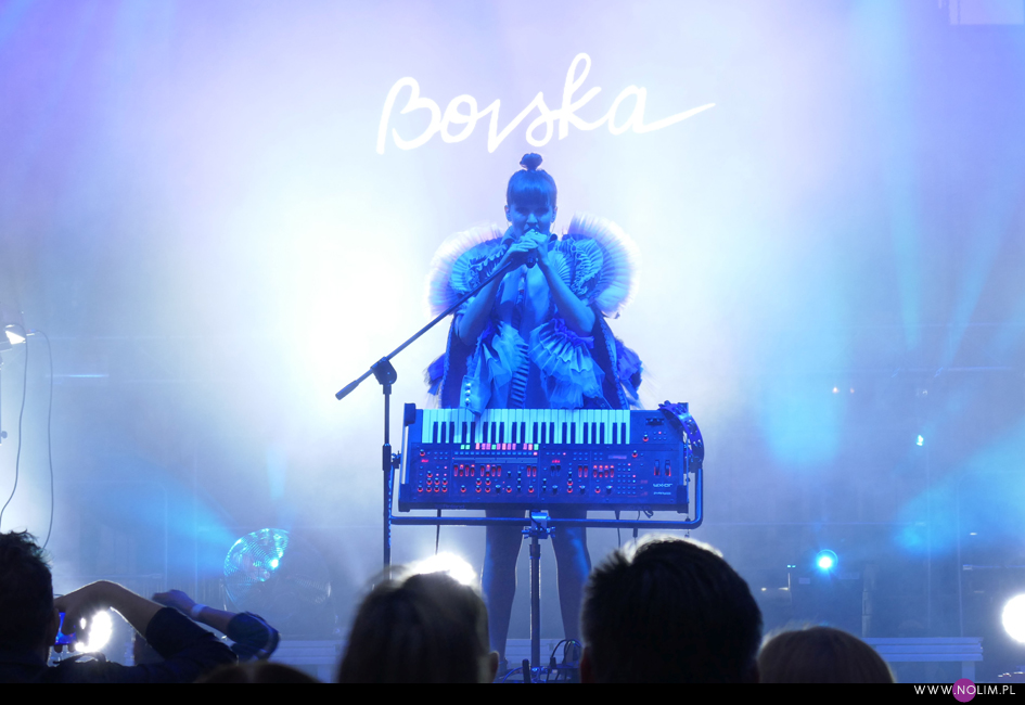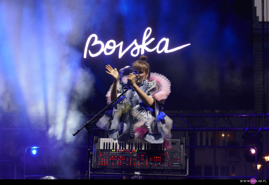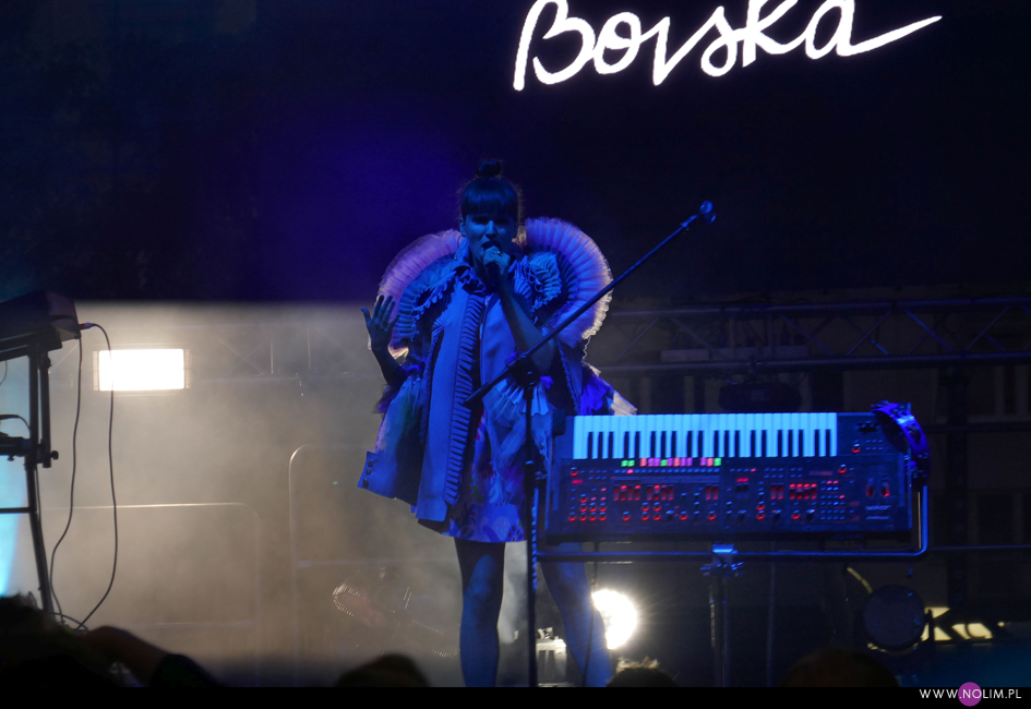 Bovska wystąpiła w roli gwiazdy wieczoru. Słońce już wtedy zeszło, więc doskonale było widać telebim z jej białym logo w centrum sceny. Wokalistka pojawiła się spowita we mgle, światła przygasły, widać było tylko kontur jej sylwetki odzianej w wymyślny płaszczyk. Koncert rozkręcał się powoli – lubię takie stopniowanie napięcia. Bovska wie jak przyciągnąć uwagę. Zagrała przede wszystkim utwory z najnowszej płyty, wybierając te najbardziej przebojowe. Do tego zadbała o różnorodność. Choć wokalnie radzi sobie nie tak dobrze jak Iza, a już na pewno daleko jej do Natalii Przybysz, to dobrze wie, jak zrobić show. Od strony wizualnej było bezbłędnie (zresztą trudno się dziwić absolwentce ASP). Kolorowa sukienka, wspomniany płaszczyk, błyszczące buty, do tego syntezator postawiony do góry nogami – frontem do publiczności – i dopełniające efektu kolorowe światła. Było na co popatrzeć i było czego posłuchać. To był na pewno najciekawszy koncert ze wszystkich i bardzo pozytywnie mnie zaskoczył.