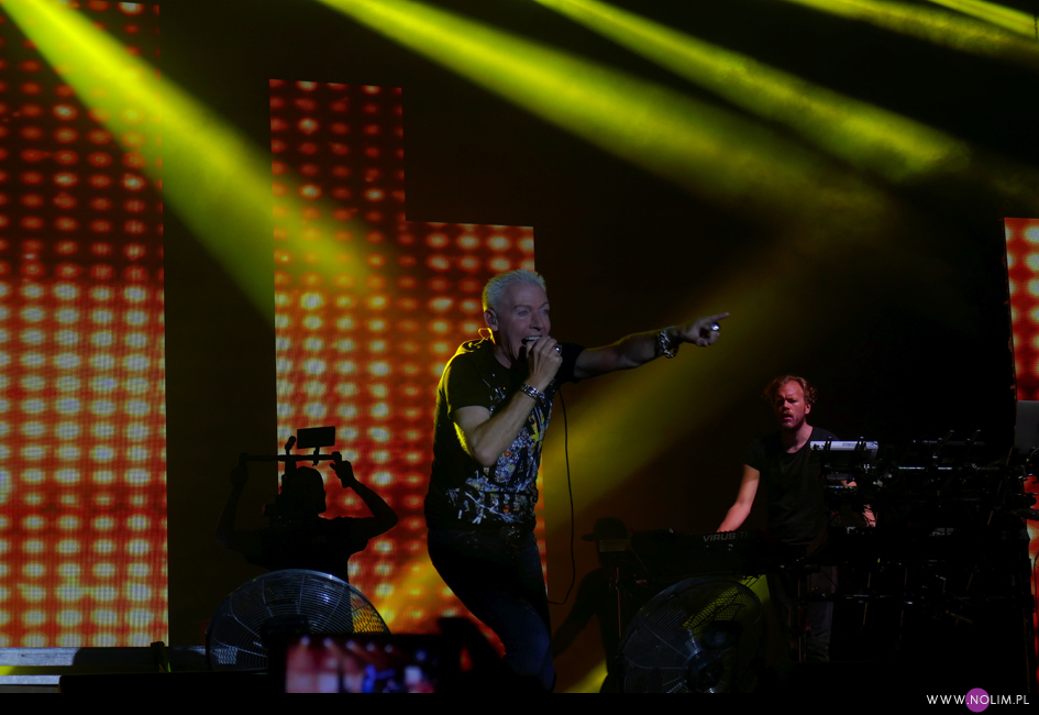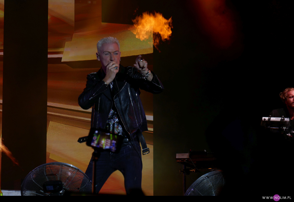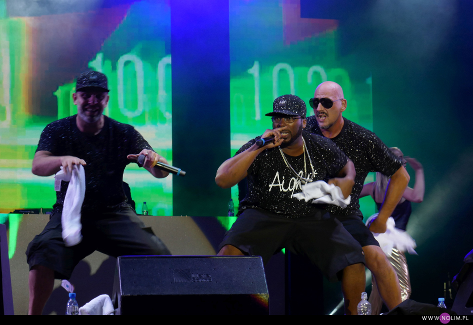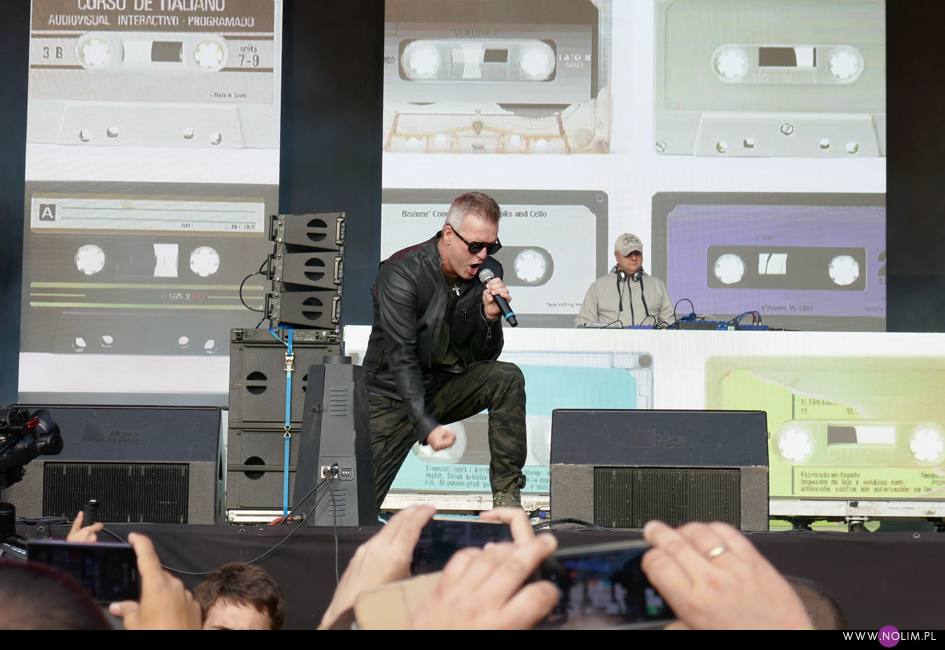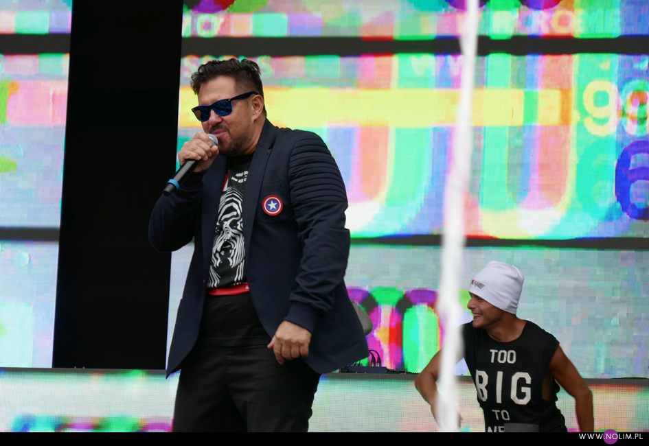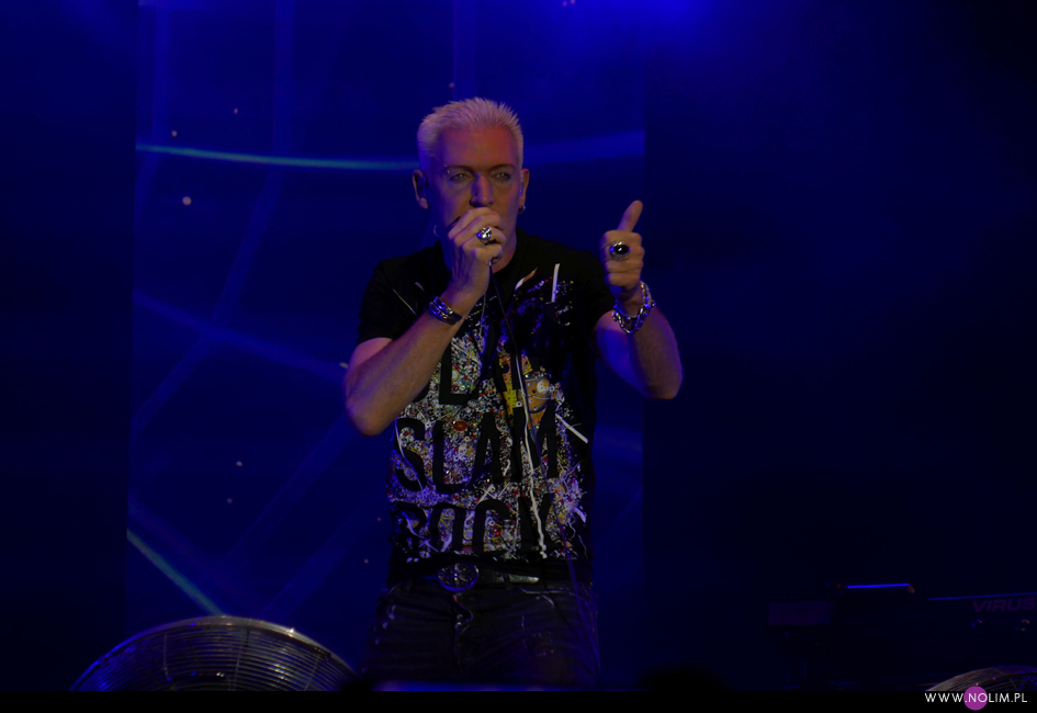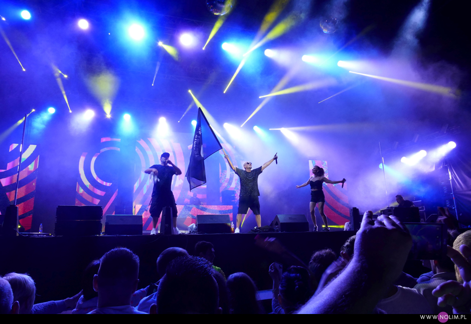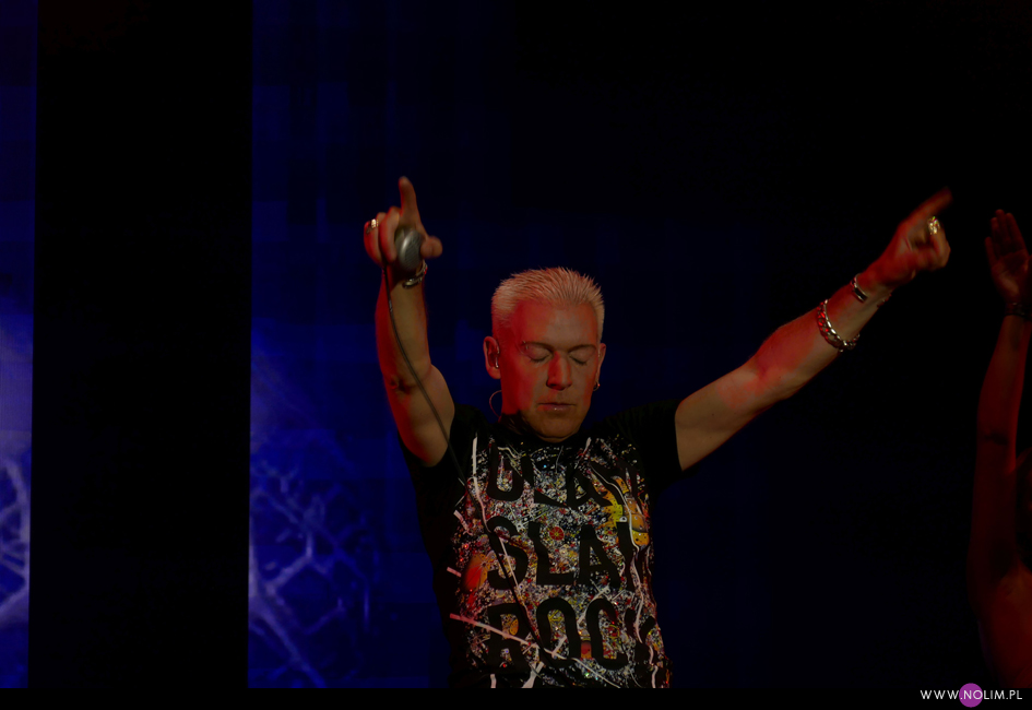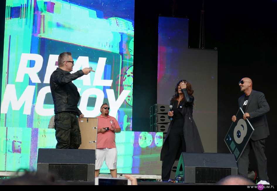 Zaraz po Maxx na scenie pojawił się (obecnie) duet Real McCoy. I w tym przypadku próżno było szukać na scenie Patricii Petersen, Vanessy Mason czy Lisy Cork, a więc najbardziej znanych twarzy zespołu. Obecnie ich miejsce zajmuje Karin Kasar czyli wokalistka, której głos faktycznie można usłyszeć w największym hicie zespołu, „Another night”. Tak więc Real McCoy okazał się kolejnym eurodance’owym spadkobiercą praktyk Milli Vanilli. I ten występ zaczął się od problemów technicznych, tym razem z niedziałającym mikrofonem podczas „Pump up the jam”, który według słów O-Jay’a nigdy wcześniej nie był wykonywany live. Przynajmniej dzięki temu było widać, że chociaż część wokali wykonywana jest na żywo. Olaf okazał się bardzo rozmownym gościem, dużo zagadywał do publiczności, żartował z ziewającego faceta i ze swojego wieku, a w pewnym momencie zniknął zupełnie ze sceny, by po chwili pojawić się wśród publiczności. I to nie w fosie, tylko naprawdę między ludźmi. Dosłownie był na wyciągnięcie ręki. Chociaż wcześniej nie byłam jakoś specjalnie entuzjastycznie nastawiona do wiecznie uśmiechniętej Karin, która swoją drogą sądząc po filmikach na YouTube, też śpiewa głównie z playbacku, to jednak na koncercie bawiłam się wyśmienicie. Twórczość Real McCoy znam dość dobrze, więc z uśmiechem na ustach wyśpiewywałam „Automatic lover”, „Love and devotion”, „Come And Get Your Love” a zwłaszcza „Run away”. Tu nastąpił chyba efekt „Walking in my shoes” (odsyłam do moich wspomnień z koncertu Depeche Mode w Warszawie w 2013r.) – nigdy jakoś bardzo nie lubiłam tej piosenki, a na żywo darłam się na niej i tańczyłam jak głupia. To był bardzo, bardzo fajny koncert, wesoły i pozytywny. Wróciła masa wspomnień.