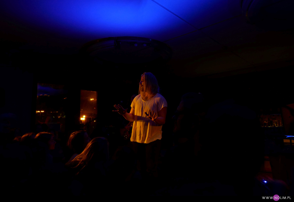 I taki też właśnie był ten koncert – na luzie. Spodziewałam się, że będzie intymnie, nastrojowo, może będą jakieś świeczki, może wszyscy będą siedzieć, a artysta na scenie będzie snuł swoje opowieści, jakby nikogo nie było dookoła. A było nieco inaczej. W jednym z wywiadów przeczytałam, że dając solowe koncerty Hogni czuje się jakby grał dla znajomych w swoim salonie. I to chyba najlepiej opisuje atmosferę, jaką panowała w Cafe Kulturalna. Czuć było bliskość. On śpiewał dla nas i widać było, że sprawia mu to wielką przyjemność. Bawił się muzyką, bawił się swoim głosem, bawił się z nami. Na luzie, z uśmiechem, nie przejmując się, gdy włosy wkręciły mu się w uchwyt mikrofonu („It happens all the time”, skwitował). Śpiewał, ale i mówił do nas, a podczas jednego z utworów po islandzku, tłumaczył na angielski kolejne linijki tekstu.Czasem zupełnie zanurzał się w swoim świecie, a czasem przybijał z nami piątki. Czasami odpływał w swoich wokalnych popisach, totalnie mnie przy tym hipnotyzując, a czasami podrygiwał do elektronicznych dźwięków serwowanych przez Presidenta Bongo. Tak, tak, to ten pan, który kiedyś był w Gus Gus i który ściągnął do zespołu Högniego. Dzięki niemu koncert zyskał niesamowitą, elektroniczną oprawę. Był więc i szum wiatru, i burza które od razu nasuwał skojarzenia z dzikim i surowym krajobrazem Islandii, ale pojawił się też bit. Nie było więc wcale aż tak spokojnie, jak się spodziewałam. Mało tego, dało się potańczyć, a zachęcił do tego sam Högni schodząc ze sceny i śpiewając wśród nas, a później także tańcząc na kontuarze, który znajdował się tuż za sceną. Wtedy to już w ogóle zrobiło się jak na domówce u wyluzowanego gospodarza. I nawet w ogóle mi nie przeszkadzało, że bardzo słabo znałam materiał. Chociaż widziałam Högniego po raz drugi, dopiero teraz mogłam w pełni podziwiać jego niesamowity głos. Te wszystkie improwizacje, wokalizy, miękkość gdy śpiewał wysoko i chropowatość gdy śpiewał agresywnie. I do tego ta moc. Czasami odsuwał mikrofon bardzo daleko, a w kilku momentach w ogóle śpiewał bez niego. Słuchałam go jak urzeczona, nie mogąc oderwać od niego wzroku. Czuję, że byłam na koncercie prawdziwego artysty, który potrafi tworzyć wielką sztukę, a jednocześnie jest bardzo blisko zwykłych ludzi. I koniec końców jestem oczywiście bardzo zadowolona z tego wieczoru. Warto było.