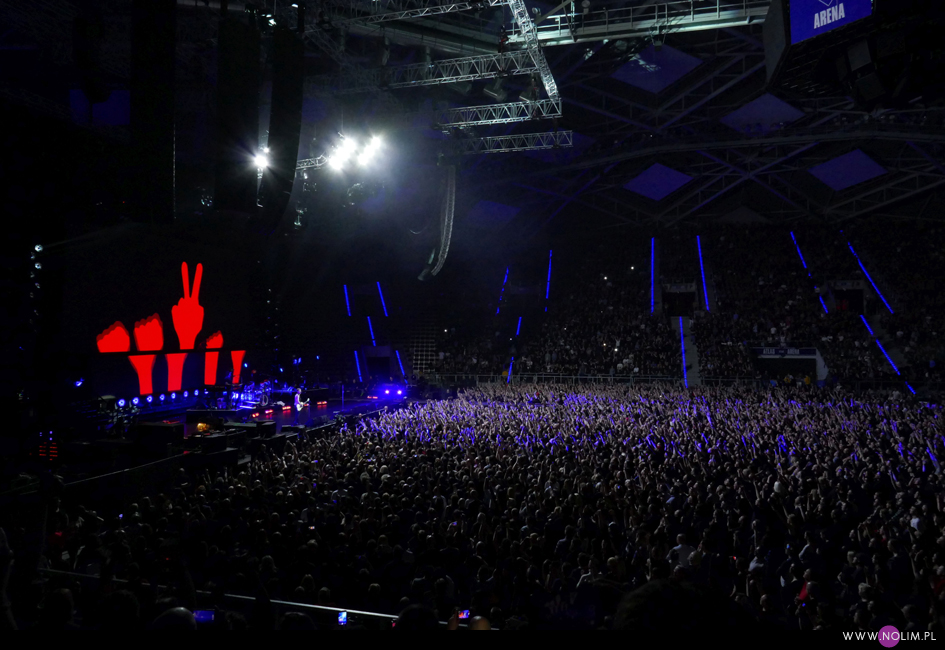 Za to szukając mojego miejsca dwukrotnie zrobiłam z siebie idiotkę. Ale naprawdę w Atlas Arenie zawsze mam problem żeby się połapać w sektorach, a potem jeszcze te rzędy numerowane cyframi rzymskimi… Więc najpierw ze 20 minut przesiedziałam w nieswoim sektorze (fakt, że się zdziwiłam, że jestem aż tak z boku), a potem chyba z tego oszołomienia pomyliłam XI z IX. Ostatecznie mój właściwy sektor, nawet jeśli był trochę dalej od sceny, podobał mi się bardziej. Ogólnie byłam mile zaskoczona odległością – wydawało mi się, że będę wyżej. I chociaż moje miejsce było porównywalne z tym z 2010 roku, to wydaje mi się, że wtedy byłam dalej od sceny.