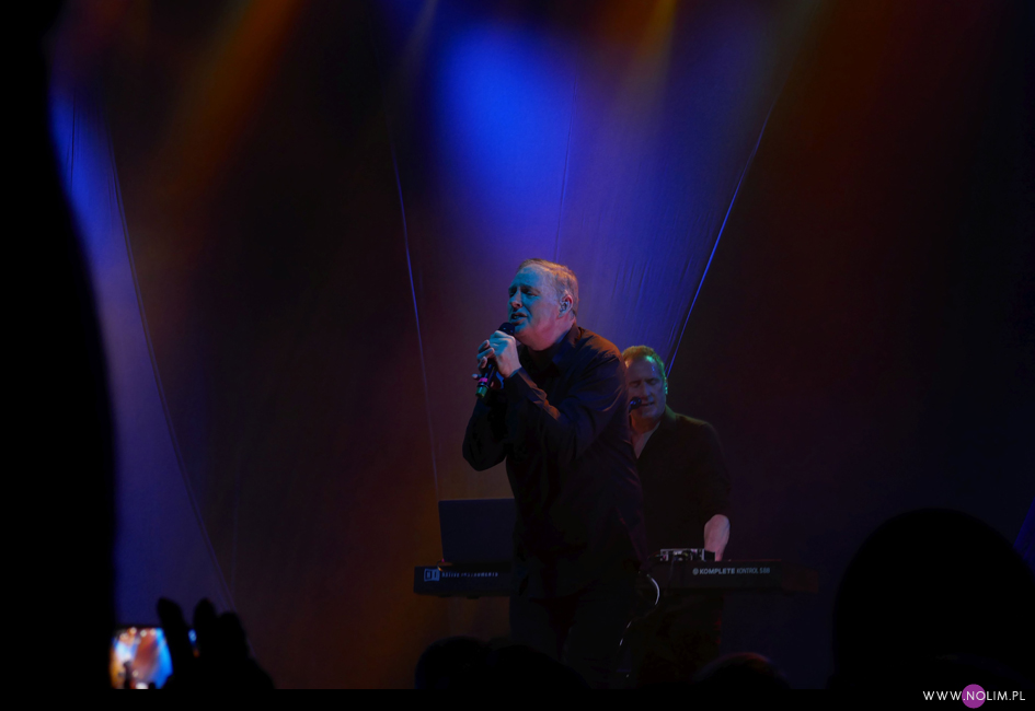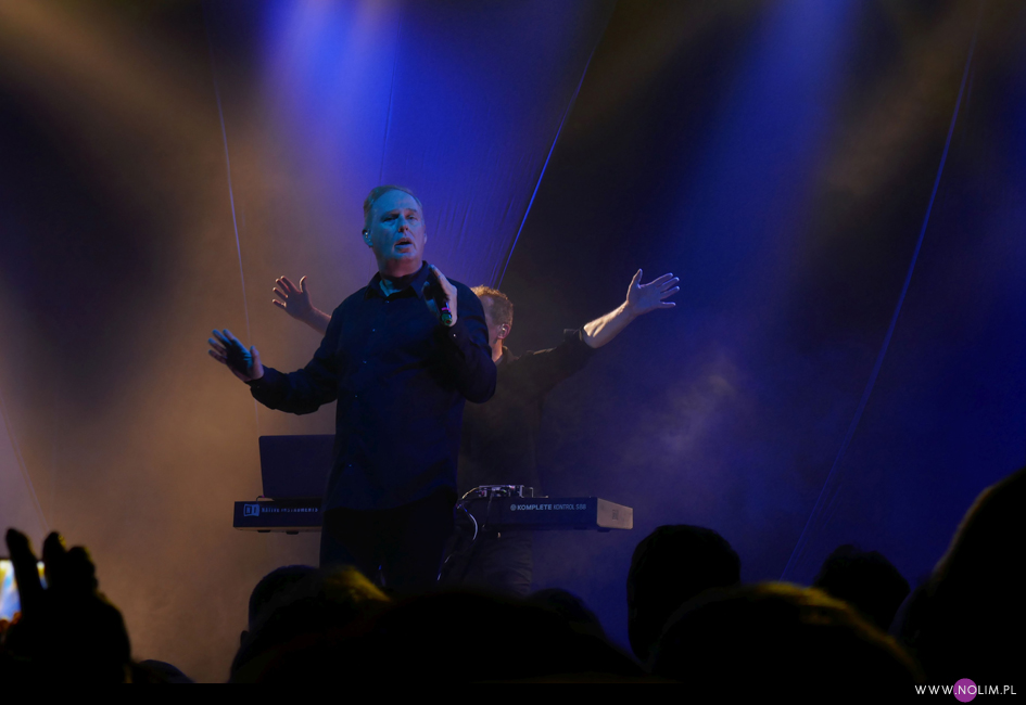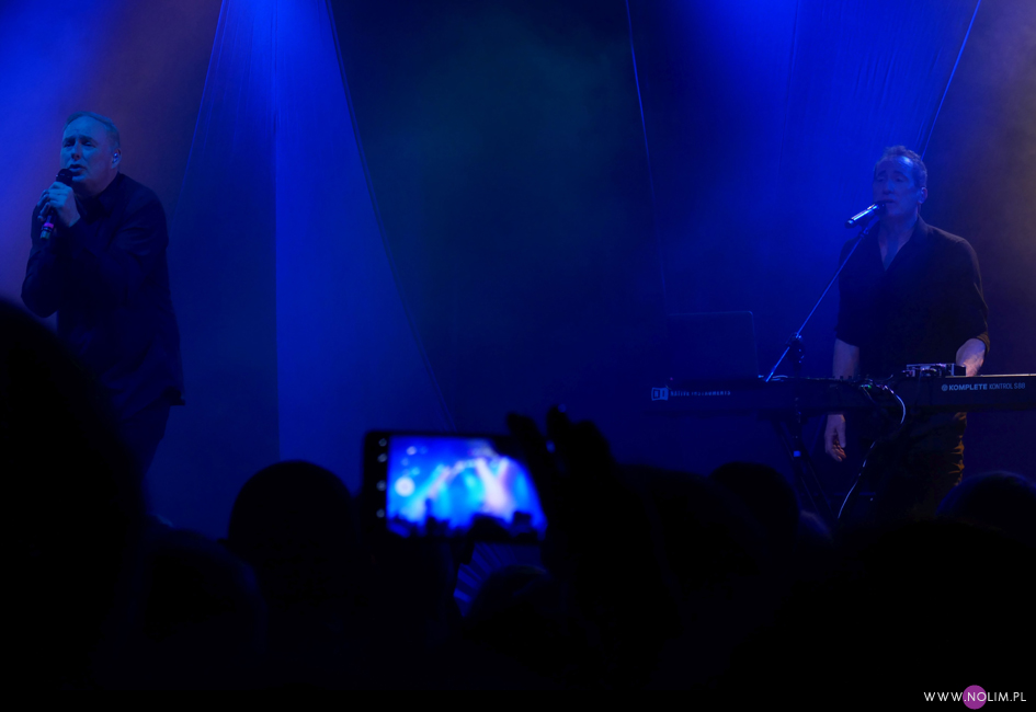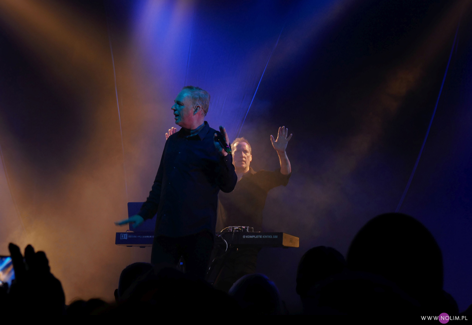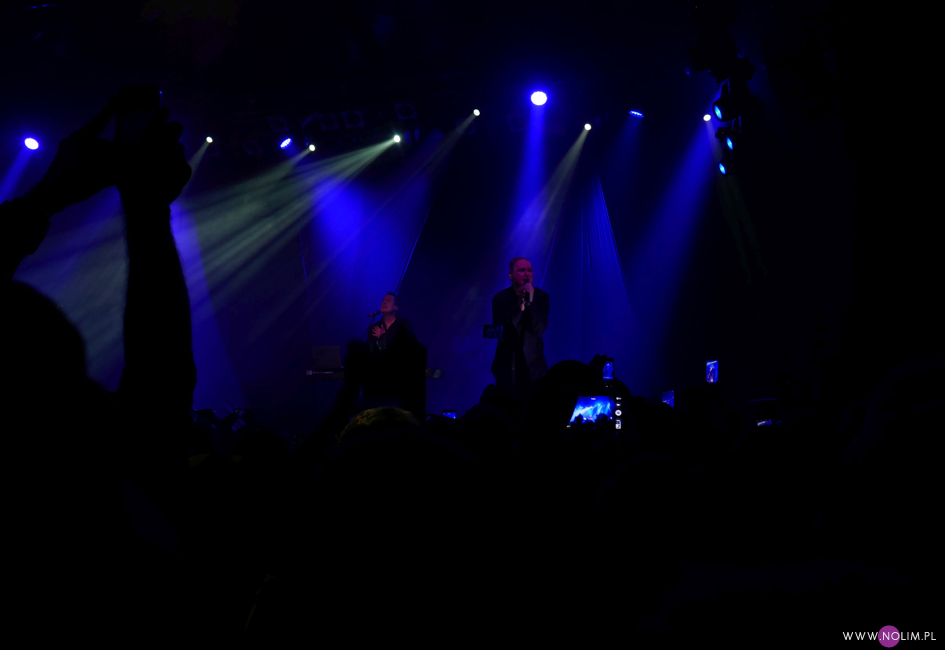 OMD to zespół, którego nigdy nie słuchałam, a który jednocześnie zawsze chętnie oglądam na żywo. O ile brzmienie ich ostatnich płyt bardzo mi się podoba, o tyle melodie są dla mnie zbyt wesołe, a czasami wręcz zbyt cukierkowe. Za to występy live to czysta poezja. Ci dwaj skromni panowie naprawdę potrafią porwać tłumy. Energia i charyzma Andy’ego McCluskey jest niesamowita. I chociaż ze wszystkich trzech koncertów OMD, na których byłam, na tym bawiłam się najgorzej, to i tak obiektywnie patrząc to był bardzo dobry występ. Zupełnie nie spodziewałam się, że cały klub będzie wypchany po brzegi. Wybrałam się totalnie na luzie, żeby być godzinę przed występem i niestety wylądowałam daleko od sceny. Nie miałam szans na żadne dobre zdjęcia, a kręcenie czegokolwiek było nieustającą walką z komórkami, rękoma, gubiącą się ostrością i światłem. Za bardzo absorbująca była ta walka, przez co trochę koncertu mi uciekło. Zdecydowanie nie jestem zadowolona z tego powodu. No ale przecież nie dla zdjęć czy filmików chodzi się na koncerty, prawda? Przede wszystkim liczą się emocje związane z obcowaniem z muzyką (i muzykami :-)) na żywo. A na żywo OMD brzmią bezbłędnie. I jeśli coś wydaje mi się zbyt słodkie czy miłe na płytach, to w wersji live jest po prostu porywające. Większość setu stanowiły żywe utwory, podczas których Andy zachęcał do klaskania, podskoków i tańca – „Isotype”, „Tesla Girls”, „History od modern, „Souvenir”, „So in love”, „Locomotion”, na czele z „Enola gay” i „Electricity” naprawdę sprawiły, że wszyscy uśmiechali się od ucha do ucha. Nawet „Forever (live and die) zabrzmiało nad wyraz dynamicznie. Setlista nie zaskoczyła – była identyczna jak 2 dni wcześniej w Kopenhadze, ale dla mnie to dobrze, bo słabo znam ich dyskografię. Dla mnie numerem jeden było oczywiście „Sailing on the seven seas”, które szerze uwielbiam. To jedyny utwór OMD, który wywołuje u mnie ciarki i teraz też mu się to udało. Wydaje mi się, że Andy tym razem przybijał trochę mniej piątek i nie rozdawał autografów ze sceny, ale może po prostu nie widziałam dobrze z mojego miejsca. Za to jego charakterystyczny taniec pozostał bez zmian. Zawsze powtarzam, że cenię artystów, którzy potrafili wypracować swój unikatowy zestaw ruchów, a Andy zdecydowanie się do nich zalicza. Ale co tam ruchy, tak naprawdę liczy się głos. Wokalnie McCluskey jest niesamowity. Jego głos jest naprawdę mocny, ma piękną i do tego bardzo charakterystyczną barwę. Na żywo brzmi identycznie jak na płytach. I nie beczy jak co poniektórzy. Jakaż to była odmiana po przedwczorajszym koncercie Depeche Mode. Spontaniczność, charyzma, doskonały wokal i czysta radość z przebywania na scenie i grania dla fanów. Widać było, że gdy publika skandowała w nieskończoność „OMD! OMD!” to ten chór robił na Andy’m i Paulu wrażenie, a tak ciepłe przyjęcie normalnie, po ludzku po prostu ich cieszy. Dobrze, że są jeszcze artyści, którym po niemal 40 latach w showbiznesie to, co robią, sprawia ciągle przyjemność.