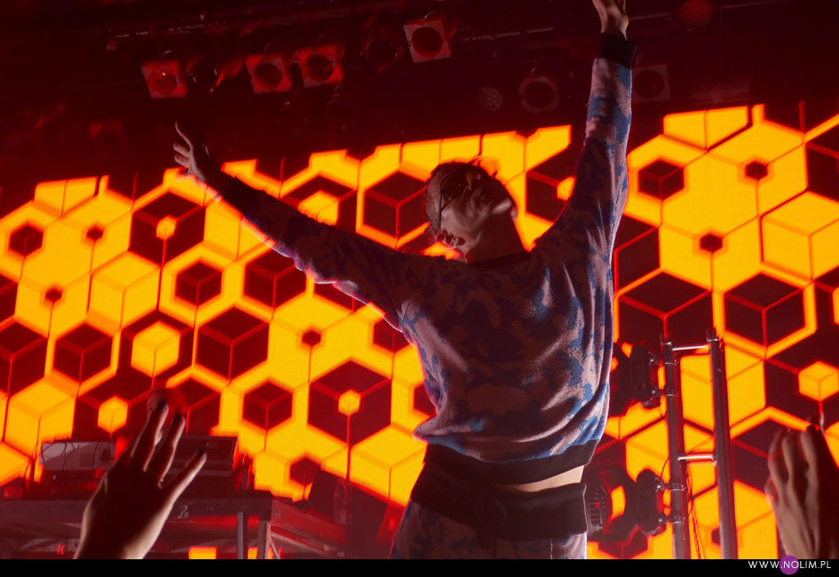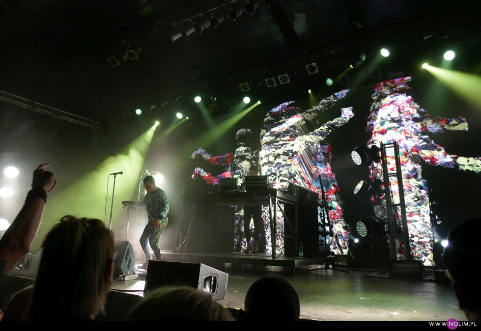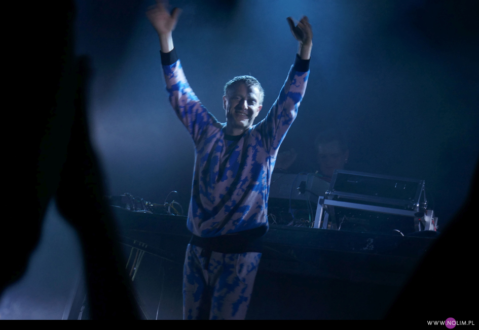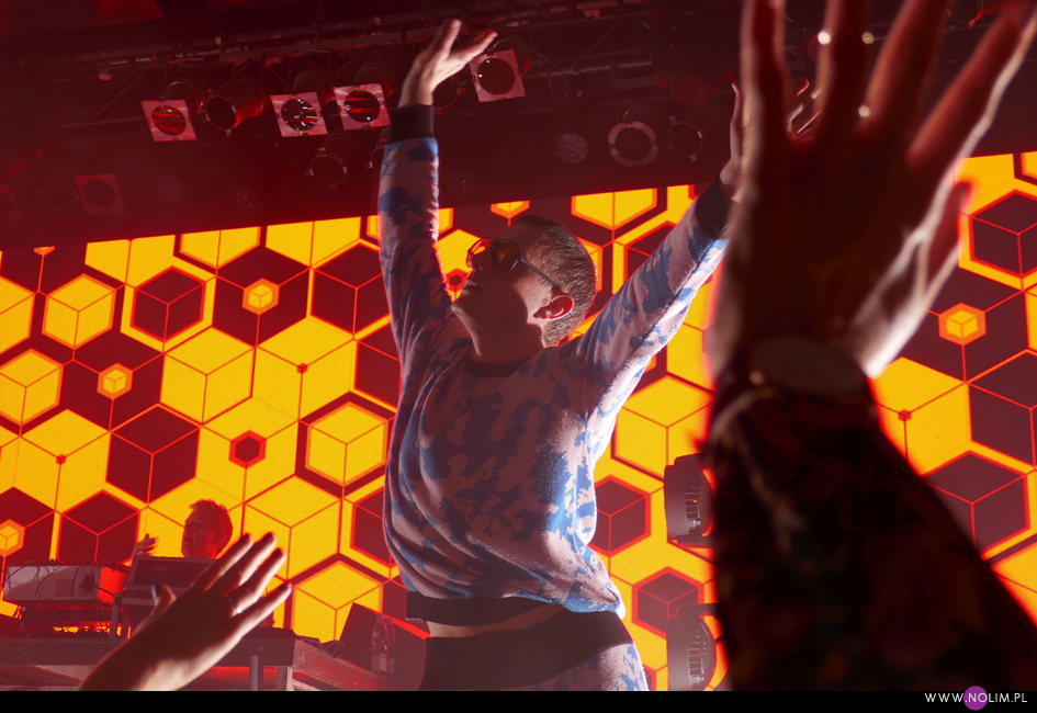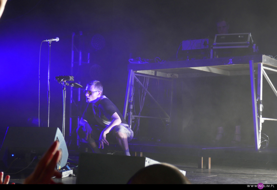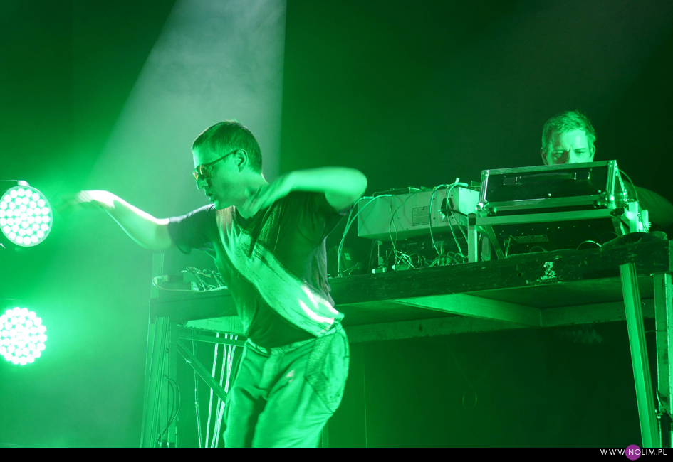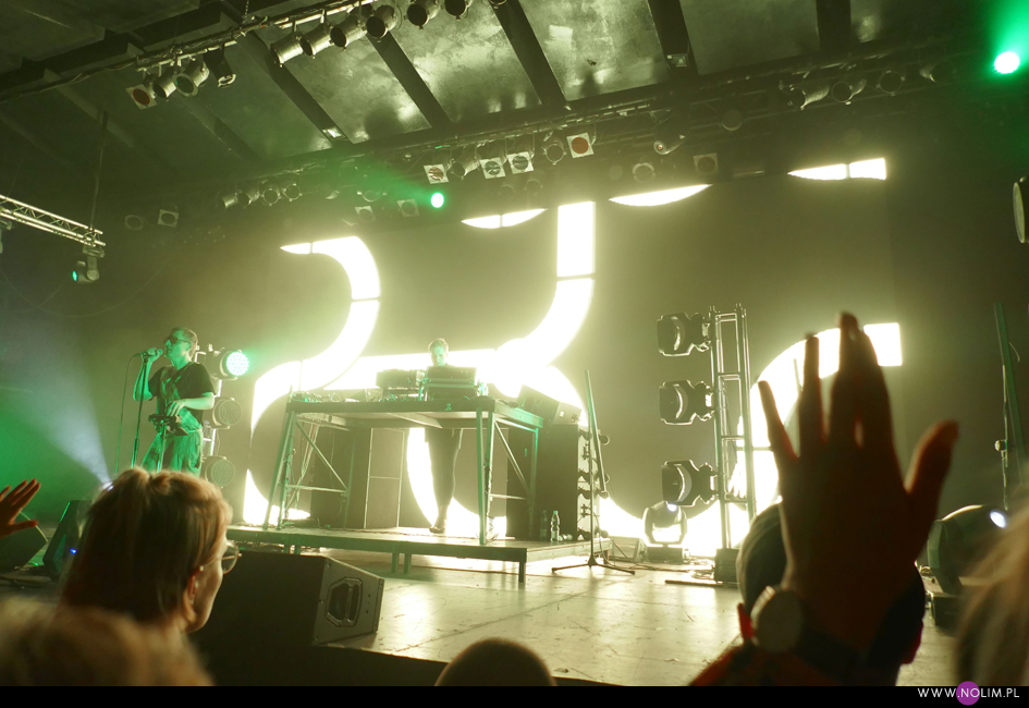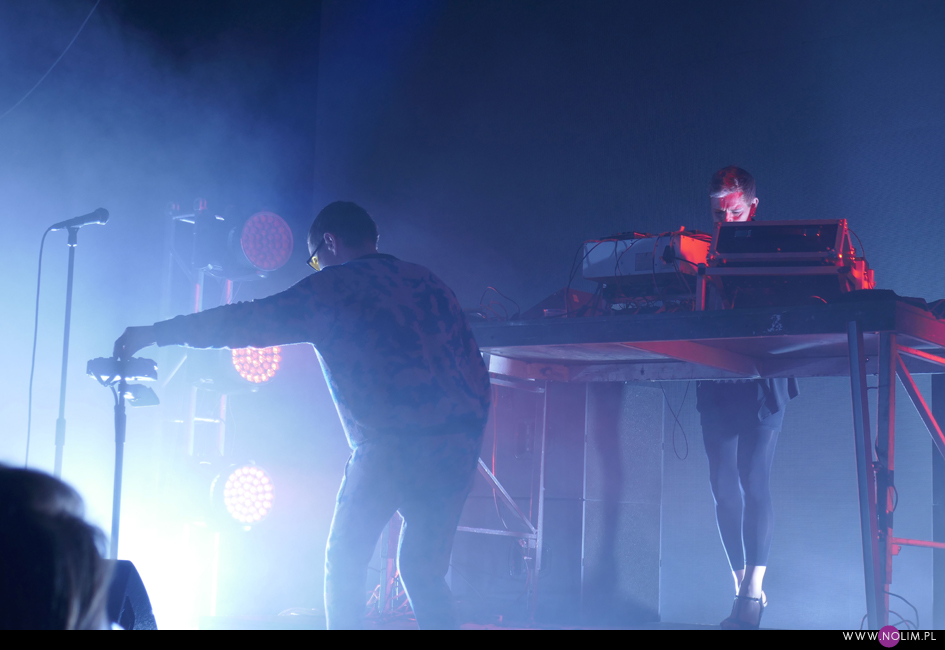 Po „Featherlight”, podobnie jak na płycie, nastąpiło nieco wolniejsze „Don’t know how to love”, które przeszło w energetyczne „Fireworks”. Ten ostatni różnił się od wersji na płycie – bit wszedł niemal od razu dzięki czemu utwór stał się jeszcze bardziej dynamiczny. To był bardzo mocny moment koncertu. Przy kolejnym, „Arabian Horse”, bawiłam się chyba najlepiej. Mogłam i potańczyć, i pośpiewać. Jako, że był to pierwszy w setliście bardzo dobrze znany utwór (bo starszy), publika również powitała go bardzo ciepło. Na ich tle „Lifetime” – chyba najszybszy kawałek z nowej płyty – o dziwo prawie zniknął. Wydaje mi się, że również szeroko uwielbiane „Over”, tym razem nie zostało tak euforycznie przyjęte jak 3 lata temu. Żałuję natomiast, że z utworów instrumentalnych obok „Selfloss” nie pojawiło się „Lies are more flexible”, tak jak to było chociażby w Kijowie. Nie zabrakło natomiast „Add this song”, które w pewnym momencie maksymalnie zwolniło, by po chwili przyspieszyć osiągając szaleńcze tempo. To był bardzo sprytny trik, który jak potem słyszałam podobał się wielu osobom. W ogóle warto wspomnieć, że na żywo muzyka GusGus ewoluuje- niby części składowe piosenek są takie same, ale często ułożone w innej kolejności, bit pojawia się tam, gdzie w wersji studyjnej go nie ma, a i więcej jest miejsca na rozwinięcie utworów. Początki są dłuższe, zakończenia również, a napięcie jest budowane bardzo stopniowo. Panowie delektują się każdym dźwiękiem.
