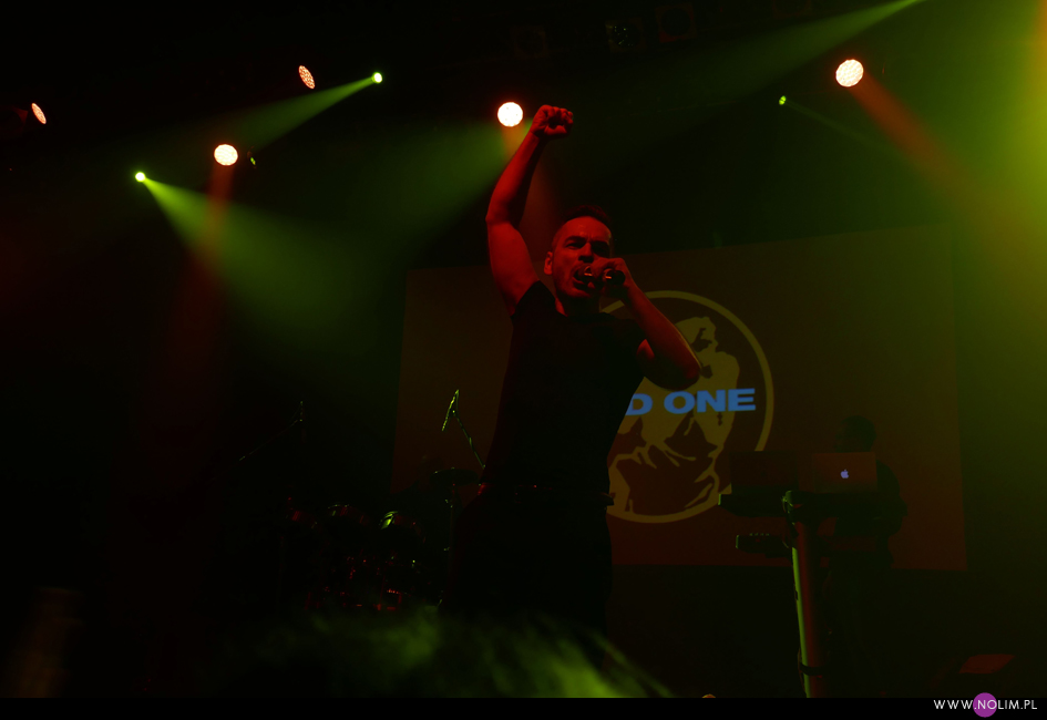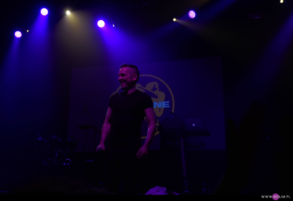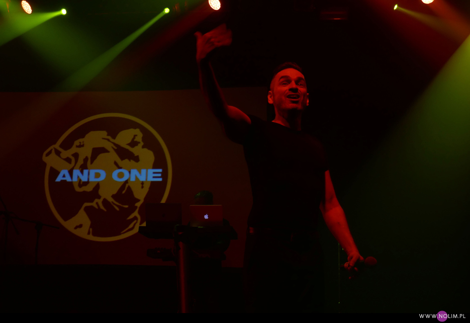 Nie przypominam sobie kiedy ostatnio widziałam tak żywiołowy koncert. Czy w ogóle kiedykolwiek widziałem na scenie takiego wariata? Występ And One to była rozrywka w najczystszej postaci. Koncertowa poezja. Może jestem płytka, ale lubię mieć na czym zawiesić oko. Uwielbiam kiedy wokalista tańczy, pręży się, wygina i robi miny. O ile Steve Naghavi wzorował się dawno temu na Davidzie Gahanie, o tyle już dawno przerósł mistrza. Dave przy nim to koślawa karykatura samego siebie – jest wyniosły, coraz bardziej dziwaczny i do tego beczy, a nie śpiewa. Steve natomiast, mimo zbliżającej się 50-tki, wybiega na scenę niczym młody bóg, wykonuje obroty, podskoki, wymachy, ani razu nie tracąc przy tym równowagi, ani nie łapiąc zadyszki. To wszystko jest tak doskonałe, że autentycznie można by pomyśleć, że to wyuczona choreografia. Tam nie ma ani chwili wahania, ani jednego błędnego czy zbędnego ruchu. Istna petarda. Mam ewidentną słabość do dobrze poruszających się wokalistów, którzy dzięki swojej charyzmie potrafią zawładnąć sceną, i dokładnie to robi Steve. Do tego śpiewa, naprawdę nieźle śpiewa. Dużo się uśmiecha i mimo, że mam świadomość, iż oglądam sceniczną kreację, to jest w tym wszystkim bardzo dużo naturalności i widać, że występ sprawia mu przyjemność. W dodatku jego ekspresja idealnie pasuje do dynamicznego EBMu. Dodajmy do tego teksty po niemiecku i mamy produkt idealny. Nawet to, co Steve mówił ze sceny do publiczności, było w większości po niemiecku. I co najlepsze – wszyscy i tak doskonale rozumieli o co chodzi. Tak, to był bardzo germański występ. Nie byłam do tej pory świadoma, jak zgranym duetem jest EBM i język niemiecki. Zawsze uważałam, że takim idealnym niemieckim muzycznym tworem jest Rammstein, a teraz do Rammsteina muszę dorzucić And One. Niby muzyka zupełnie inna, ale i tu, i tu język niemiecki idealnie współgra z brzmieniem i imagem zespołu.