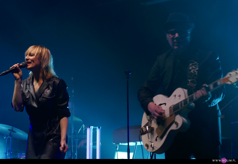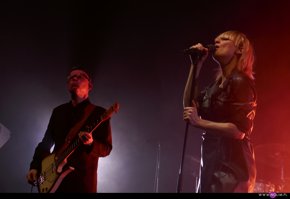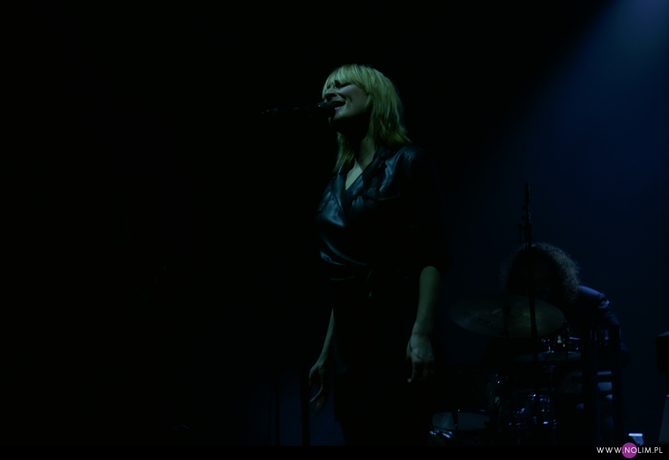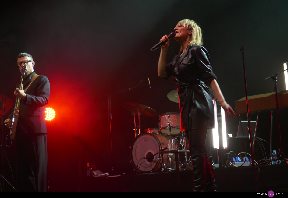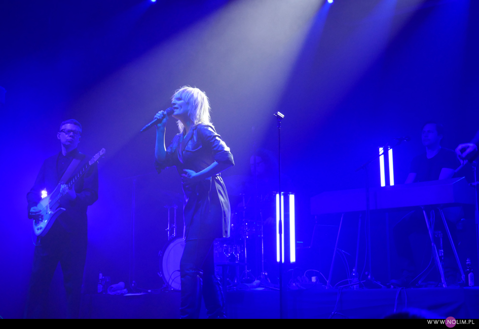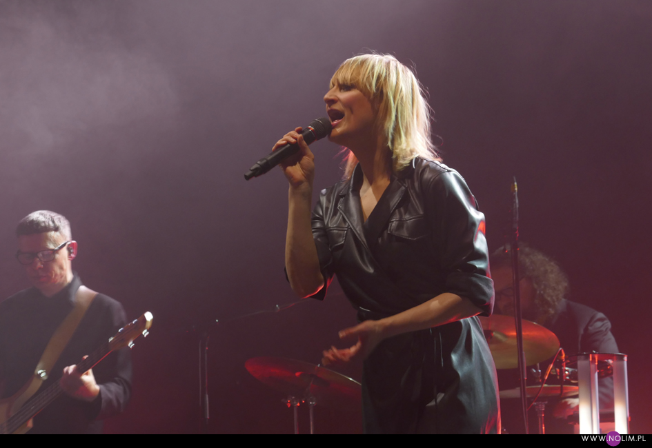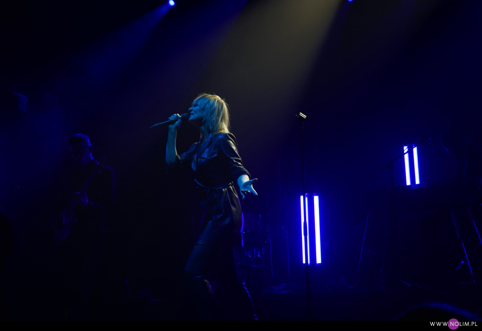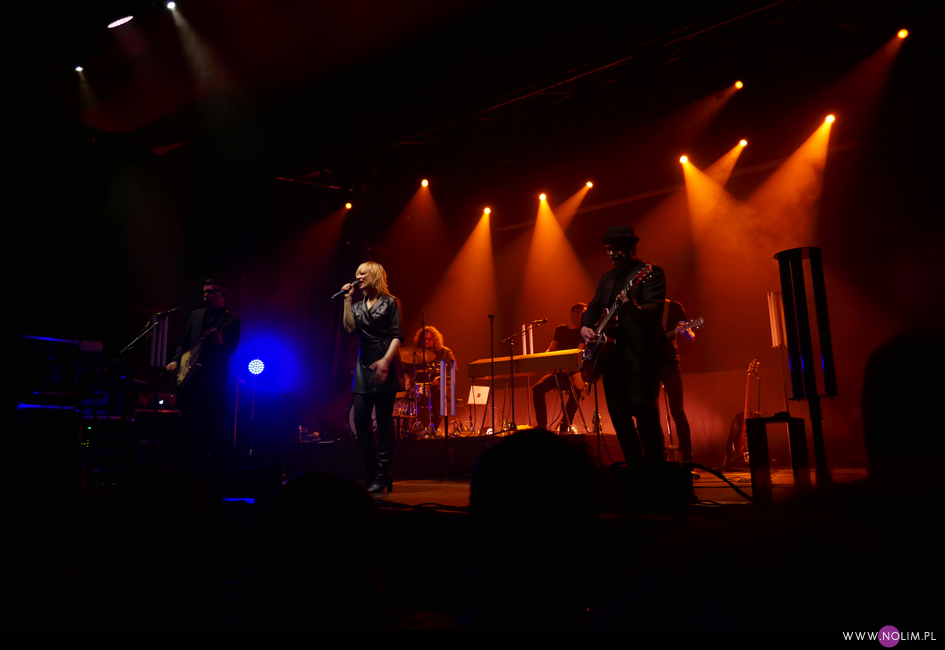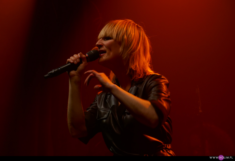 I taki był też ten koncert. Jak powrót do domu. Jak spotkanie z dawno niewidzianymi przyjaciółmi. Setlistę przesłuchałam 3 razy – to jak na mnie bardzo mało. Ale nie musiałam więcej. Ja to wszystko znam, znam doskonale. Pamiętam te utwory, jak się ukazywały, jak mi towarzyszyły. Znam melodie, znam poszczególne dźwięki, znam teksty. Sam zaś koncert to również była podróż przez ponad 20 lat muzyki, piękny przekrój twórczości. Zaczęło się od nowości – “A simple glitch of the heart”, a gdy na scenie, jako ostatnia z zespołu, pojawiła się Geike, publiczność ryknęła. Nie pamiętam już aż tak dobrze dwóch poprzednich razów, gdy ją widziałam, ale tamte koncerty zapisały się w mojej pamięci jako bardziej statyczne i “statywowe” . Tym razem statywu było mało, a ruchu o wiele więcej. W ogóle to był naprawdę mocny i żywy koncert. Zaraz po “Glitch” zabrzmiało eurowizyjne “The Wrong Place” – kolejny kawałek, który zyskuje z każdym przesłuchaniem, a w wersji live to już w ogóle. Zdaje się, że potem po raz pierwszy odezwał się Alex, czyli zespołowy wodzirej. A więc znów były różne opowieści, niektóre bardziej spontaniczne, inne mniej – było więc i trochę o piosenkach (bardzo sobie cenię takie wtręty), ale i o Kasi Wilk. Zupełnie zapomniałam o tym wątku, chociaż z drugiej strony słyszałam o tym tylko raz. Kasia Wilk to ex-dziewczyna Aleksa, Polka. Ale nie “ta wokalistka”, jak sam wyjaśnił. Za to tym razem wyznał, że poznał ją w Fabryce Trzciny. Kurczę, też tam wtedy byłam 😉 W każdym razie z takich opowieści można się było dowiedzieć np., że “Belgium in the rain” miało początkowo tytuł “Belgrade in the rain”, natomiast “Anger never dies” zdążyła zaśpiewać Geike przed odejściem, ale wówczas piosenka była wolniejsza i ostatecznie nagrała ją dopiero Noémie. Z kolei “Amalfi” to wesoła piosenka dla jego żony. Byłam ciekawa jak Geike zabrzmi w utworach, które zostały wydane już bez jej udziału, czyli, oprócz wspomnianych “Anger…” i “Amalfi”, “The Night before”, “Badaboum”, “Gravity”, “Romantic”. Ale ostatecznie to dla niej nie pierwszyzna, przecież od zawsze musiała się mierzyć chociażby z “2 Wicky”, a więc i z pozostałymi piosenkami, których nie nagrała, poradziła sobie świetnie. Chociaż Noémie nadała “Anger…” swój charakterystyczny, ja ja to mówię, “country sound”, to i Geike potrafiła sprawić, że ta piosenka zabrzmiała jak jej. W zwrotce “Badaboum” pięknie wybrzmiało jej vibrato. W dodatku bardzo, bardzo fajnie wyszedł muzyczny dialog z moim ulubieńcem, kolegą-chórzystą (czy dobrze zrozumiałam, że on ma na imię Peter albo Pete?). Oj, chyba było tu więcej chemii niż między nim, a nieco jednak nieśmiałą i wycofaną Luką Cruysberghs. Luka zresztą w ogóle wydawała się trochę nie na miejscu. Z jednej strony na klipach biegała w glanach, z drugiej, na koncercie, została wystrojona np. w czerwoną sukienkę “Jackie Cane”. Wyglądała ładnie, ale wyglądała na przebraną. To nie była ona. Za to Geike, w skórzanej, krótkiej sukience wiązanej jak kimono, wyglądała lepiej niż kiedykolwiek. Wracając jednak jeszcze na chwilę do Luki – podobał mi się jej tęskny śpiew w “Romantic”, ale zawsze miałam wrażenie, że jest za młoda na taki tekst i taką piosenkę powinien wykonywać ktoś starszy. Ktoś taki, jak Geike. No i stało się, doczekałam się. W jej ustach słowa o braku romantyzmu zabrzmiały o wiele bardziej autentycznie niż w ustach niespełna 20-latki, której i wygląd, i śpiew jest zaprzeczeniem tego, o czym śpiewa. Zresztą Geike przez cały koncert brzmiała wspaniale. Na płytach aż tak nie słychać, jaką moc ma jej głos. Natomiast w skromnie zaaranżowanych “Vinegar & Salt” czy “One Big Lie” po prostu lśni. I chyba po raz pierwszy doświadczyłam wspólnego śpiewania na koncercie Hooverphonic (albo mam słabą pamięć ;-)). Drugi, ostatni bis, zakończyła ostatnia piosenka z ostatniej płyty (o tym też Alex powiedział, że to ich tradycja) – “Hidden stories”, a dokładniej nasz śpiew. Muzyka powoli cichła, muzycy po kolei schodzili ze sceny, aż została tylko śpiewająca a capella Geike. I my. Weszła na scenę ostatnia i ostatnia z niej zeszła. Co ciekawe, koncert Hooverphonic był moim trzecim koncertem przed pandemią i teraz jest trzecim po wybuchu pandemii. Ładna klamra.