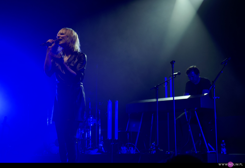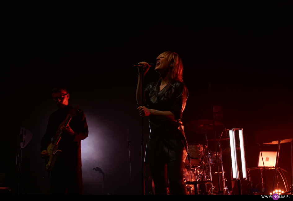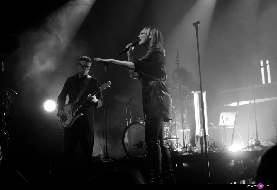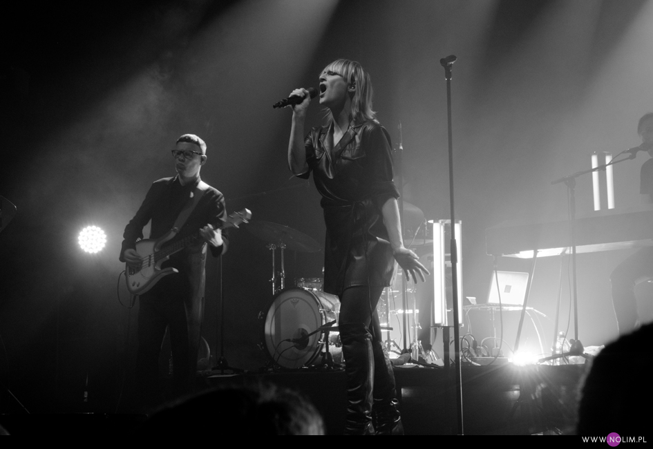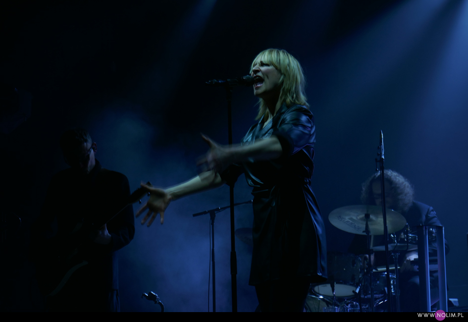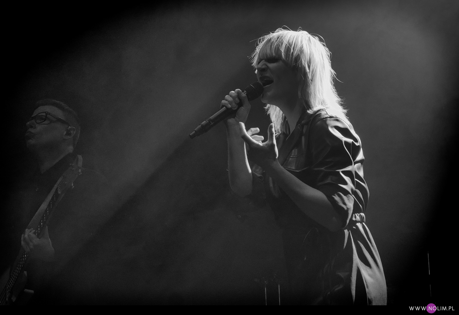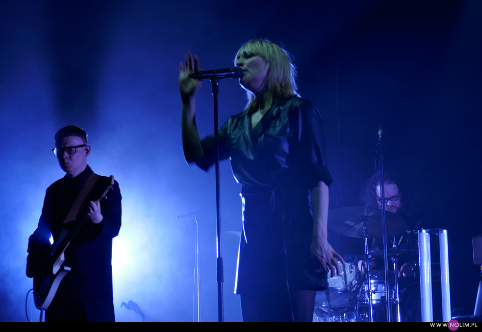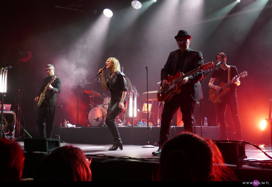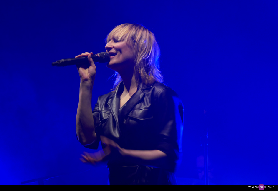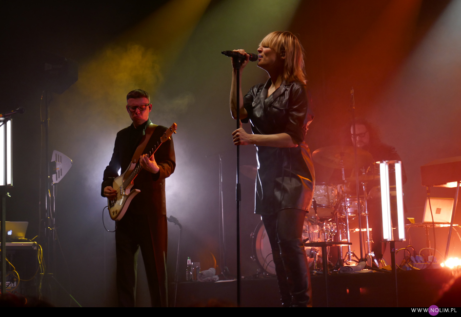 I taki był też ten koncert. Jak powrót do domu. Jak spotkanie z dawno niewidzianymi przyjaciółmi. Setlistę przesłuchałam 3 razy – to jak na mnie bardzo mało. Ale nie musiałam więcej. Ja to wszystko znam, znam doskonale. Pamiętam te utwory, jak się ukazywały, jak mi towarzyszyły. Znam melodie, znam poszczególne dźwięki, znam teksty. Sam zaś koncert to również była podróż przez ponad 20 lat muzyki, piękny przekrój twórczości. Zaczęło się od nowości – “A simple glitch of the heart”, a gdy na scenie, jako ostatnia z zespołu, pojawiła się Geike, publiczność ryknęła. Nie pamiętam już aż tak dobrze dwóch poprzednich razów, gdy ją widziałam, ale tamte koncerty zapisały się w mojej pamięci jako bardziej statyczne i “statywowe” . Tym razem statywu było mało, a ruchu o wiele więcej. W ogóle to był naprawdę mocny i żywy koncert. Zaraz po “Glitch” zabrzmiało eurowizyjne “The Wrong Place” – kolejny kawałek, który zyskuje z każdym przesłuchaniem, a w wersji live to już w ogóle. Zdaje się, że potem po raz pierwszy odezwał się Alex, czyli zespołowy wodzirej. A więc znów były różne opowieści, niektóre bardziej spontaniczne, inne mniej – było więc i trochę o piosenkach (bardzo sobie cenię takie wtręty), ale i o Kasi Wilk. Zupełnie zapomniałam o tym wątku, chociaż z drugiej strony słyszałam o tym tylko raz. Kasia Wilk to ex-dziewczyna Aleksa, Polka. Ale nie “ta wokalistka”, jak sam wyjaśnił. Za to tym razem wyznał, że poznał ją w Fabryce Trzciny. Kurczę, też tam wtedy byłam 😉 W każdym razie z takich opowieści można się było dowiedzieć np., że “Belgium in the rain” miało początkowo tytuł “Belgrade in the rain”, natomiast “Anger never dies” zdążyła zaśpiewać Geike przed odejściem, ale wówczas piosenka była wolniejsza i ostatecznie nagrała ją dopiero Noémie. Z kolei “Amalfi” to wesoła piosenka dla jego żony. Byłam ciekawa jak Geike zabrzmi w utworach, które zostały wydane już bez jej udziału, czyli, oprócz wspomnianych “Anger…” i “Amalfi”, “The Night before”, “Badaboum”, “Gravity”, “Romantic”. Ale ostatecznie to dla niej nie pierwszyzna, przecież od zawsze musiała się mierzyć chociażby z “2 Wicky”, a więc i z pozostałymi piosenkami, których nie nagrała, poradziła sobie świetnie. Chociaż Noémie nadała “Anger…” swój charakterystyczny, ja ja to mówię, “country sound”, to i Geike potrafiła sprawić, że ta piosenka zabrzmiała jak jej. W zwrotce “Badaboum” pięknie wybrzmiało jej vibrato. W dodatku bardzo, bardzo fajnie wyszedł muzyczny dialog z moim ulubieńcem, kolegą-chórzystą (czy dobrze zrozumiałam, że on ma na imię Peter albo Pete?). Oj, chyba było tu więcej chemii niż między nim, a nieco jednak nieśmiałą i wycofaną Luką Cruysberghs. Luka zresztą w ogóle wydawała się trochę nie na miejscu. Z jednej strony na klipach biegała w glanach, z drugiej, na koncercie, została wystrojona np. w czerwoną sukienkę “Jackie Cane”. Wyglądała ładnie, ale wyglądała na przebraną. To nie była ona. Za to Geike, w skórzanej, krótkiej sukience wiązanej jak kimono, wyglądała lepiej niż kiedykolwiek. Wracając jednak jeszcze na chwilę do Luki – podobał mi się jej tęskny śpiew w “Romantic”, ale zawsze miałam wrażenie, że jest za młoda na taki tekst i taką piosenkę powinien wykonywać ktoś starszy. Ktoś taki, jak Geike. No i stało się, doczekałam się. W jej ustach słowa o braku romantyzmu zabrzmiały o wiele bardziej autentycznie niż w ustach niespełna 20-latki, której i wygląd, i śpiew jest zaprzeczeniem tego, o czym śpiewa. Zresztą Geike przez cały koncert brzmiała wspaniale. Na płytach aż tak nie słychać, jaką moc ma jej głos. Natomiast w skromnie zaaranżowanych “Vinegar & Salt” czy “One Big Lie” po prostu lśni. I chyba po raz pierwszy doświadczyłam wspólnego śpiewania na koncercie Hooverphonic (albo mam słabą pamięć ;-)). Drugi, ostatni bis, zakończyła ostatnia piosenka z ostatniej płyty (o tym też Alex powiedział, że to ich tradycja) – “Hidden stories”, a dokładniej nasz śpiew. Muzyka powoli cichła, muzycy po kolei schodzili ze sceny, aż została tylko śpiewająca a capella Geike. I my. Weszła na scenę ostatnia i ostatnia z niej zeszła. Co ciekawe, koncert Hooverphonic był moim trzecim koncertem przed pandemią i teraz jest trzecim po wybuchu pandemii. Ładna klamra.