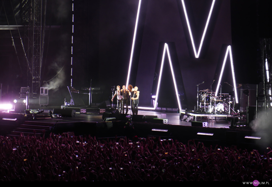 “Everything counts” to była naprawdę dobra zabawa. Na “Precious” o dziwo emocje wcale nie opadły, choć nogi tuptały wolniej. Znam jednak ten kawałek od deski do deski i mam z nim trochę wspomnień z dobrych czasów. Szczerze nie spodziewałam się, że na stałe zagości na koncertach, bo w gruncie rzeczy jest dość niepozorny. Po nim tempo jeszcze bardziej zmalało i zespół zagrał utwór, na który miałam nadzieję – ta część jest bowiem wymienna. Na ostatnich dwóch koncertach grali “My favourite stranger”, które uważam za jeden z fajniejszych utworów z najnowszej płyty, ale jednocześnie nie wydaje mi się, by na żywo potrafił jakoś szczególnie zaskoczyć. W Warszawie natomiast powrócili – na szczęście – do “Speak to me”. Swoją drogą ciekawa jest ta wymienność, bo to totalnie różne utwory. “Speak to me” okazało się być koncertowym mocarzem. Jeśli miałabym wskazać utwór, który wywołał we mnie najwięcej emocji i wewnętrzne “ach”, a może nawet zachwyt, to byłby właśnie ten. Jest majestatyczny, podniosły i naprawdę, naprawdę pięknie brzmi na żywo na dużej przestrzeni. Coś takiego powinno zostać w setliście na stałe.