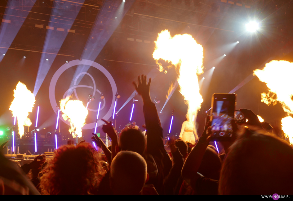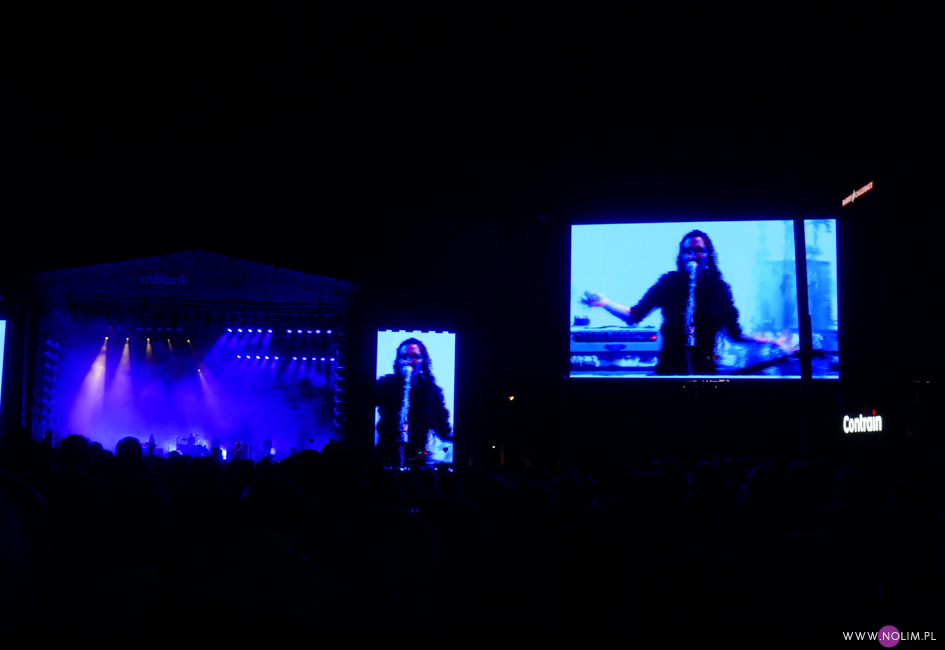 W każdym razie w którymś momencie dotarliśmy już do miejsca, z którego ciężko było się ruszyć. Był ścisk. Moje gołe ręce dotykały obcych gołych rąk, a widok miałam słaby. Jednak nie tak to sobie wyobrażałam. Na szczęście po jakimś czasie nagle wszyscy ruszyli do przodu i to tak masowo, że aż nie wiedziałam co się dzieje. Okazało się, że strefa pod sceną (takie tam pseudo golden circle wielkości całej Atlas Areny 😉 ) została odgrodzona od reszty barierkami i gdy część osób ją opuściła, reszta mogła wejść. Ja jednak znalazłam się w fajnym miejscu, opierając się o te graniczne barierki i stwierdziłam, że tu zostaję. W taki oto sposób miałam barierki na Placebo… tyle że nie w pierwszym, a w jakimś 250. rzędzie. Obserwowałam ludzi wchodzących na „golden circle” i przechodzących kolejną kontrolę bezpieczeństwa (czyli zaglądanie do toreb w poszukiwaniu butelek) i wtedy muzyka dobywająca się z głośników zaczęła przypominać „Taste in Men”. Fajnie, pomyślałam, jakiś remix czy co. Ale po chwili zorientowałam się, że to już normalny koncert. Tymczasem po mojej lewej ludzie nadal wchodzili. Wyglądało to jakoś chaotycznie i zabrakło mi przed koncertem momentu wyciszenia. „Taste in Men” kojarzy mi się z penisem na telebimie na Torwarze. I że było zielono. Tym razem żadnych takich kontrowersji nie było, a to, co pojawiało się na telebimach, to zazwyczaj zniekształcone w rozmaity sposób obrazy ze sceny. Dlatego za bardzo nie wiem jak wyglądał Molko, poza tym, że miał długie włosy. Ostatnim razem myślałam, że to przejściowe, a tu proszę… Nigdy nie słuchałam Placebo i właściwie za każdym razem widziałam ich w jakimś sensie przypadkiem. Za pierwszym razem, w 2007 na Torwarze, bo usłyszałam: „no jak to, nie jedziesz na Placebo? weeeeeź, jedź z nami”, za drugim, w 2009 przy okazji, bo grali na Open’erze, i teraz – bo za darmo, bo w moim mieście… i jeszcze ci ludzie ze Szczecina… Aha, ostatecznie nie przyjechali bo ekipa się nie zebrała. W każdym razie fanką zespołu nigdy nie byłam, choć kilka piosenek autentycznie lubię. Muszę przyznać, że set był dobrze skrojony pod festiwal. Zagrali praktycznie wszystko, co potrafi wylosować laikowi Spotify. Ale czy zupełnie nie znając tych piosenek porwałby mnie ten koncert? Gdybym lubiła muzykę gitarową, to może tak, w sumie nie wiem. Ale woląc elektronikę… niekoniecznie. Nie poczułam za bardzo tego występu. Zawsze się łudzę, ale potem zawsze dochodzę do wniosku, że jednak ja muszę być blisko. Potem czytałam, że pod sceną słychać było dudnienie i pogłos. Z kolei z mojego miejsca było trochę… cicho. I mogłoby być bardziej klarownie. Miałam wrażenie, że dźwięki za bardzo zbijają się w jedną całość. Troszkę się jednak pokiwałam, nie mówię, że nie. A najlepiej bawiłam się – tu bez zaskoczenia, bo lubię jak jest mocno i tanecznie – przy „For what it’s worth”. To był dance rock’n’roll, jak zapowiedział ten kawałek Brian. Gdy zagrali „Song to say goodbye” myślałam, że to już koniec (no bo chyba tytuł zobowiązuje?), a tu jeszcze wybrzmiały dwie piosenki, z czego jedna to „Nancy boy”. Nigdy nie słyszałam Nancy’ego na żywo, a to akurat jednen z tych utworów, które powiedzmy, że lubiłam, więc fajnie go było usłyszeć. Później zespół zszedł ze sceny. Ponownie szykowałam się już do wyjścia, kiedy jednak wrócili na bisy. I to jakie! No stąd ni zowąd z głośników poleciały charakterystyczne dźwięki, których bardzo dawno nie słyszałam. Jednak to Spotify pominął, a przecież ja je kiedyś nosiłam ze sobą w odtwarzaczu mp3. „Infra-red”! Jak ja mogłam zapomnieć o istnieniu tej piosenki? To był fajny moment. Autentycznie dałam się zaskoczyć. A potem, na sam koniec, jeszcze perełka – cover „Running up that hill”. Ładne zakończenie.