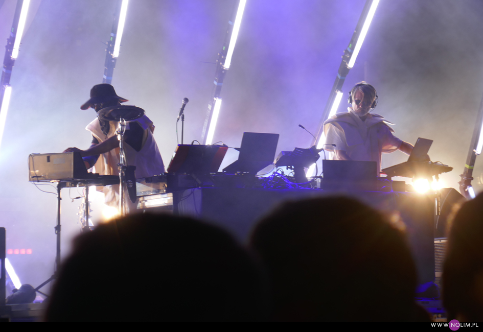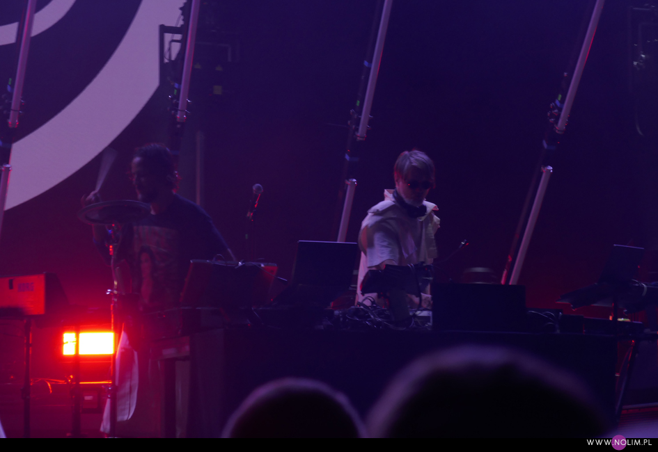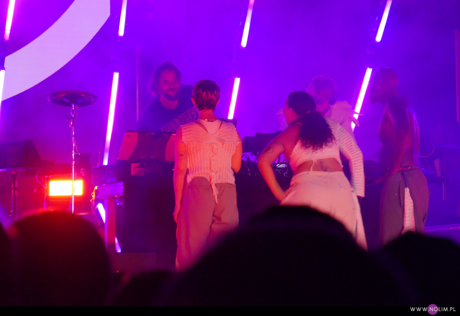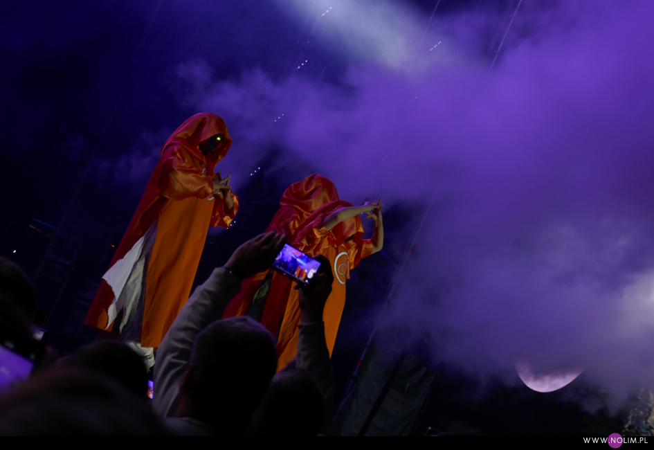 Żeby było zabawniej, drugiego headlinera też ostatni (i jedyny) raz widziałam 15 lat temu. W lipcu na Open’erze Placebo, a chwilę wcześniej, w czerwcu na Selectorze Royksopp. Bardzo miło wspominam tamten festiwal. 2009 to mój ulubiony muzycznie rok XXI wieku, a i skład festiwalu był świetny. Po tamtym Royksoppie byłam pod takim wrażeniem, że chciałam ich koniecznie jeszcze zobaczyć. Tyle że minęło 15 lat a nam jakoś nie było po drodze. Gdy pojawiali się w Polsce, to albo w miejscu dla mnie ciężko dostępnym, albo na festiwalu, który mnie nie interesował, albo nie z normalnym koncertem tylko z DJ setem. Aż w końcu przyjechali do mojego miasta. I chociaż to również nie był już normalny koncert z wokalem na żywo, tak jak kiedyś, to jednak darowanemu koniowi się w zęby nie zagląda. Tym razem podeszłam pod scenę całkiem blisko i okazało się to bardzo łatwe. Koncert, w przeciwieństwie do tego dzień wcześniej, rozpoczął się od bardzo długiego intro. Wstęp był tak niespieszny, że nie sposób było się nie zorientować, że to już właściwy występ. Wizualizacji na telebimie nie było, ale bardzo szybko okazało się, co (albo raczej kto) będzie główną atrakcją wizualną występu – trójka tancerzy, dwie kobiety i mężczyzna. Pojawili się w długich pelerynach z kapturami na głowach i z zasłoniętymi twarzami, wolno i majestatycznie wkraczając na scenę. Myślałam, że tacy już pozostaną – tajemniczy i trochę odklejeni od tanecznej muzyki, ale nie – później peleryny poszły w odstawkę a oni zaczęli swój taneczny performance. Przyglądałam się temu i bardzo wiele elementów wyglądało dla mnie na spontaniczne, jakby dawali się ponieść muzyce i poruszali się tak, jak czują. Nie wierzę jednak, żeby taki występ mógł być spontaniczny. Tym więcej we mnie podziwu dla choreografa, który potrafił ułożyć tak skomplikowaną i nieoczywistą choreografię, która nie wyglądała jak choreografia.